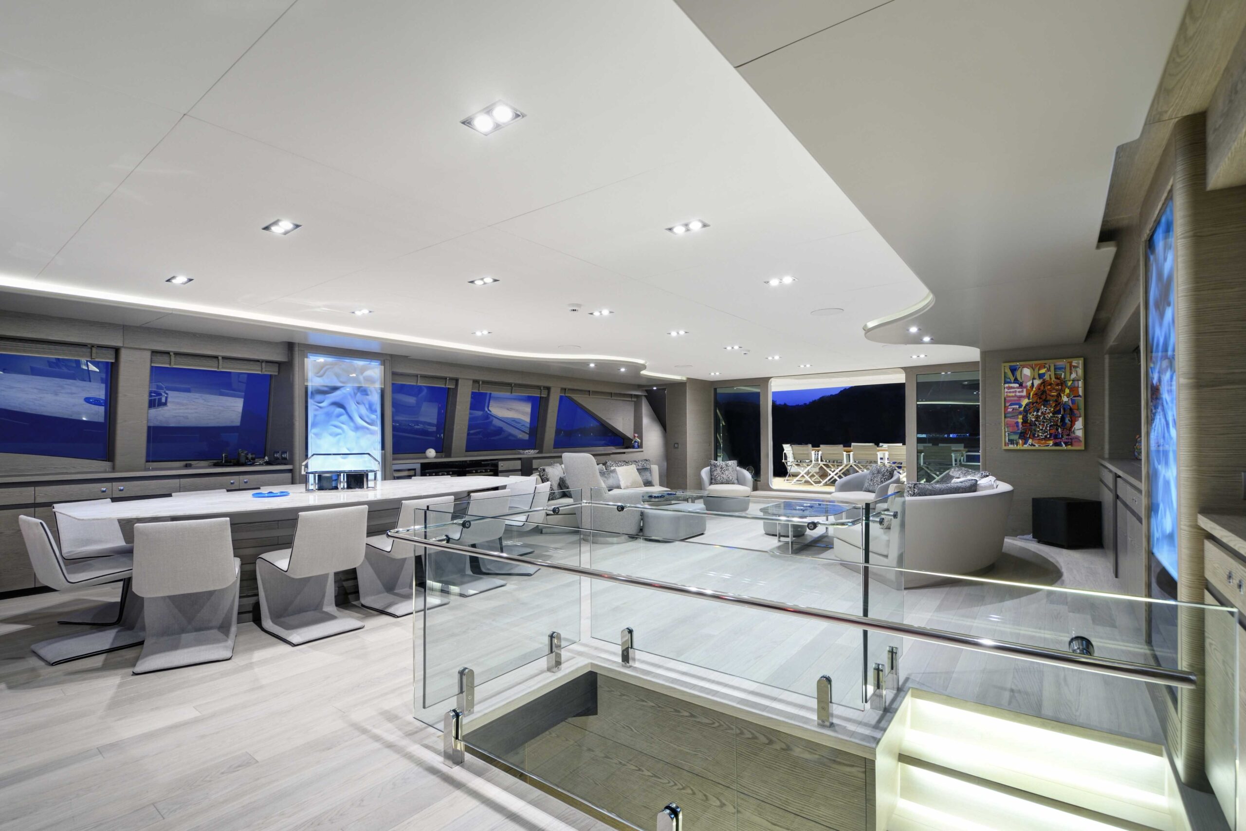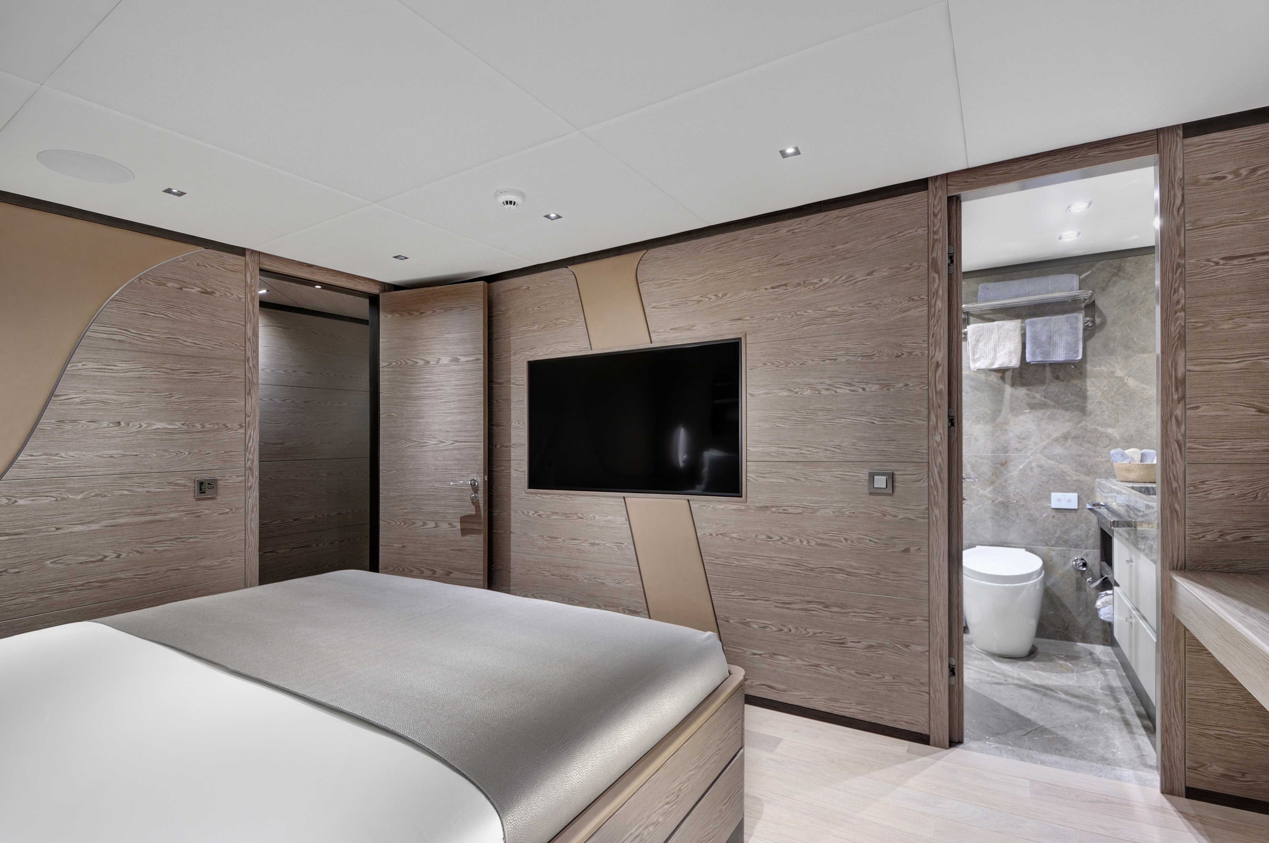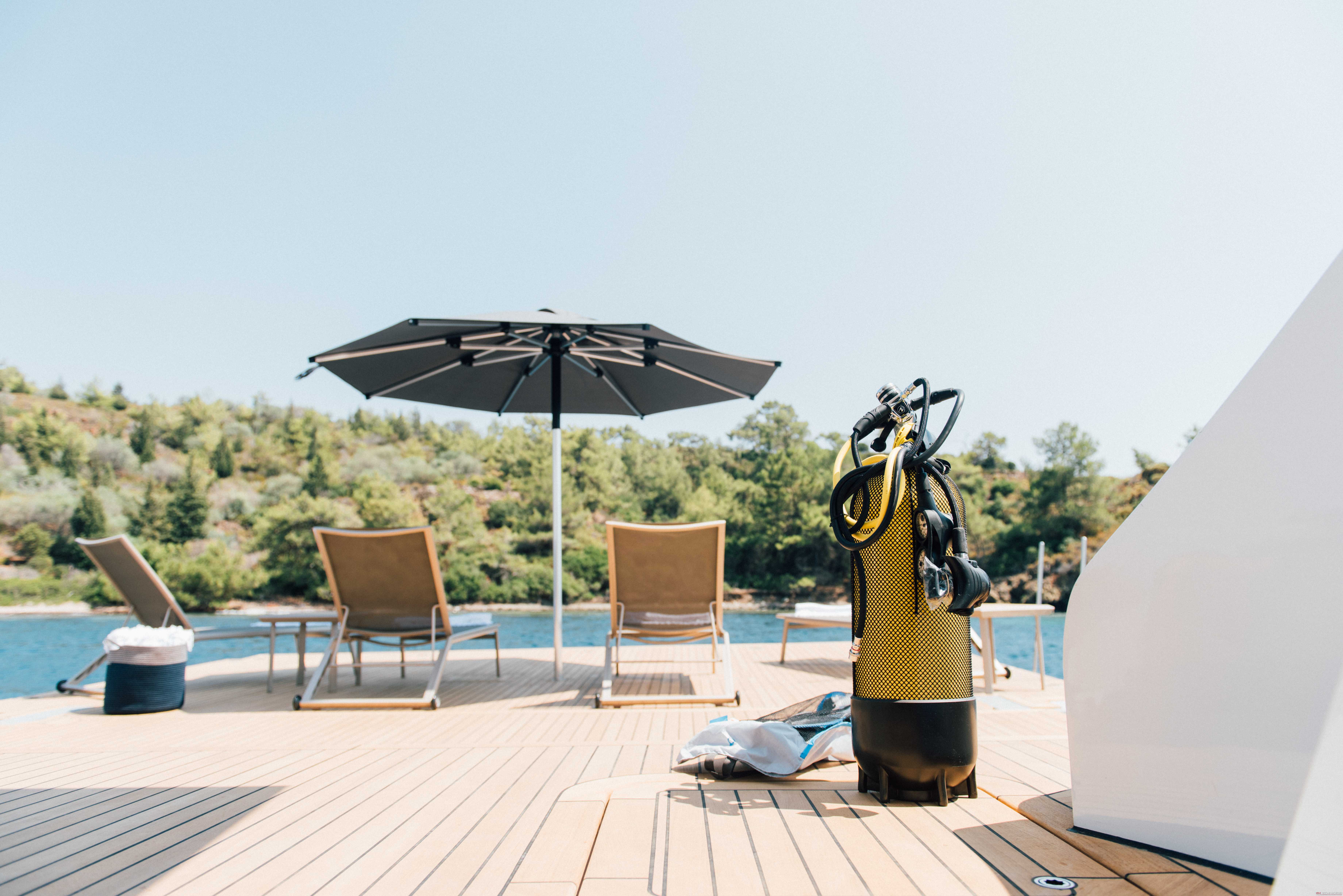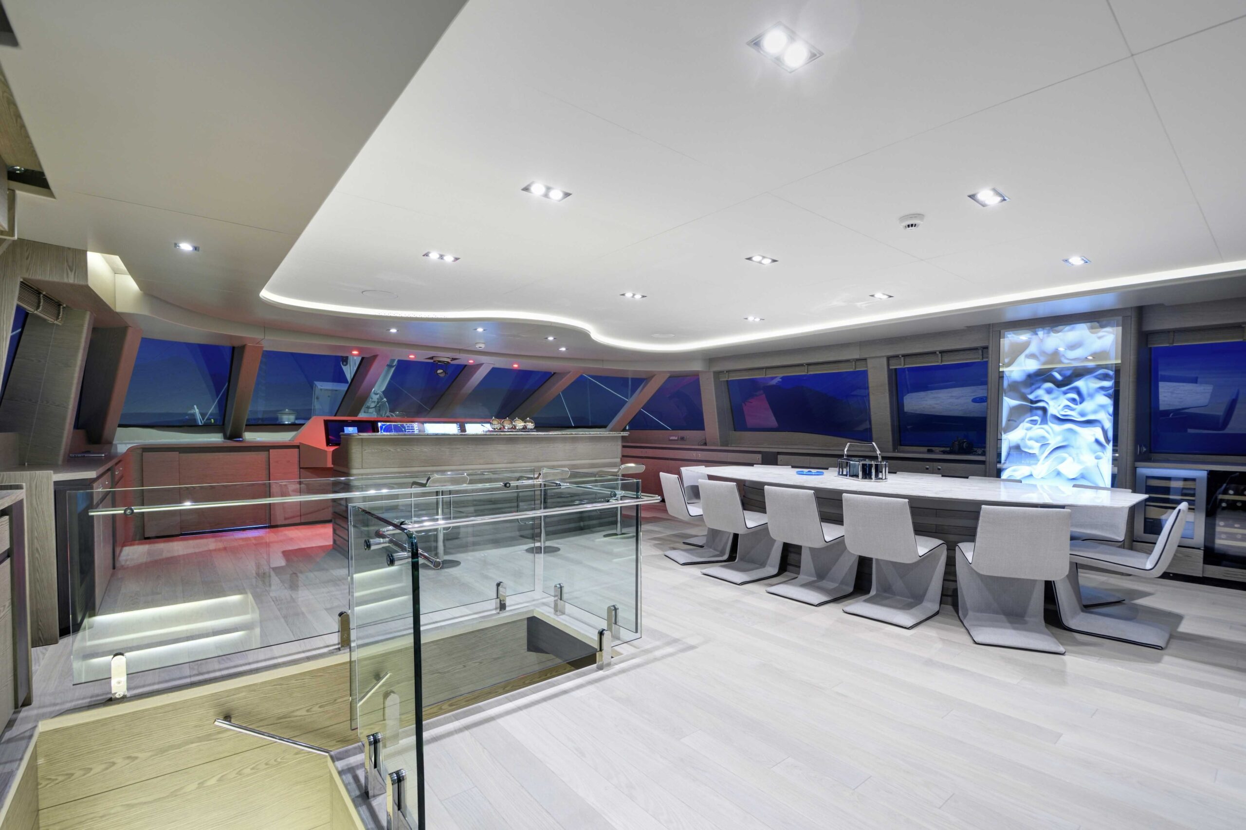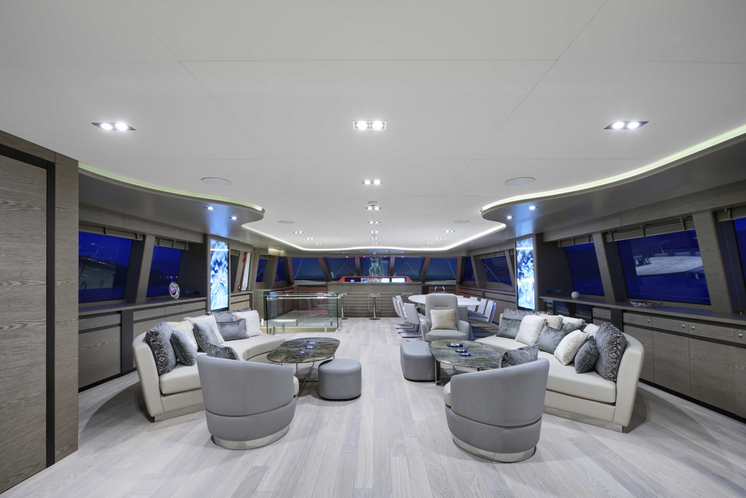 Lüks mavi yolculuk standartlarını üst seviyeye taşıyan yatımızın geniş üst yaşam alanında; tam donanımlı bir bar, rahat güneşlenme alanları ve şık oturma grupları yer almaktadır. Bu özel bölüm, misafirlerimize gün batımı eşliğinde keyifli sohbetler, özel etkinlikler, müzik dinletileri ve unutulmaz davetler gerçekleştirebilme imkânı sunar.