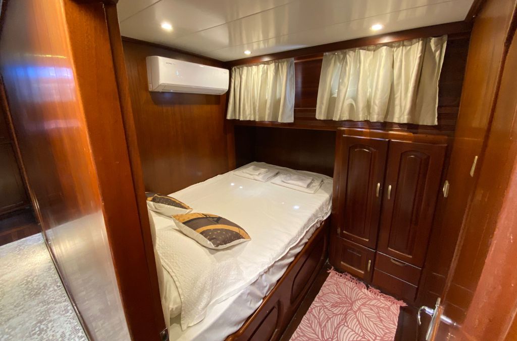 Klima, ısıtma ve buz yapıcı gibi modern ekipmanlarla donatılan Be Happy’de kaptan hizmeti de dahildir. Kahve makinesi ve düz ekran TV gibi detaylar tatilinizi daha keyifli hâle getirirken misafirler için ideal bir deniz deneyimi vadeden Be Happy, hem eğlenceli hem de huzurlu bir mavi yolculuk deneyimi sağlar.