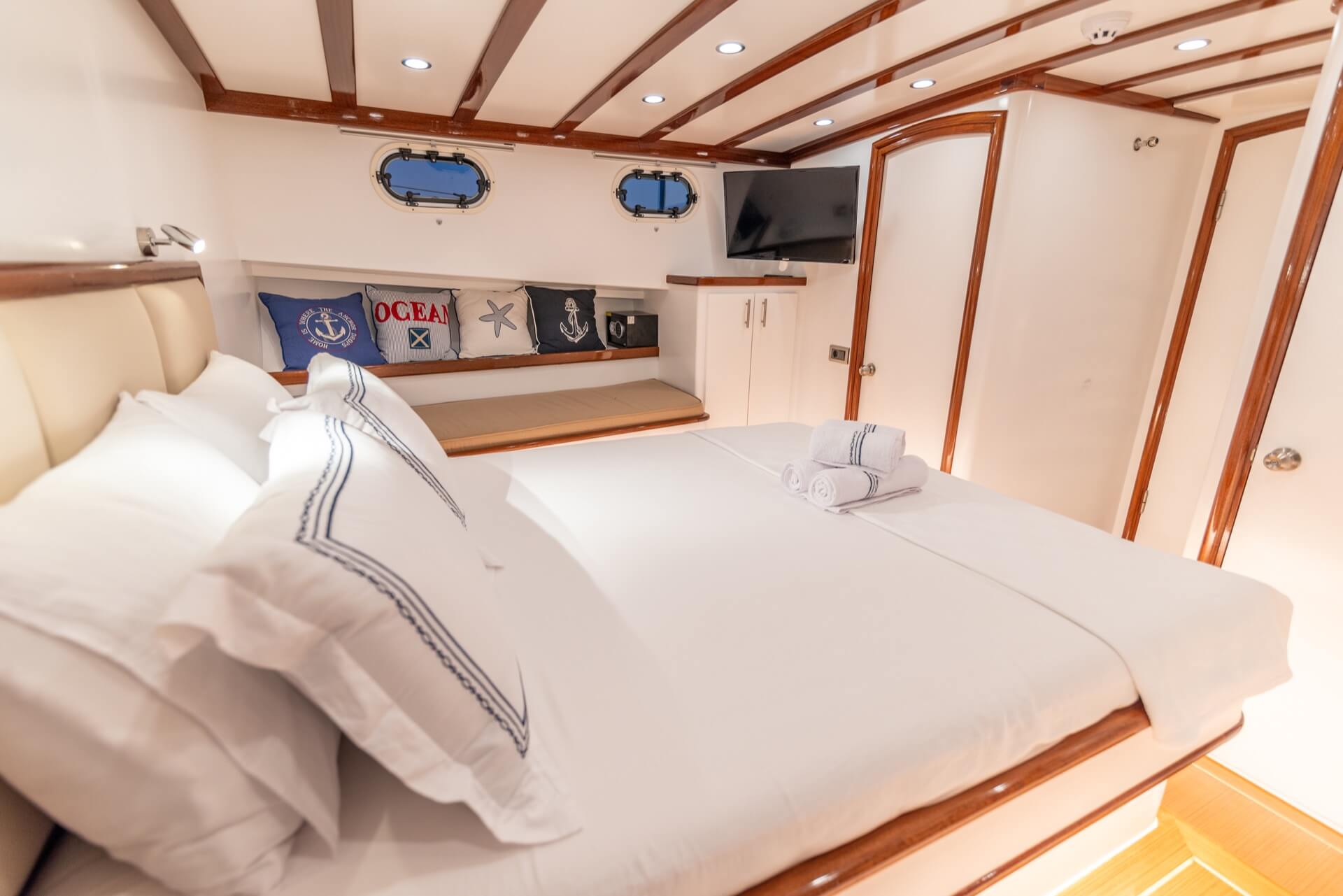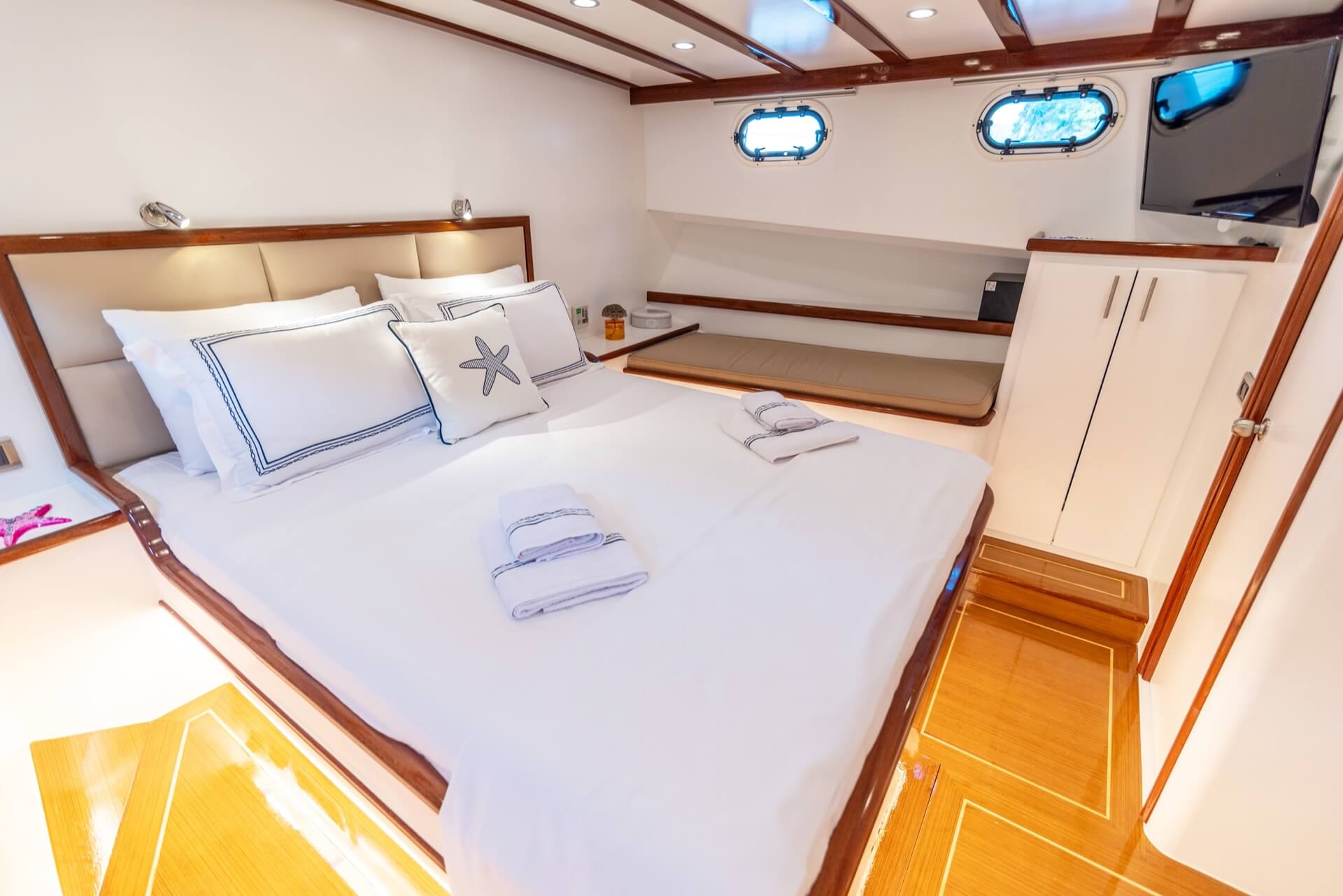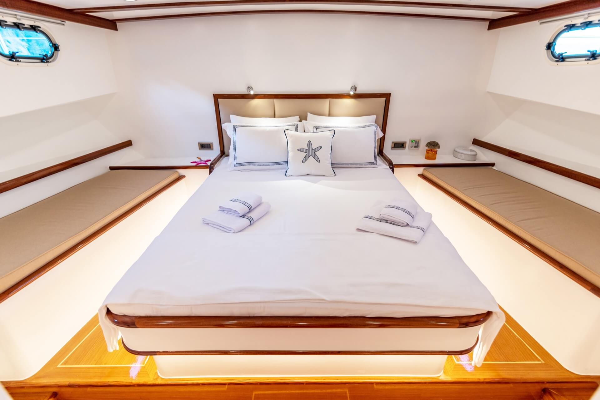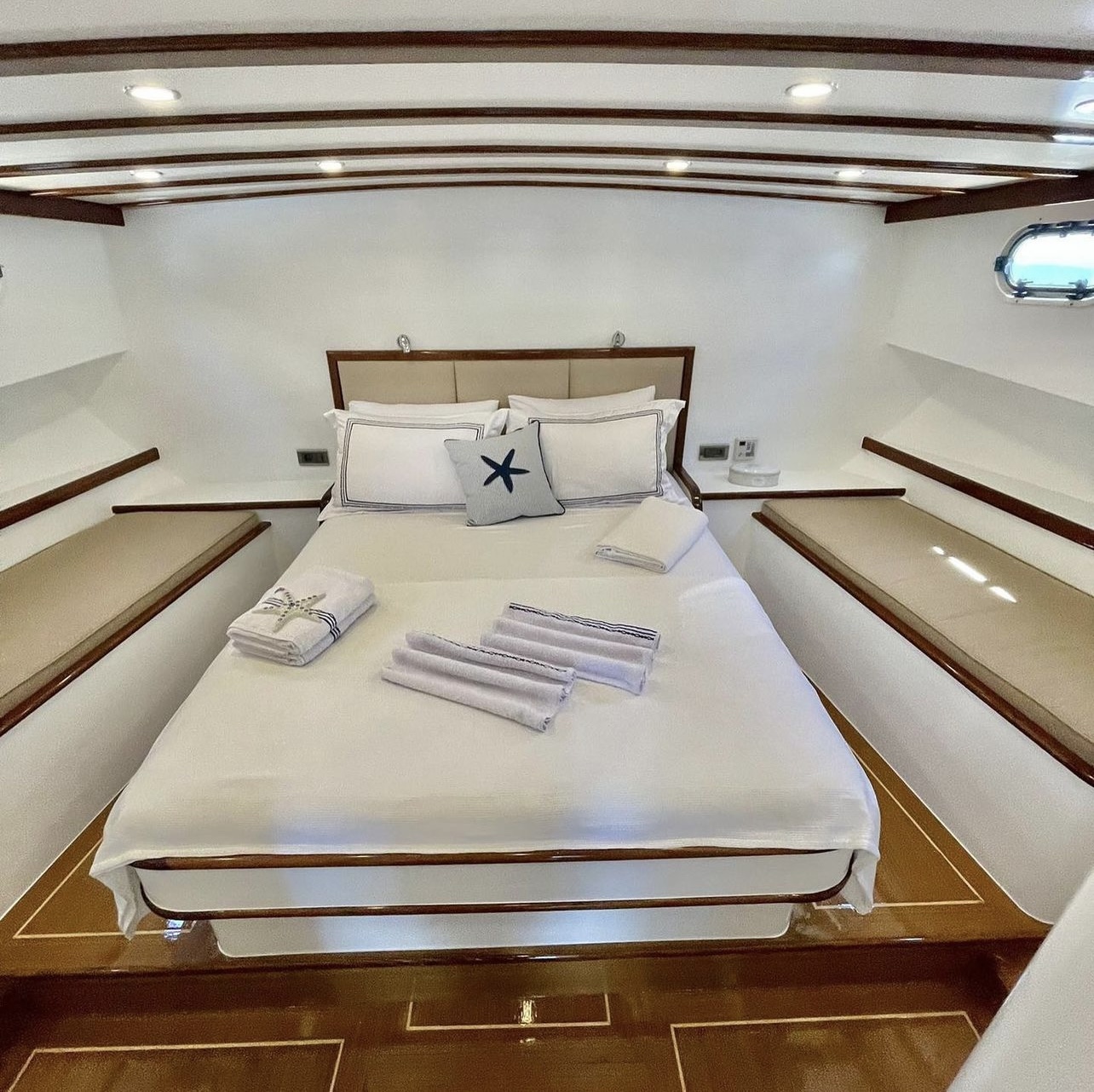Gulet Bernis, 2022 yılında yenilenen modern tasarımı ve konforlu yaşam alanlarıyla Ege kıyılarında unutulmaz bir mavi yolculuk deneyimi sunar. 18 metre uzunluğu ve 5.5 metre genişliği ile zarif ve dengeli bir yapıya sahip olan bu seçkin gulet, 3 kabini ve 6 kişilik kapasitesiyle çekirdek aileler ve arkadaş grupları için ideal bir tatil imkânı sunmaktadır. Hem estetik hem de konforu bir arada arayan misafirler için keyifli ve huzurlu bir deniz tatili vadeder.