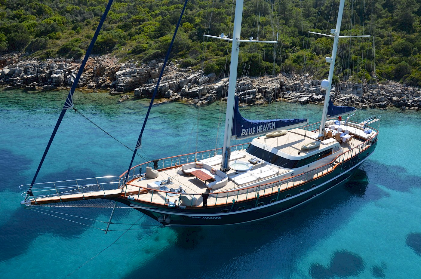 30 metre uzunluğa ve 7,20 metre ene sahip olup, mavi yolculuk misafirlerine geniş ve konforlu yaşam alanları sunmaktadır. Bodrum Limanı çıkışlı olan yatımız, 5 özenle tasarlanmış kabiniyle lüks ve şıklığı bir arada sunar.