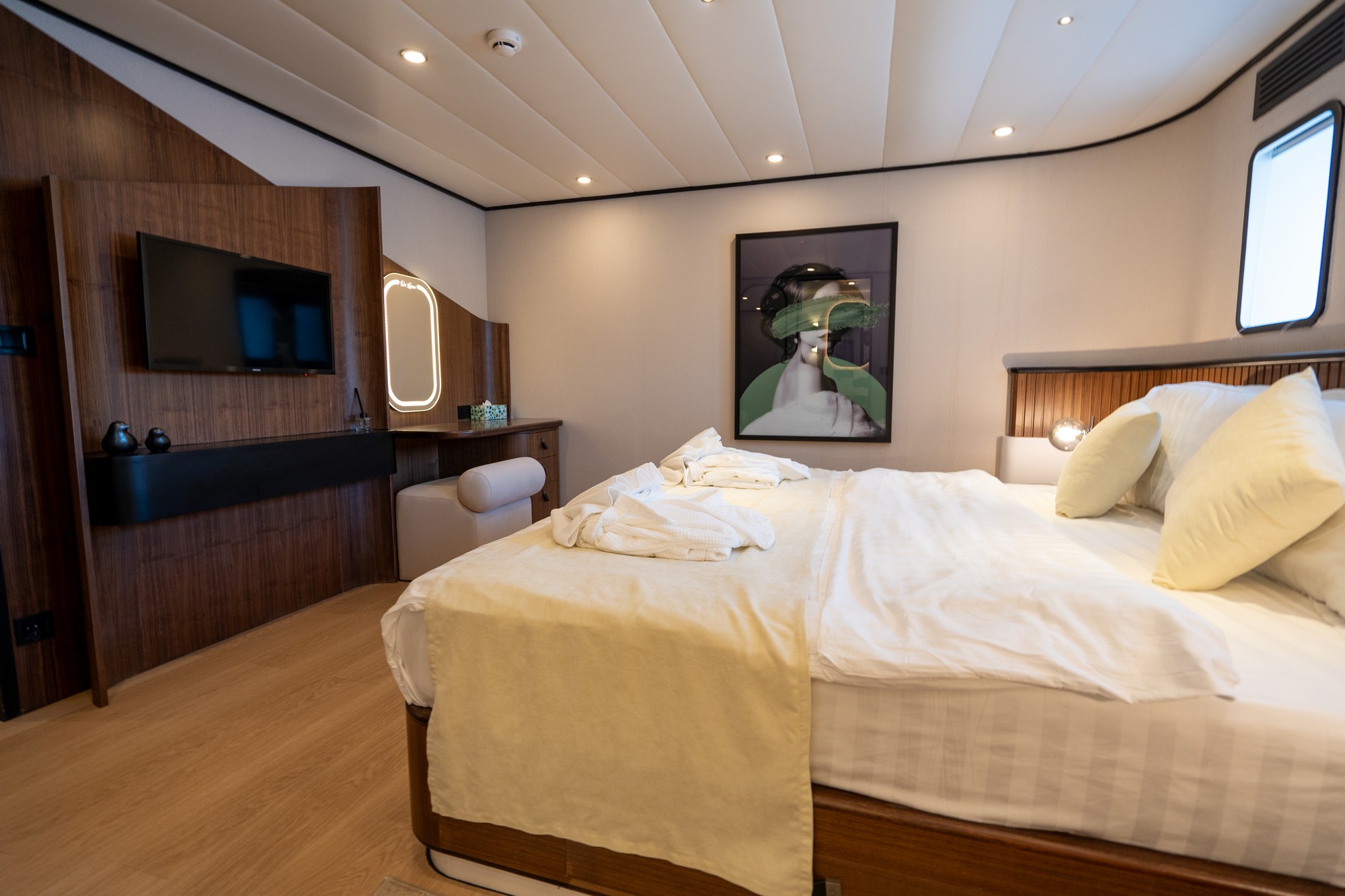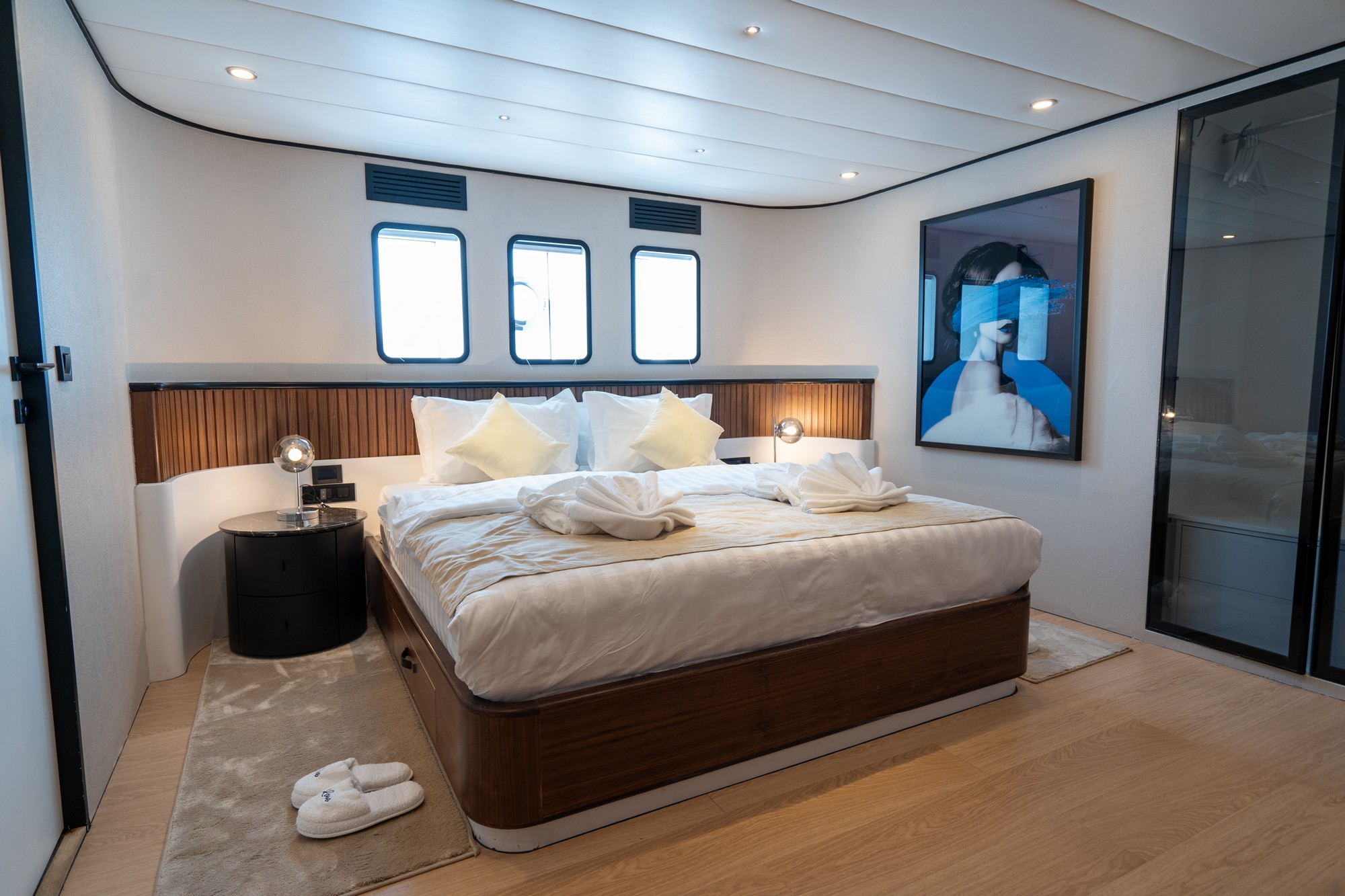 Mavi sularda lüks ve zarafeti yeniden tanımlayan 47 metre uzunluğundaki bu etkileyici yat, her detayıyla ayrıcalıklı bir mavi yolculuk deneyimi sunmaktadır. 10 metre genişliğe sahip olan ve 2024 yılında tamamen yenilenen teknemiz, modern tasarımı ve üstün konfor anlayışıyla öne çıkar.