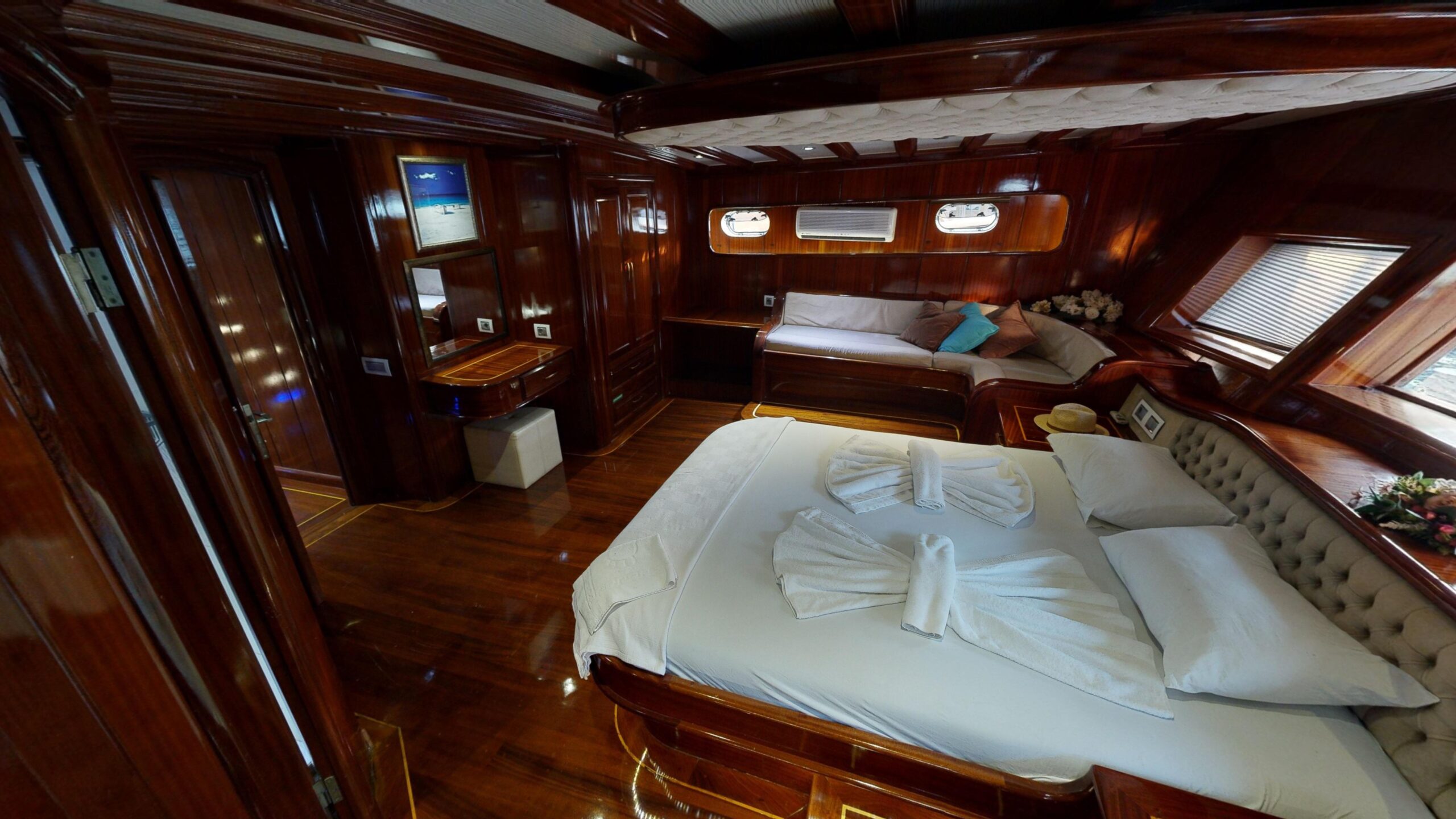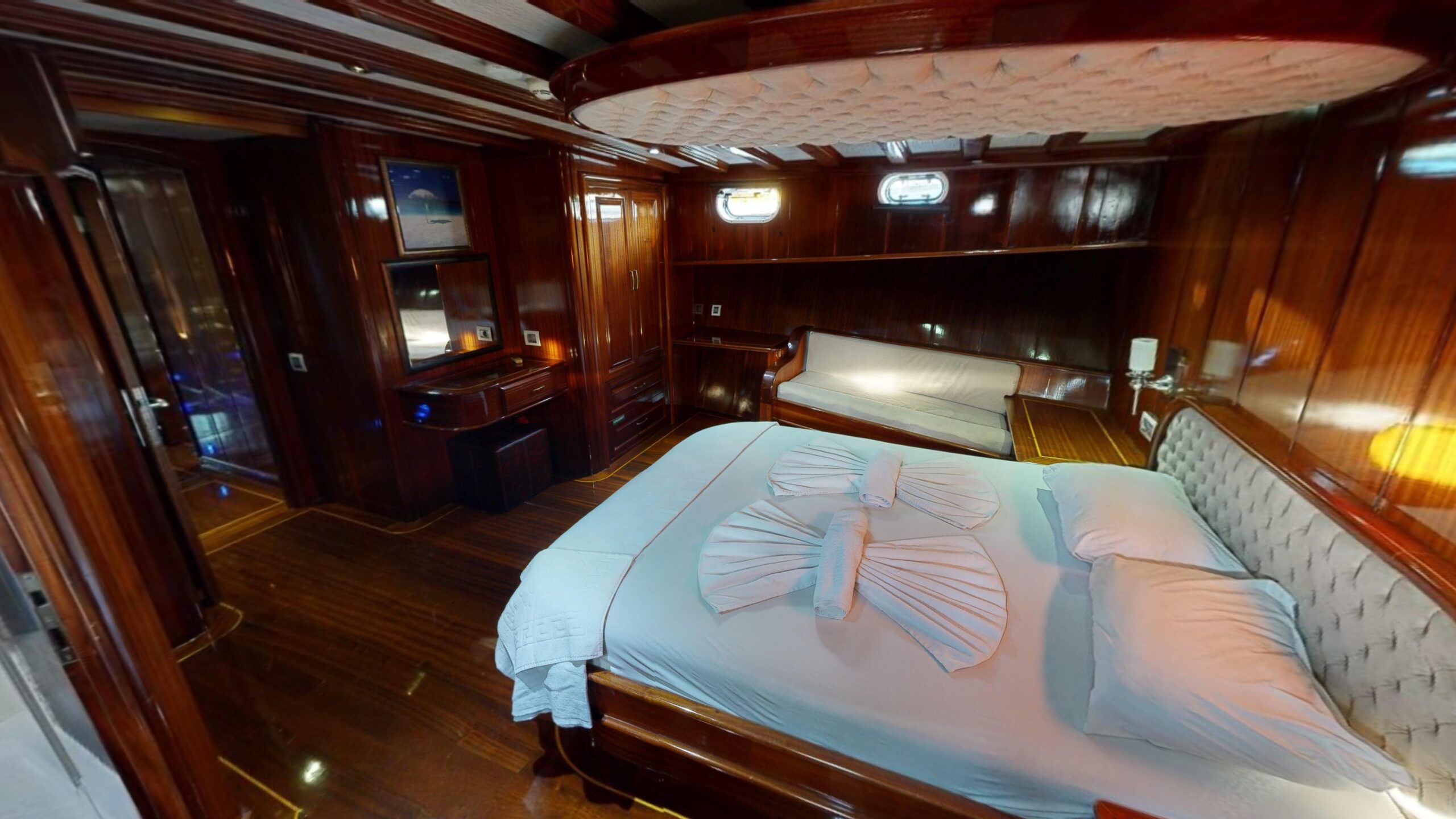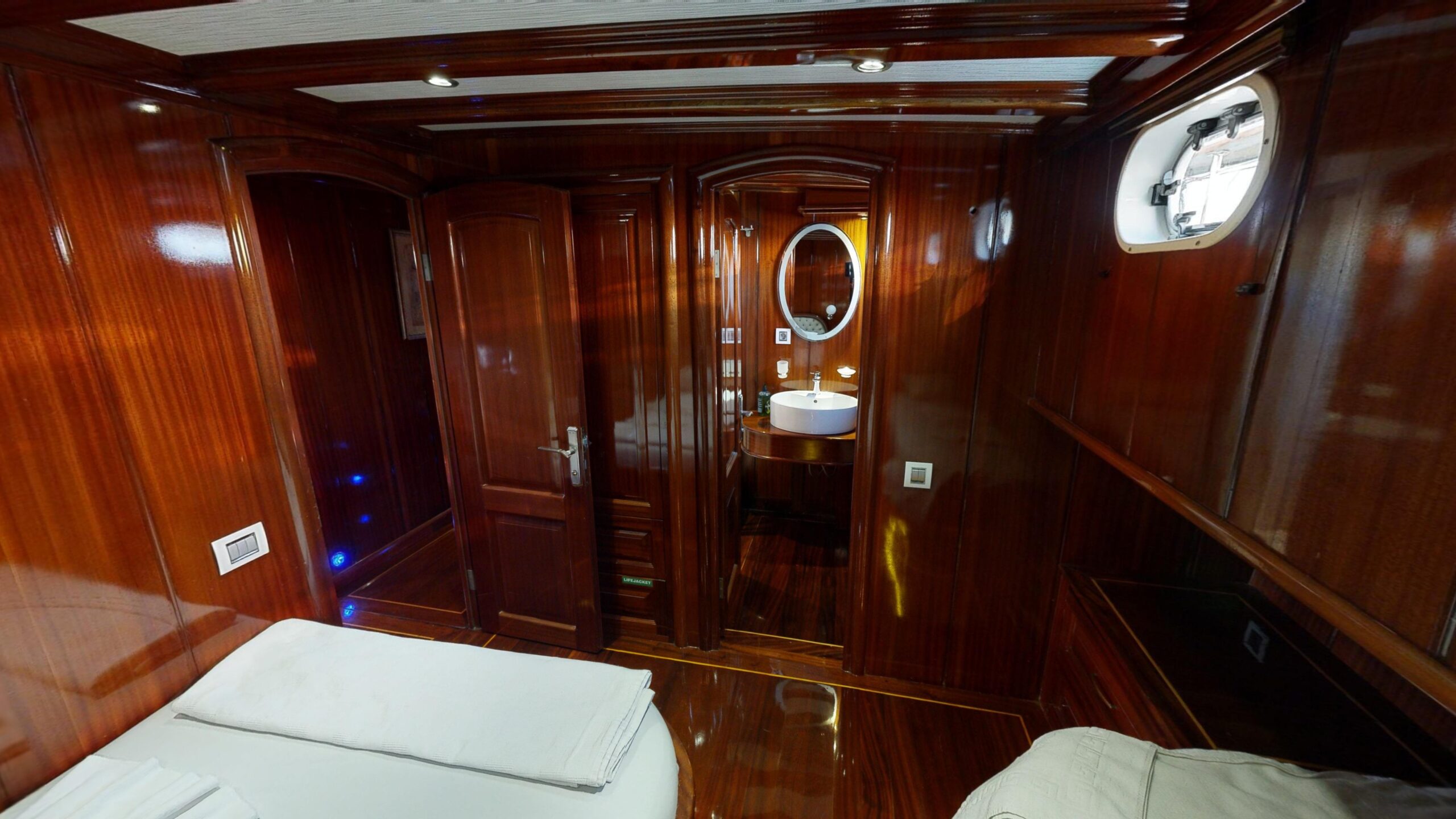 Teknemizde 2 master, 2 double ve 2 triple olmak üzere toplam 6 kabin bulunur. Her kabin, ebeveyn banyosu ve modern olanaklarıyla 12 kişiye kadar olan misafir gruplarına konforlu bir konaklama imkânı sağlar.