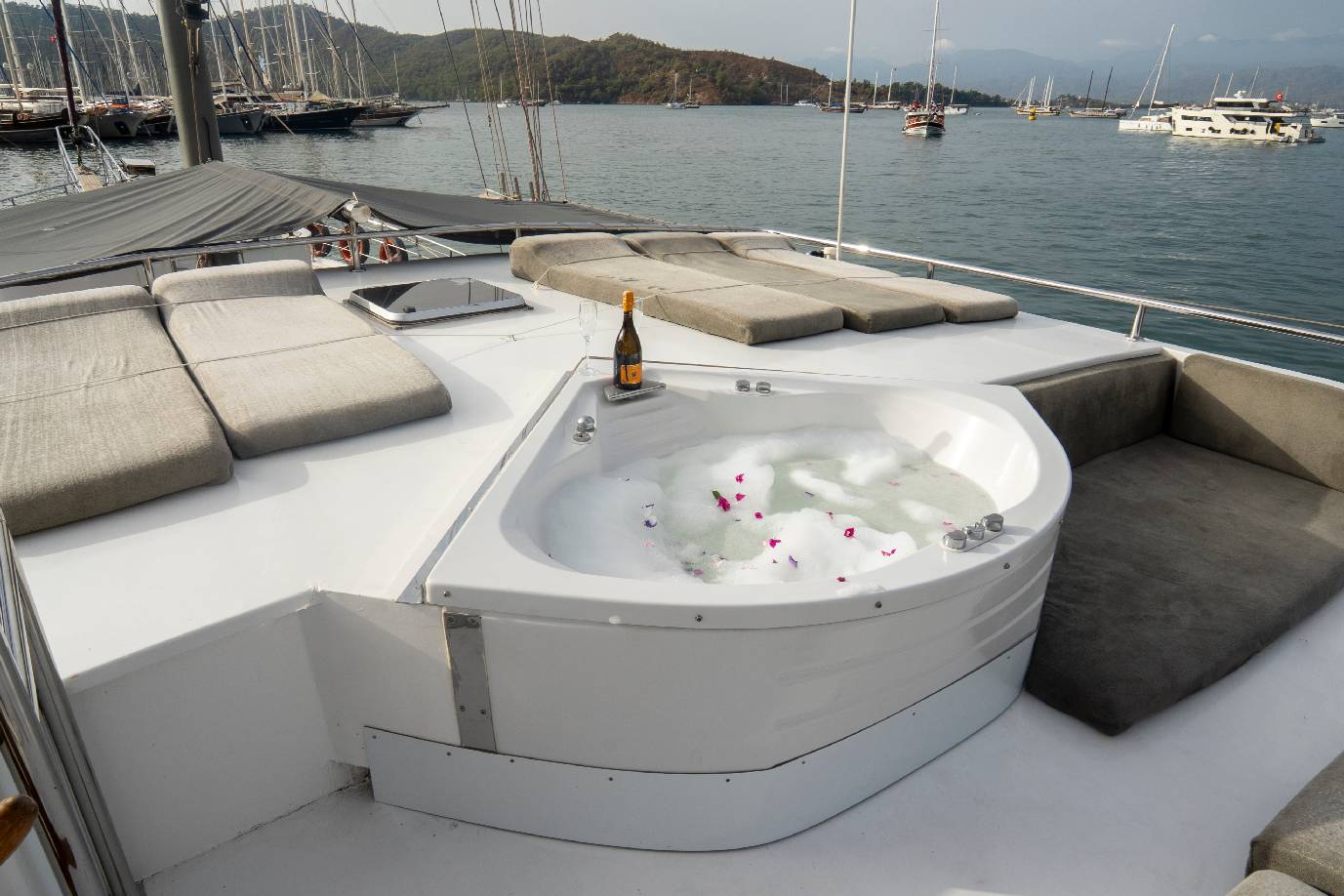 Diamond Lila, Fethiye tekne kiralama kategorisinde öne çıkan, 30 metre uzunluğundaki lüks plus sınıfı guletimizdir. Mavi yolculuk tatilini eşsiz konfor, zarafet ve huzur içinde geçirmek isteyen misafirlerimiz için mükemmel bir seçenektir.