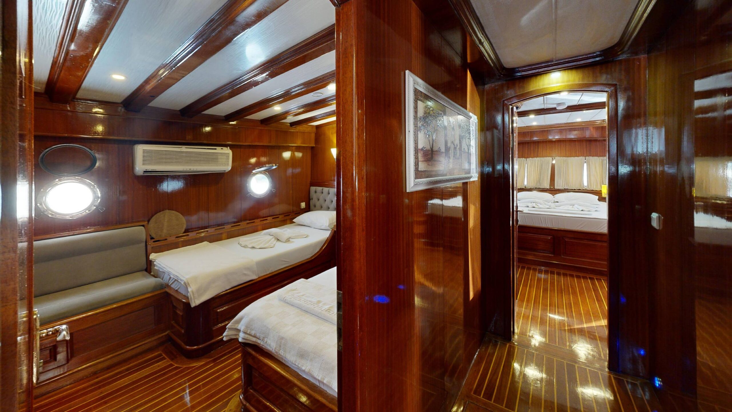 Tüm kabinlerde klima, özel duşakabin, WC, TV ve saç kurutma makinesi gibi modern olanaklar yer alır. Böylece misafirlerimiz, denizin ortasında dahi ev konforunu yaşarken, lüks bir yatın sunduğu ayrıcalıkları da deneyimleme fırsatı bulurlar.