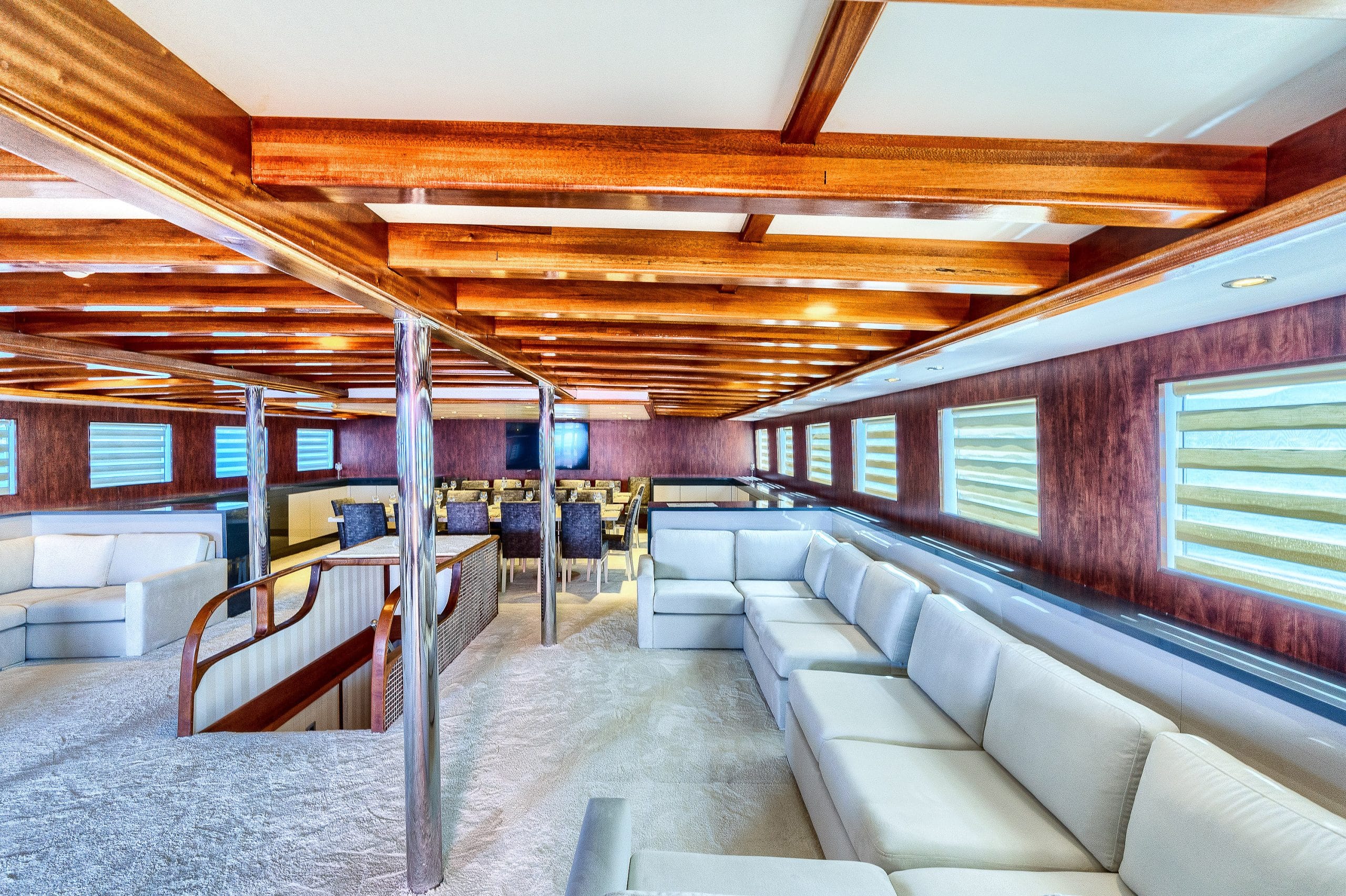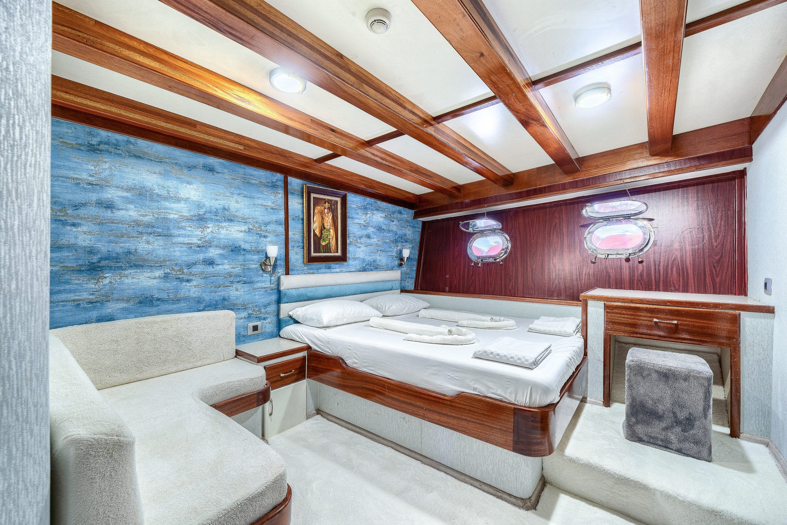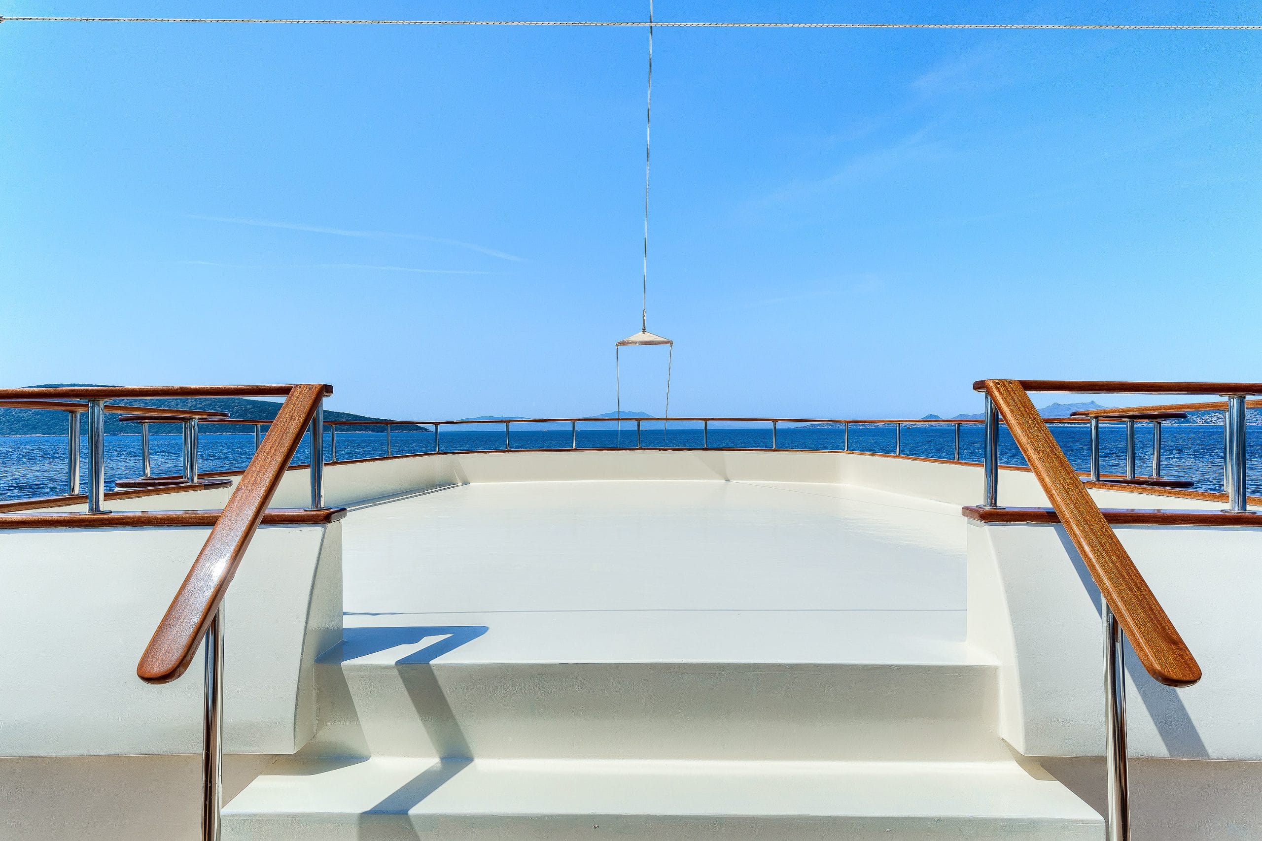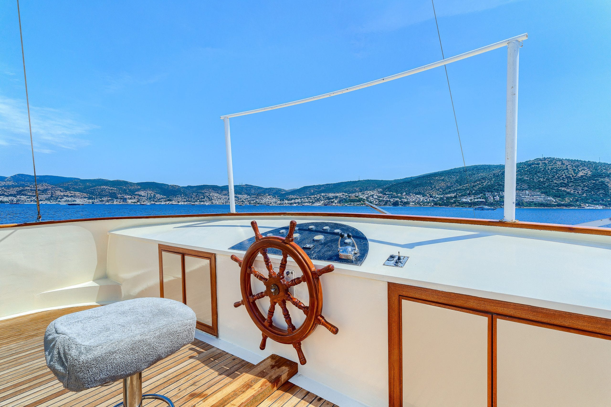 Elara 1’in dikkat çeken ana güvertesi, konuklarına ferah bir atmosfer sunar. Geniş güneşlenme terası, konforlu şezlongları ve açık hava yemek alanı ile gün boyu rahatlamanın tadını çıkarabilirsiniz. Kraliyet jakuzisi ise denizde lüksü bir adım öteye taşır. Gemide yer alan özel bar alanı, misafirlere keyifli anlar yaşatmak için özenle tasarlanmıştır.