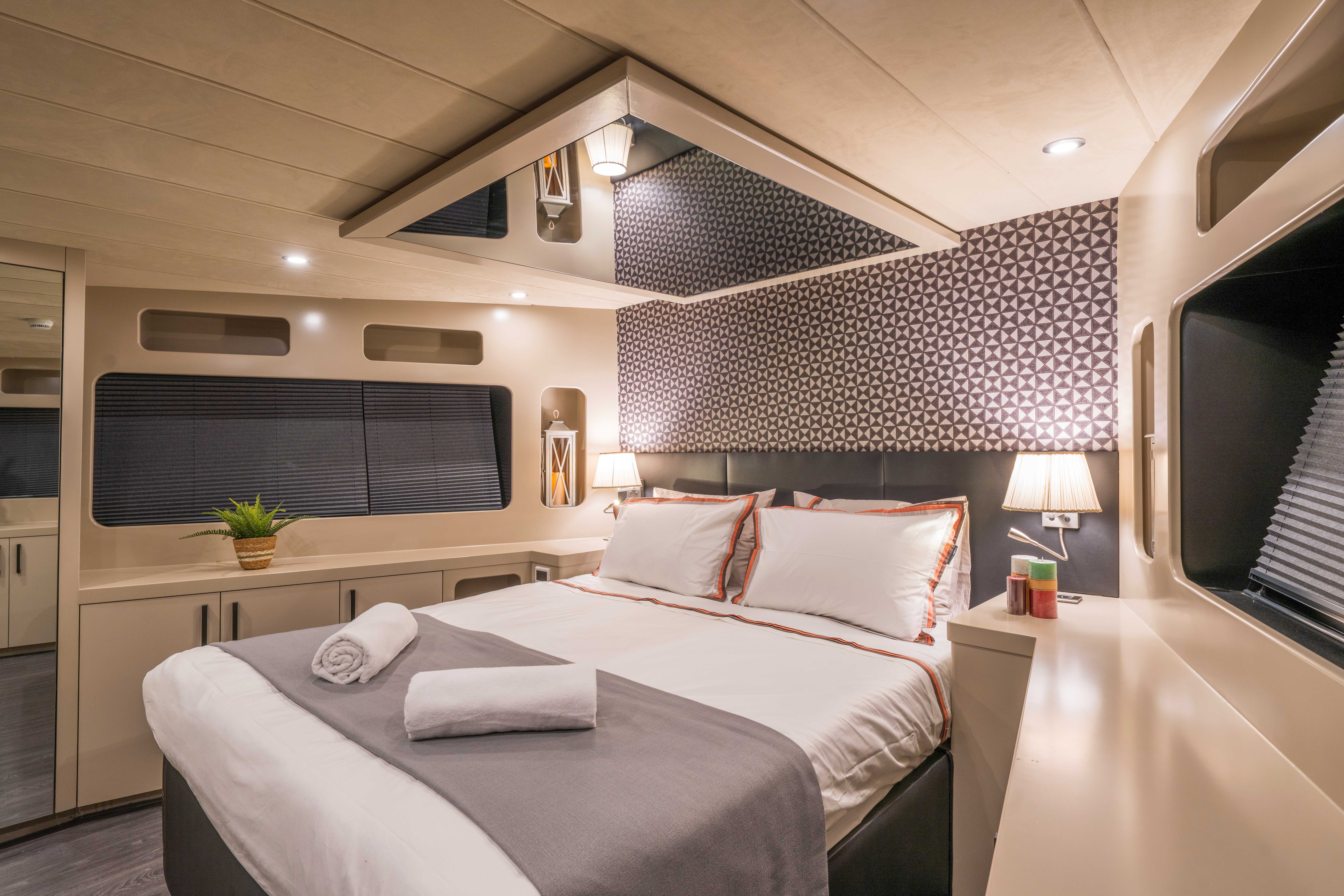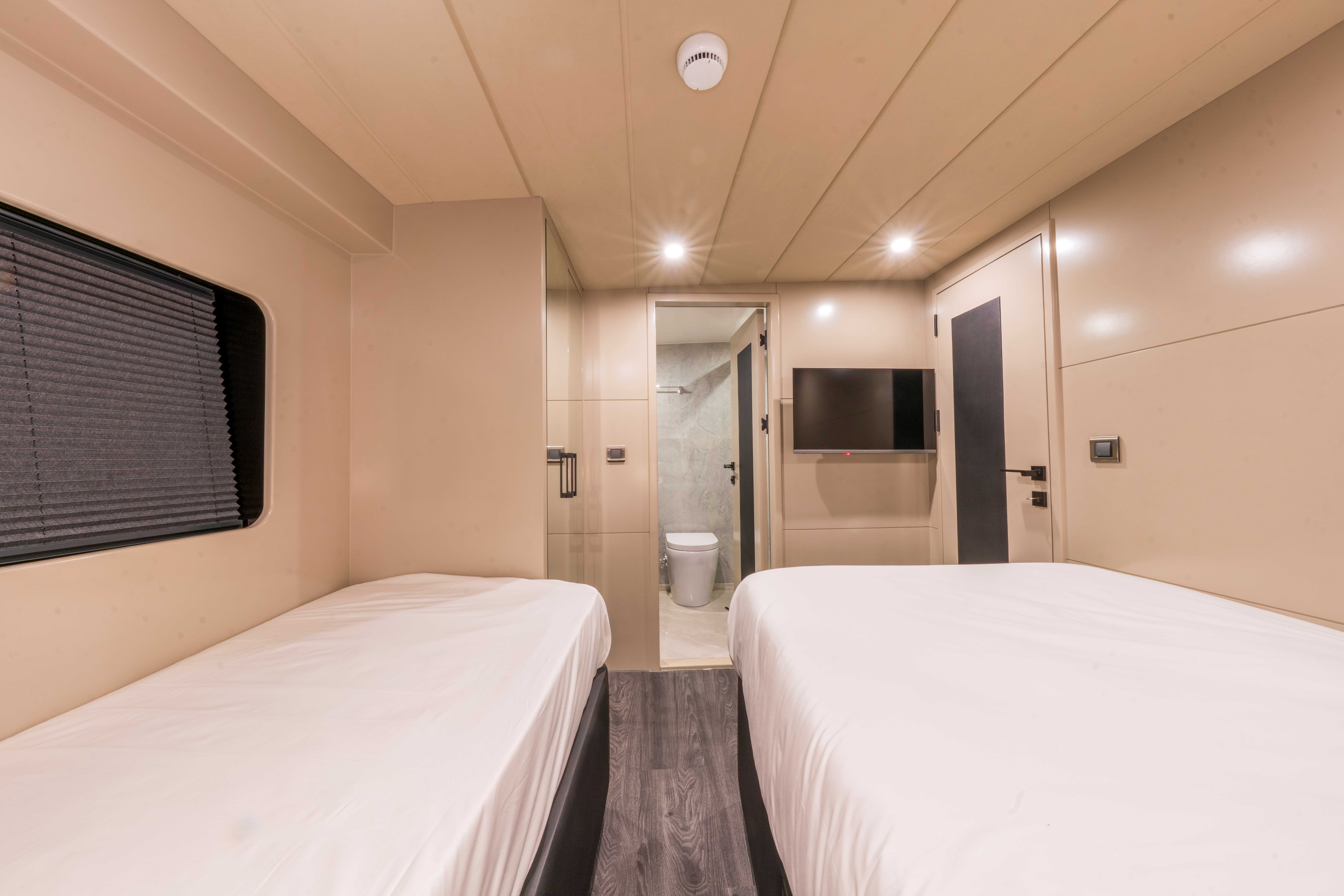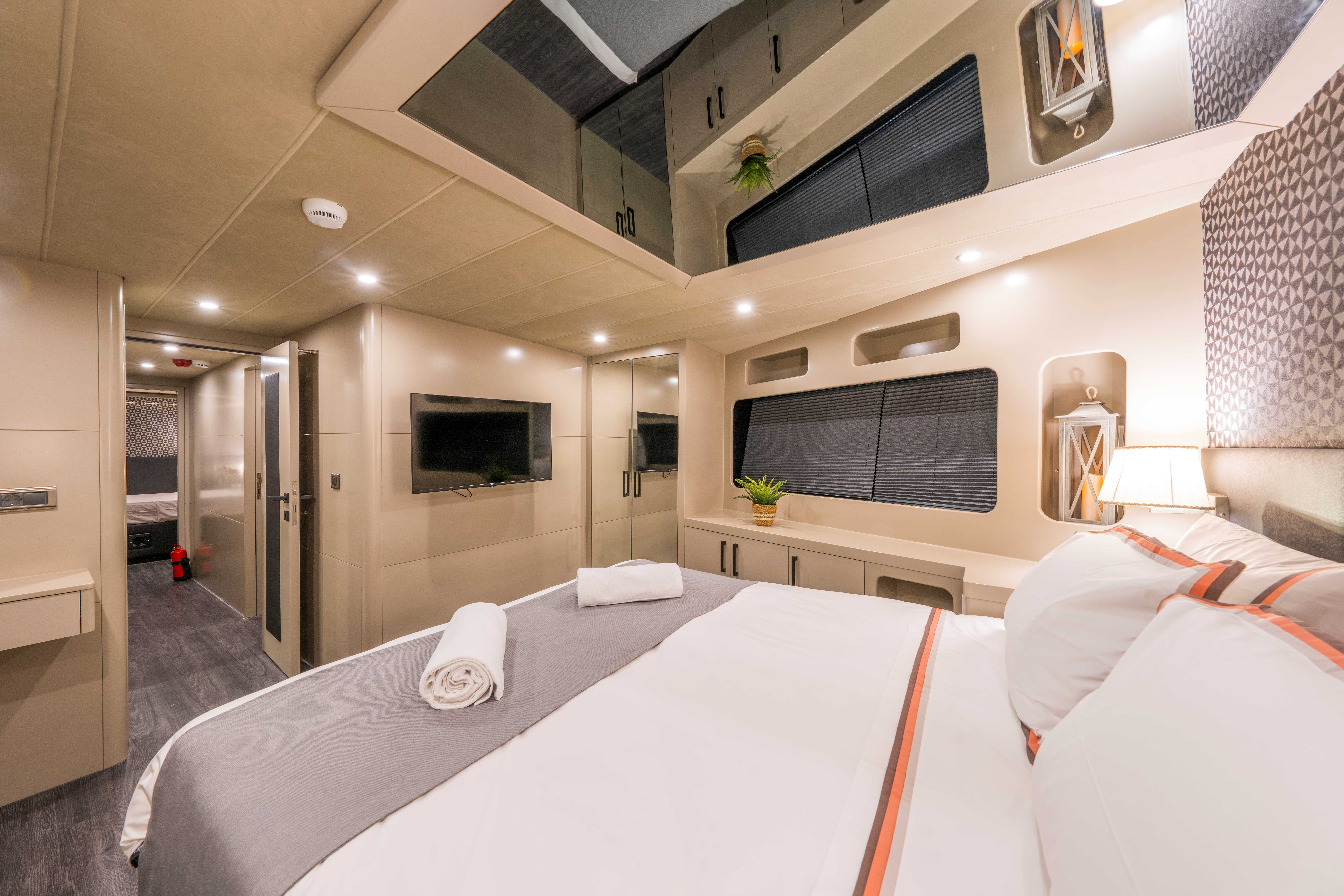 Her kabinde klima, özel banyo ve özenle düşünülmüş lüks detaylar yer alarak misafirlerin konforunu en üst seviyeye taşır.