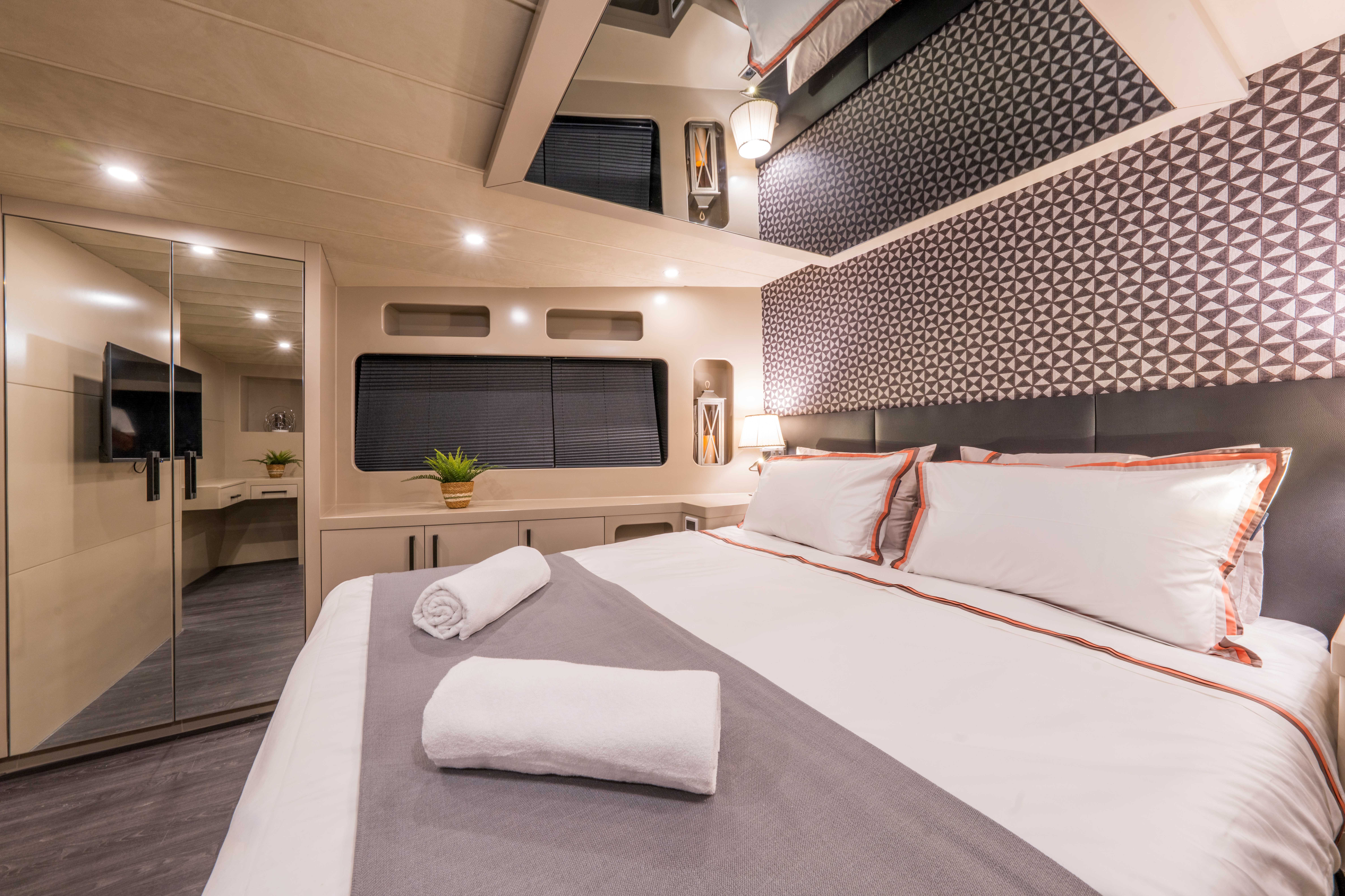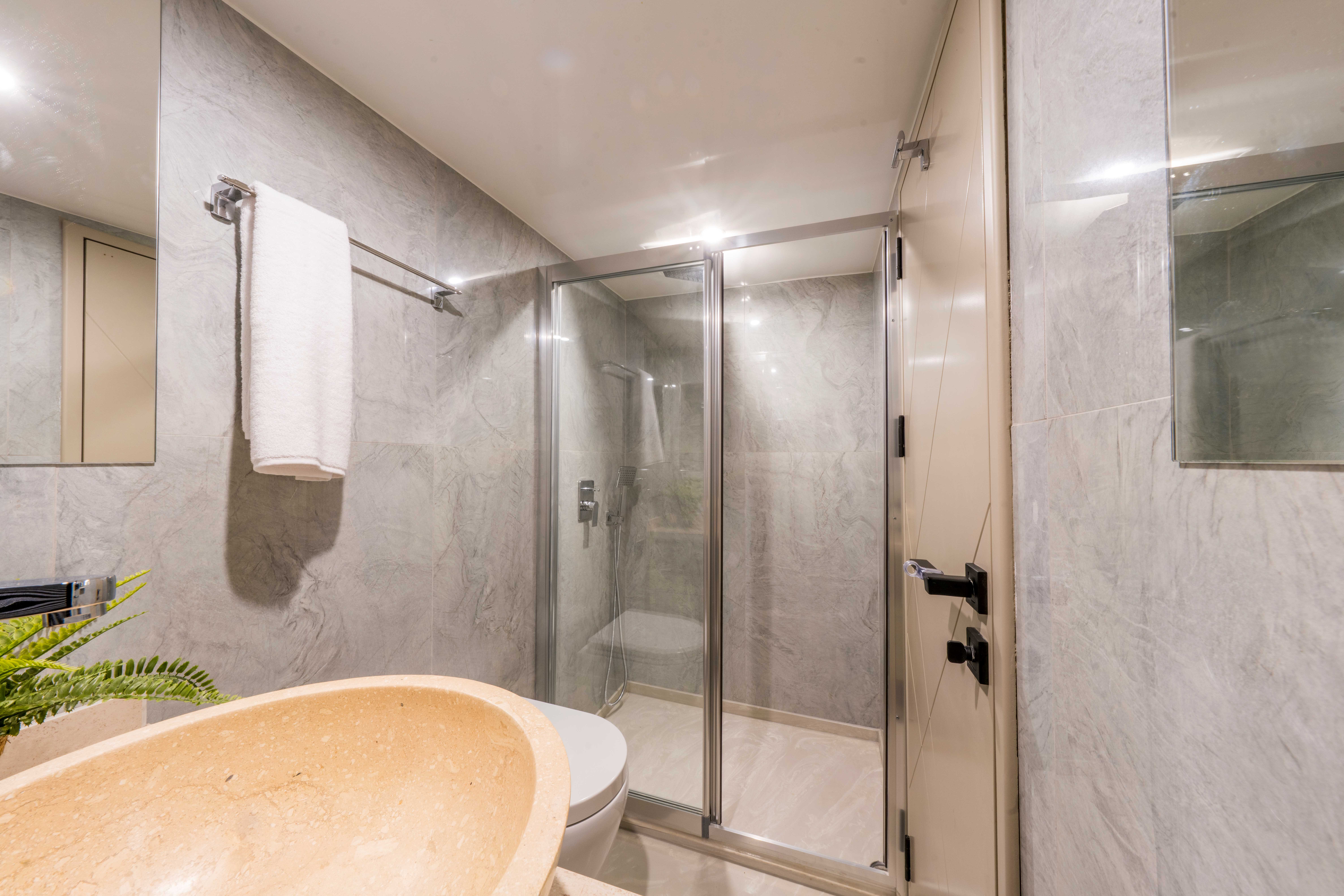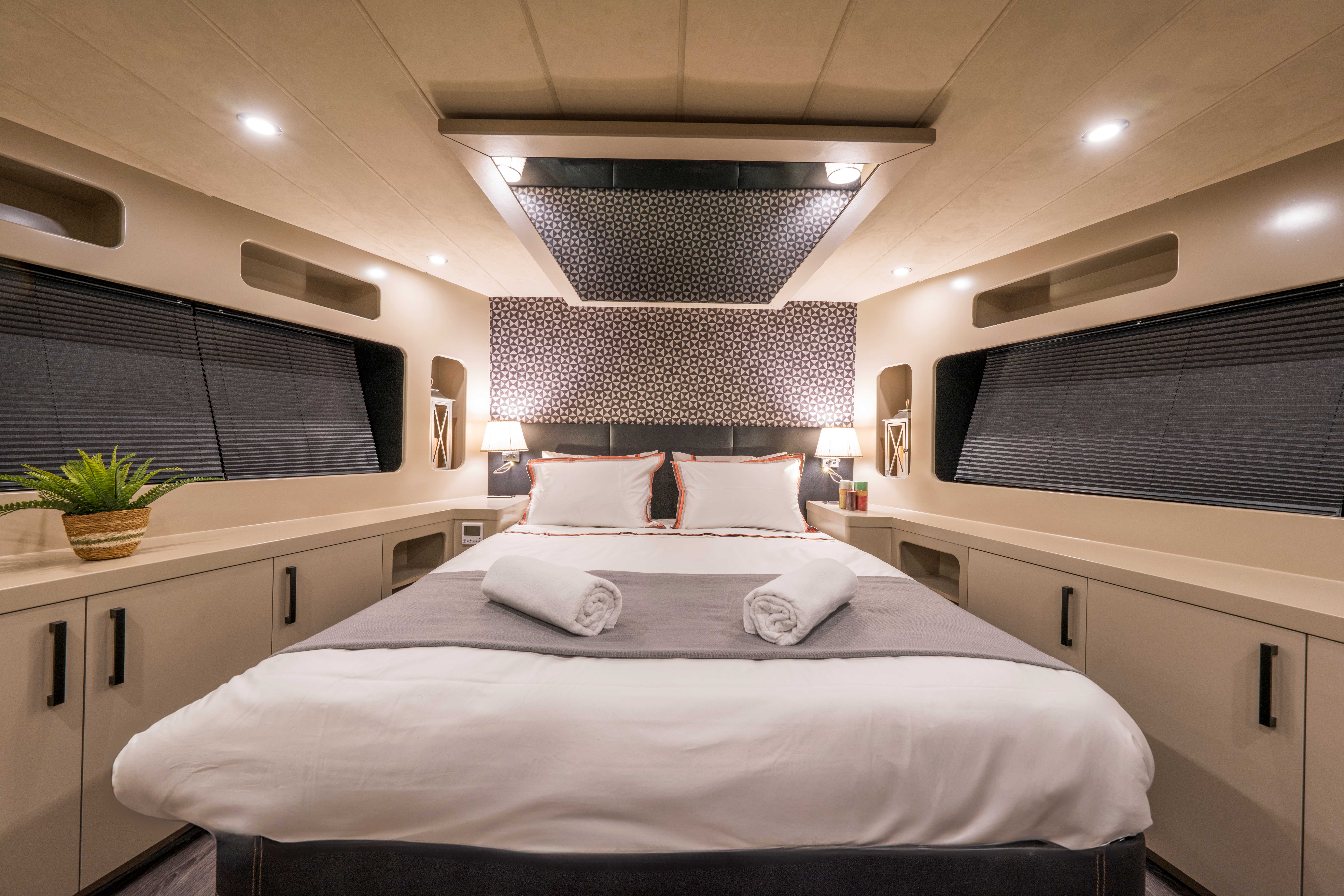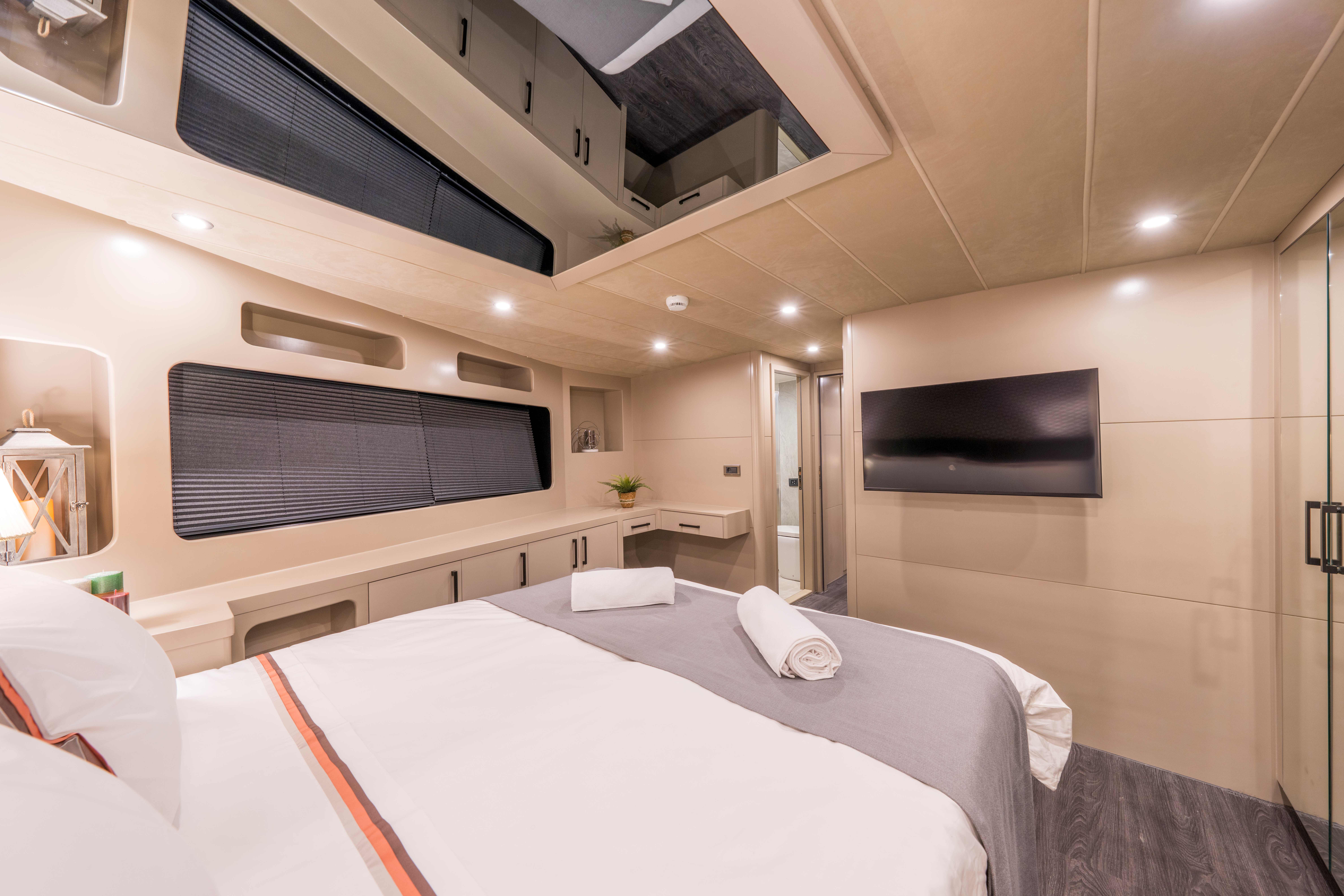 Her kabinde klima, özel banyo ve özenle düşünülmüş lüks detaylar yer alarak misafirlerin konforunu en üst seviyeye taşır.