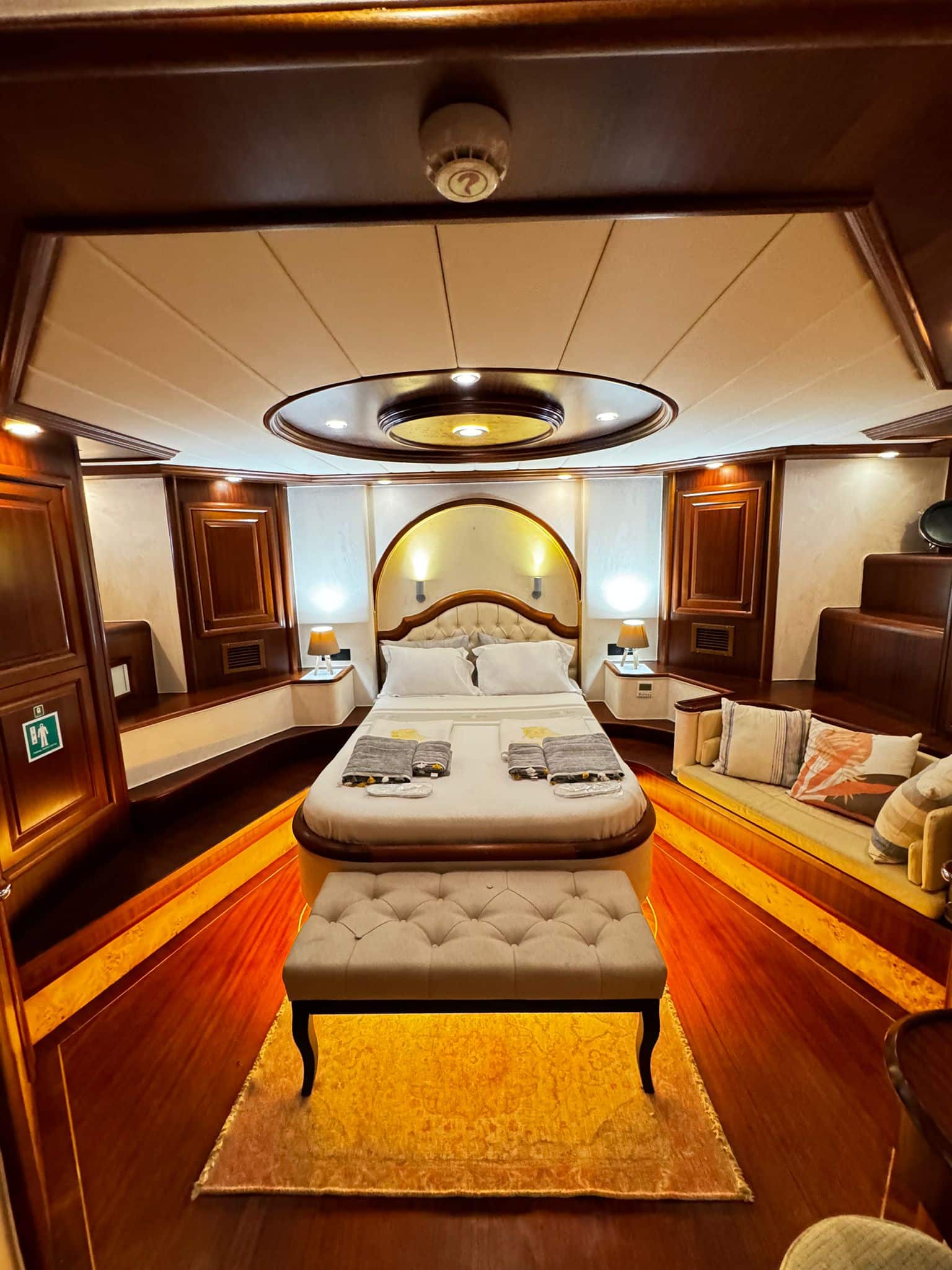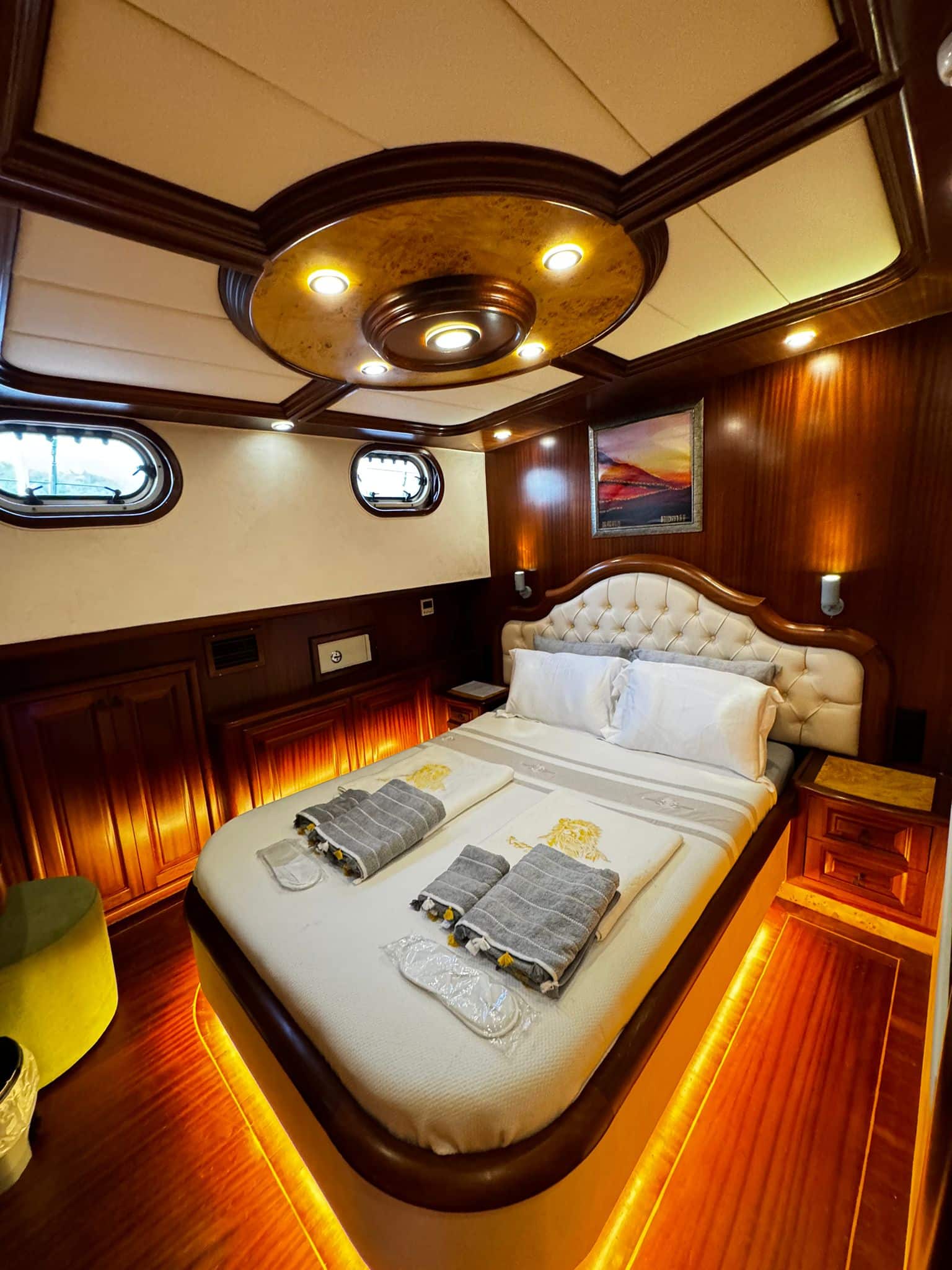 2014 yılında denize indirilen bu klasik ahşap yat, Ege ve Akdeniz’in büyüleyici koylarında hizmet vermektedir. Her kış gerçekleştirilen düzenli bakım ve yenileme çalışmaları sayesinde, teknemiz daima modern konfor standartlarına uygun, kusursuz bir görünüme sahiptir.