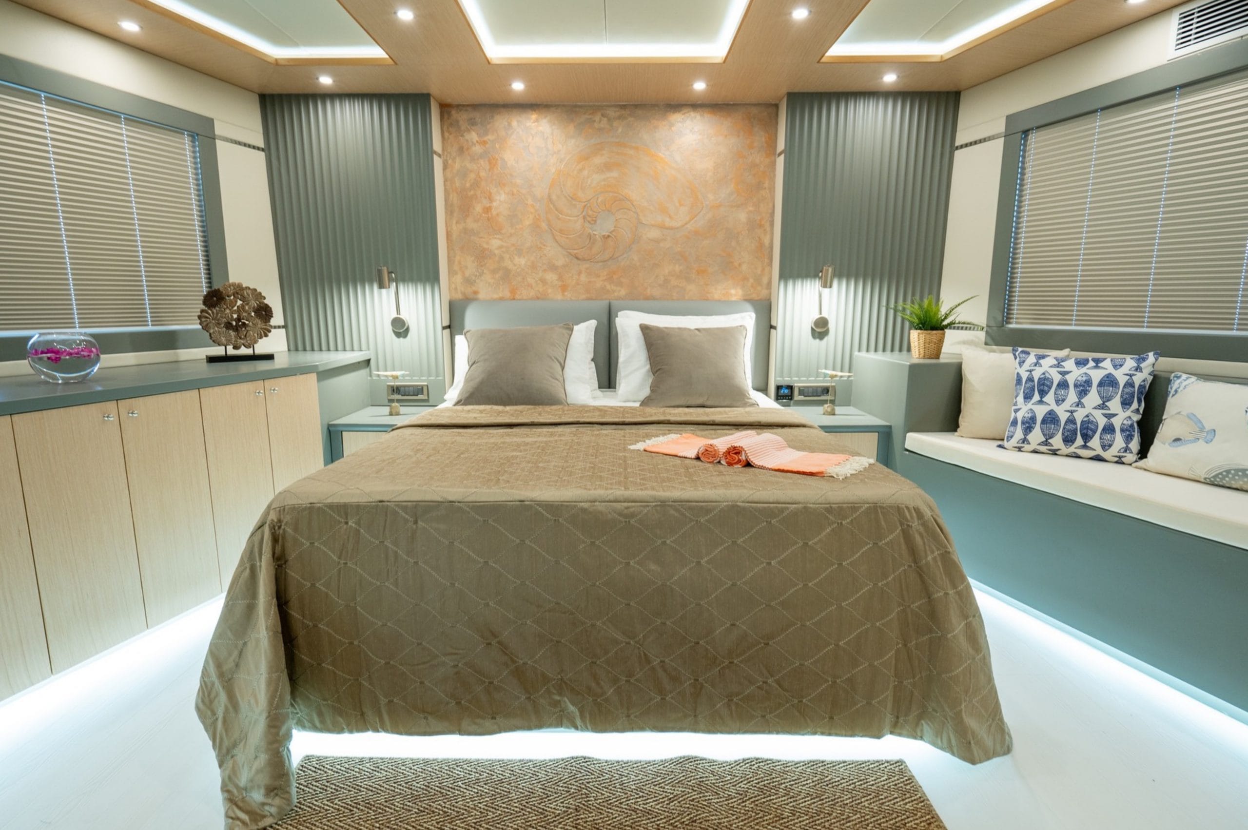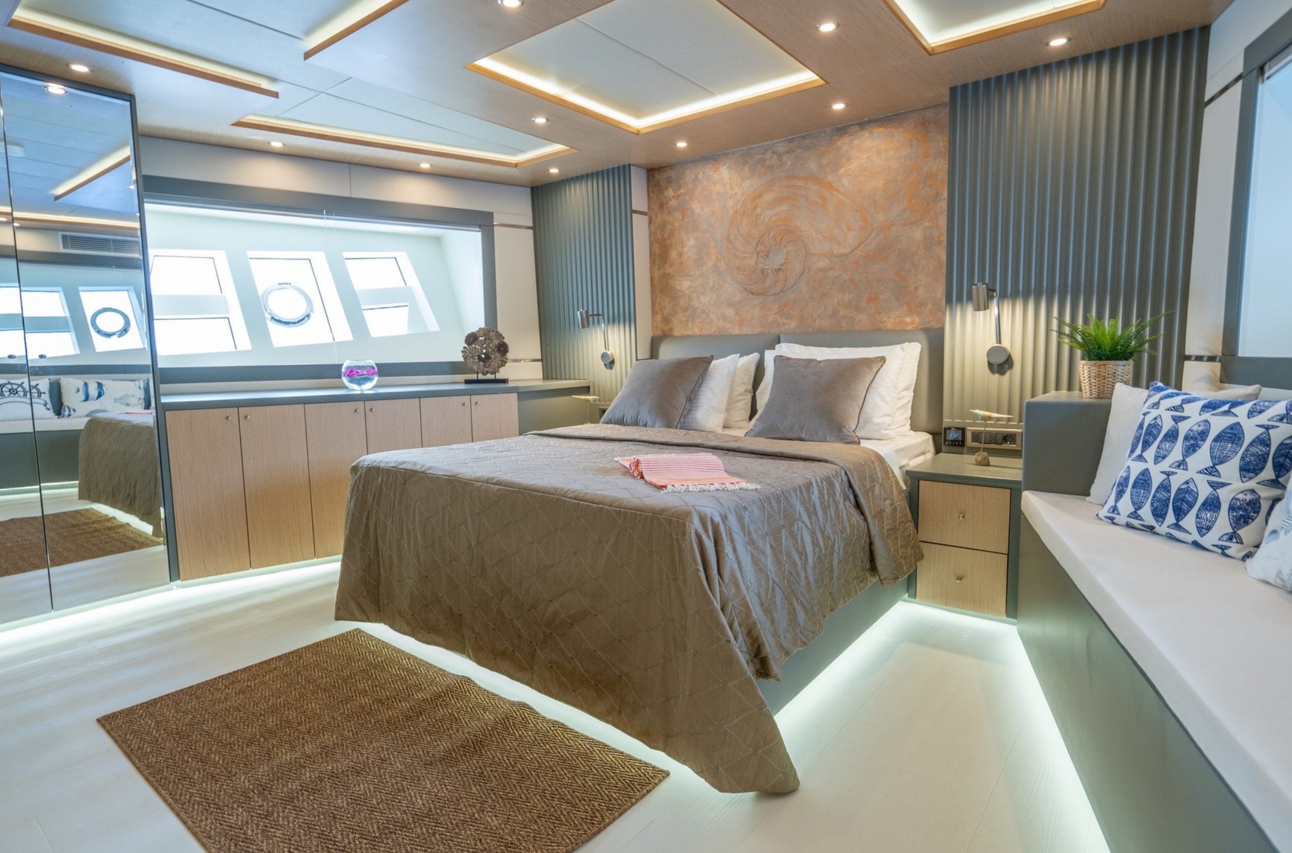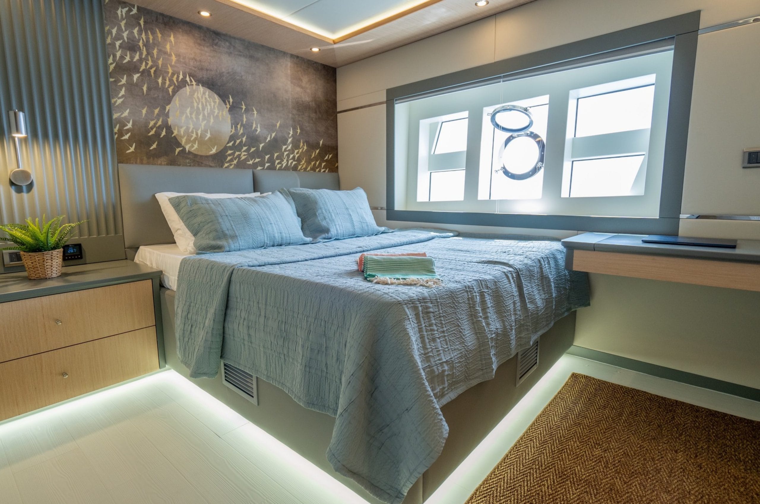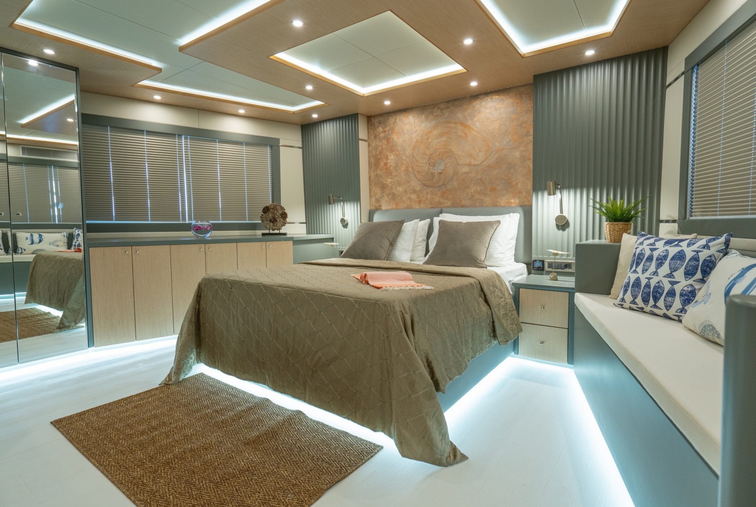 2024 yılında inşa edilen Lavin, modern tasarımı ve yüksek konfor standartlarıyla misafirlerine ayrıcalıklı bir mavi yolculuk deneyimi sunar. 26,50 metre uzunluğa ve 7,20 metre genişliğe sahip bu zarif trawler, 2 master, 1 double ve 1 twin olmak üzere toplam 4 lüks kabin ile 8 kişiye kadar konaklama imkânı sağlamaktadır. Her kabinde özel banyo, WC ve klima bulunmaktadır.