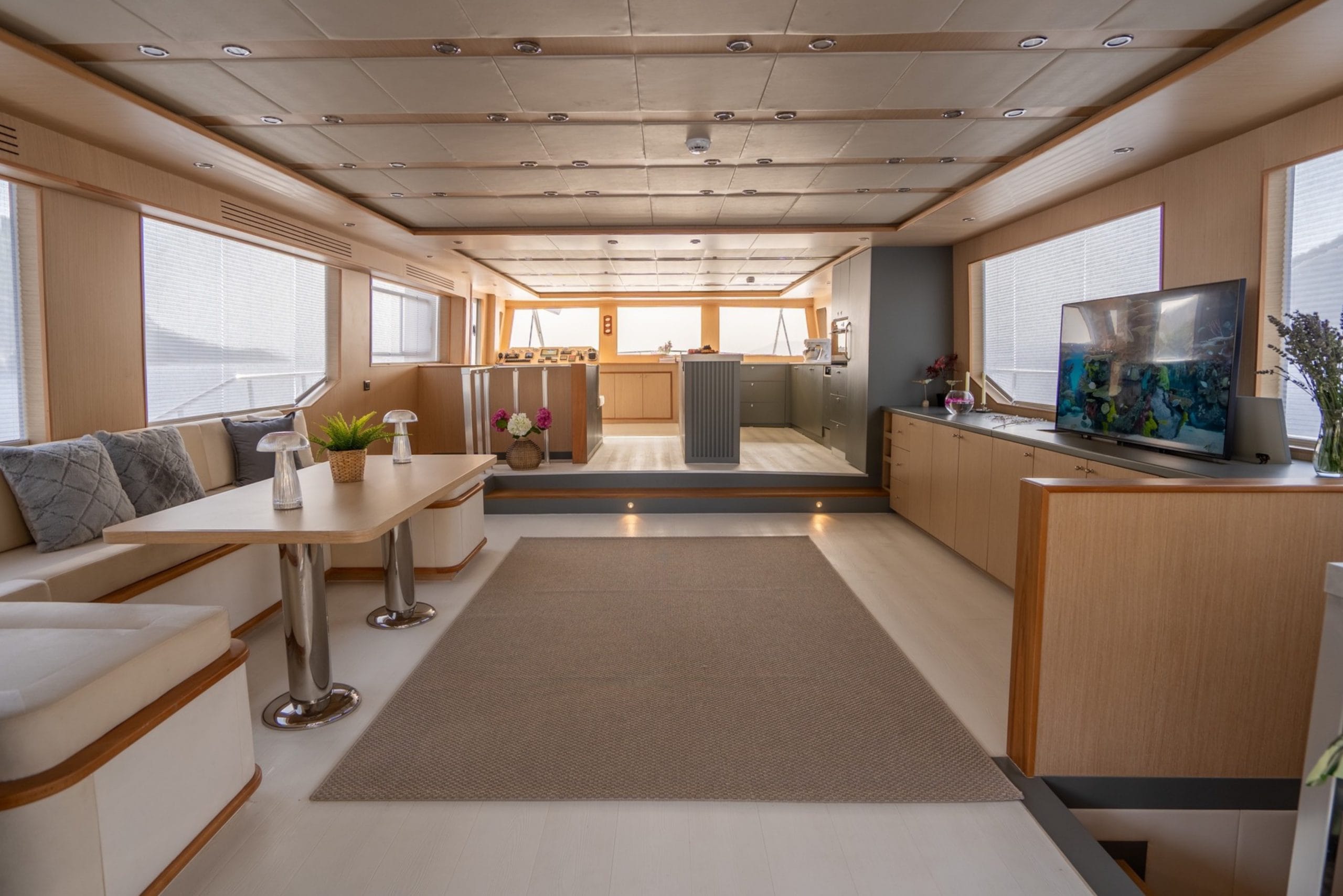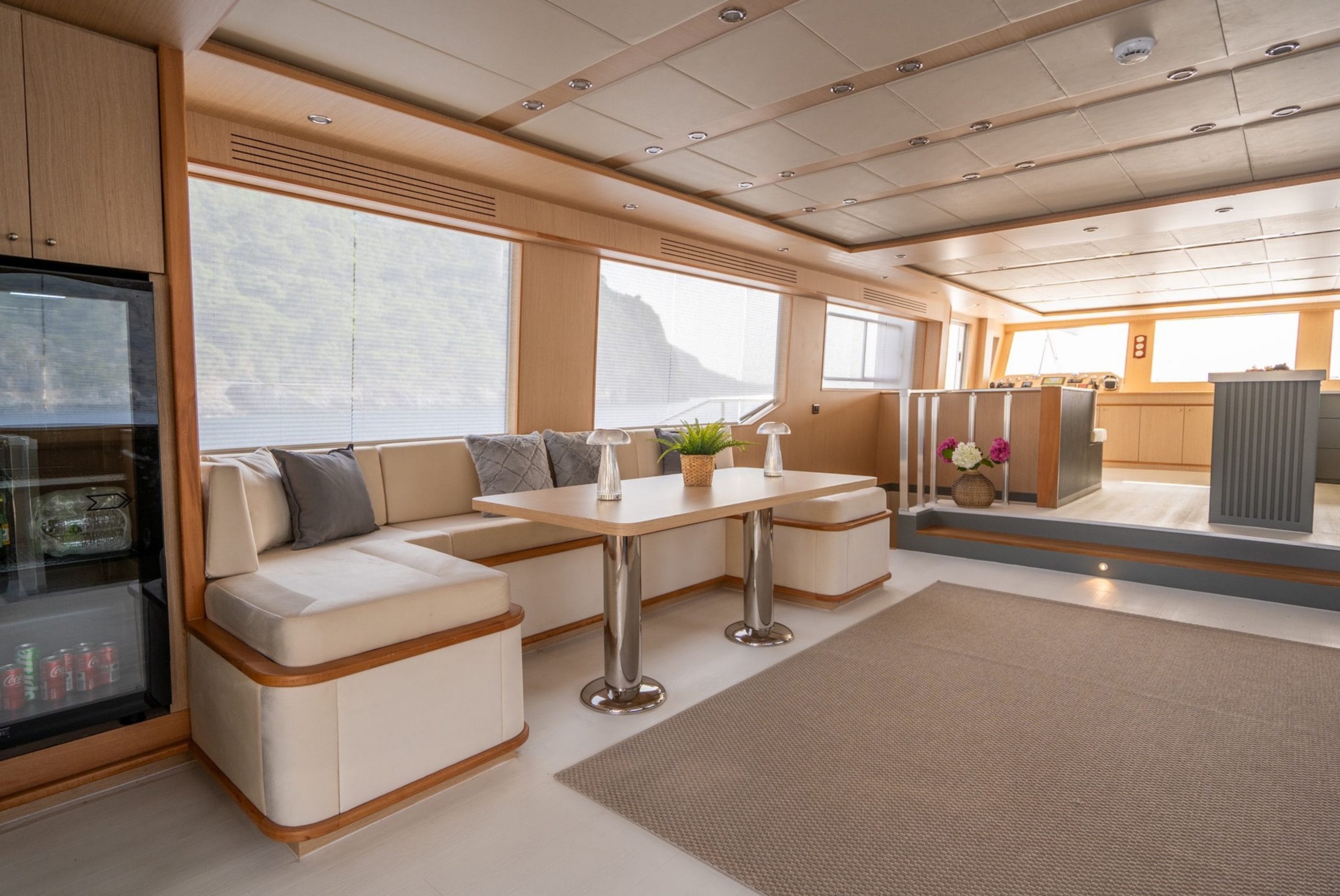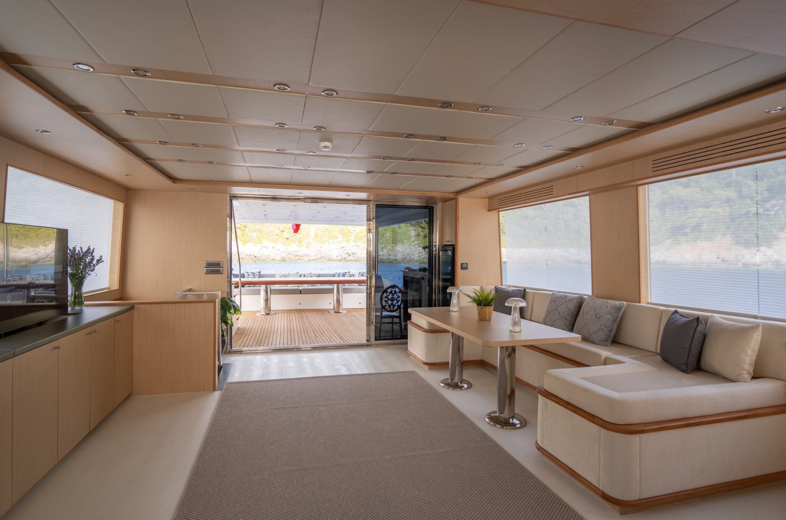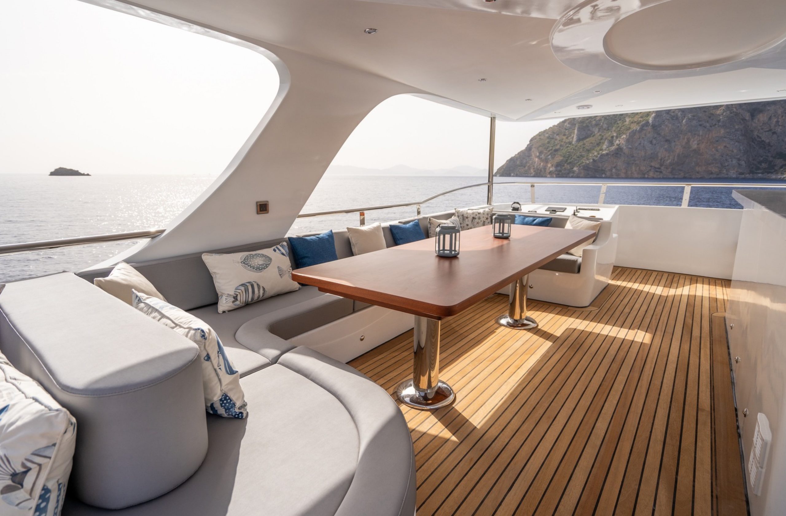 Açık hava yaşam alanları, güneşlenme ve dinlenme bölümleri ile keyifli zaman geçirmenizi sağlayan Lavin’de, aynı zamanda açık havada yemek alanları ve bar da mevcuttur. Tam donanımlı mutfağımızda özenle hazırlanan lezzetli yemeklerimizi güvertedeki masamızda deniz manzarası eşliğinde tadabilirsiniz.
