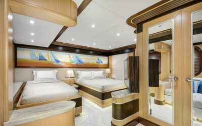 Teknemiz, biri geniş ve konforlu master olmak üzere toplam 6 delüks kabinle 12 misafire kadar son derece rahat bir konaklama imkânı sunmaktadır. Kabin dağılımı; 1 master, 3 VIP ve double kabine dönüştürülebilen 2 twin şeklindedir.