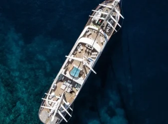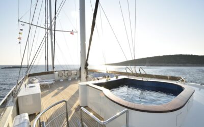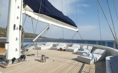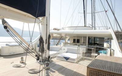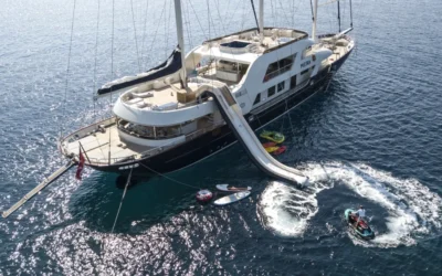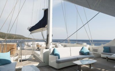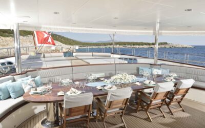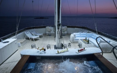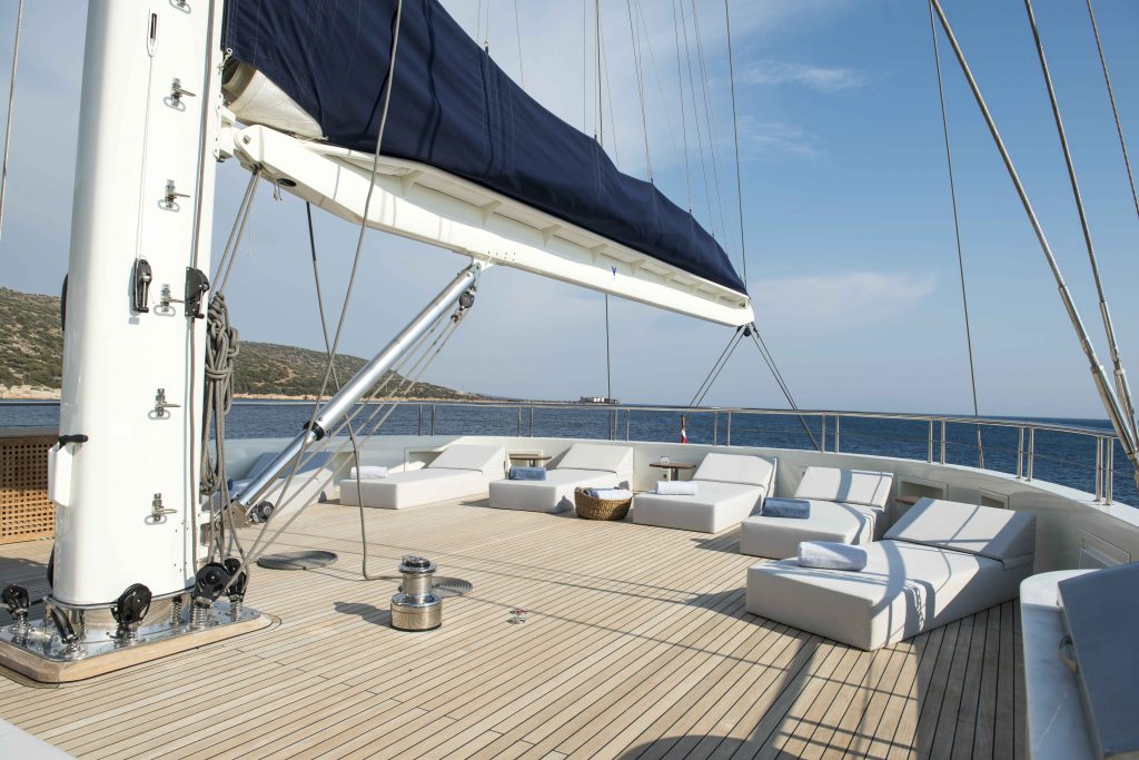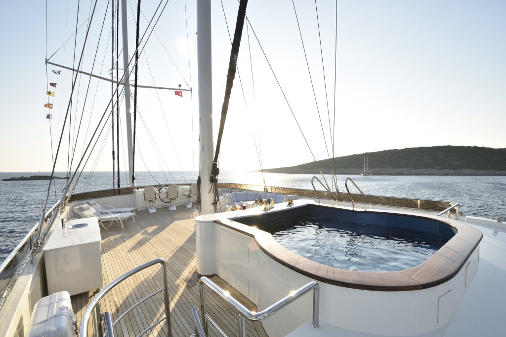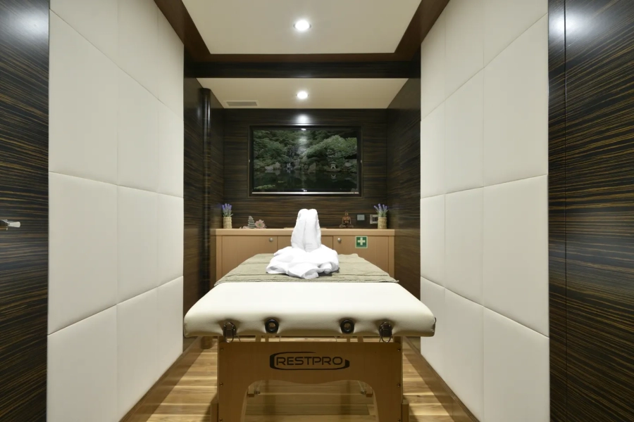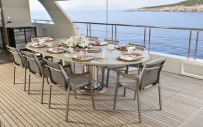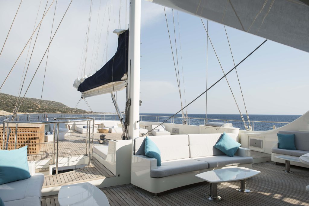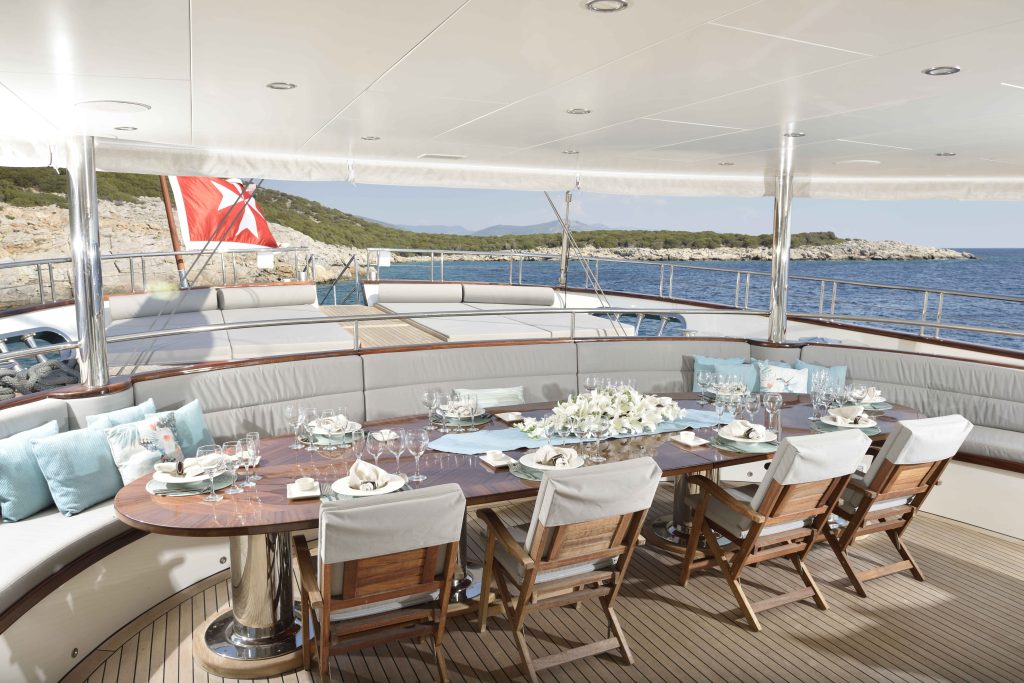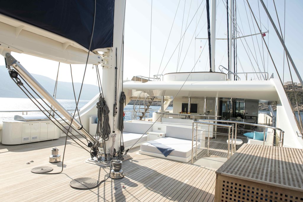 Ana güvertede ayrıca panoramik pencerelere sahip geniş salon, rahat oturma gruplarıyla ferah bir yaşam alanı sunarken, 12 kişilik resmi yemek alanı ve tam donanımlı bir bar da misafirlerin kullanımına sunulmaktadır.