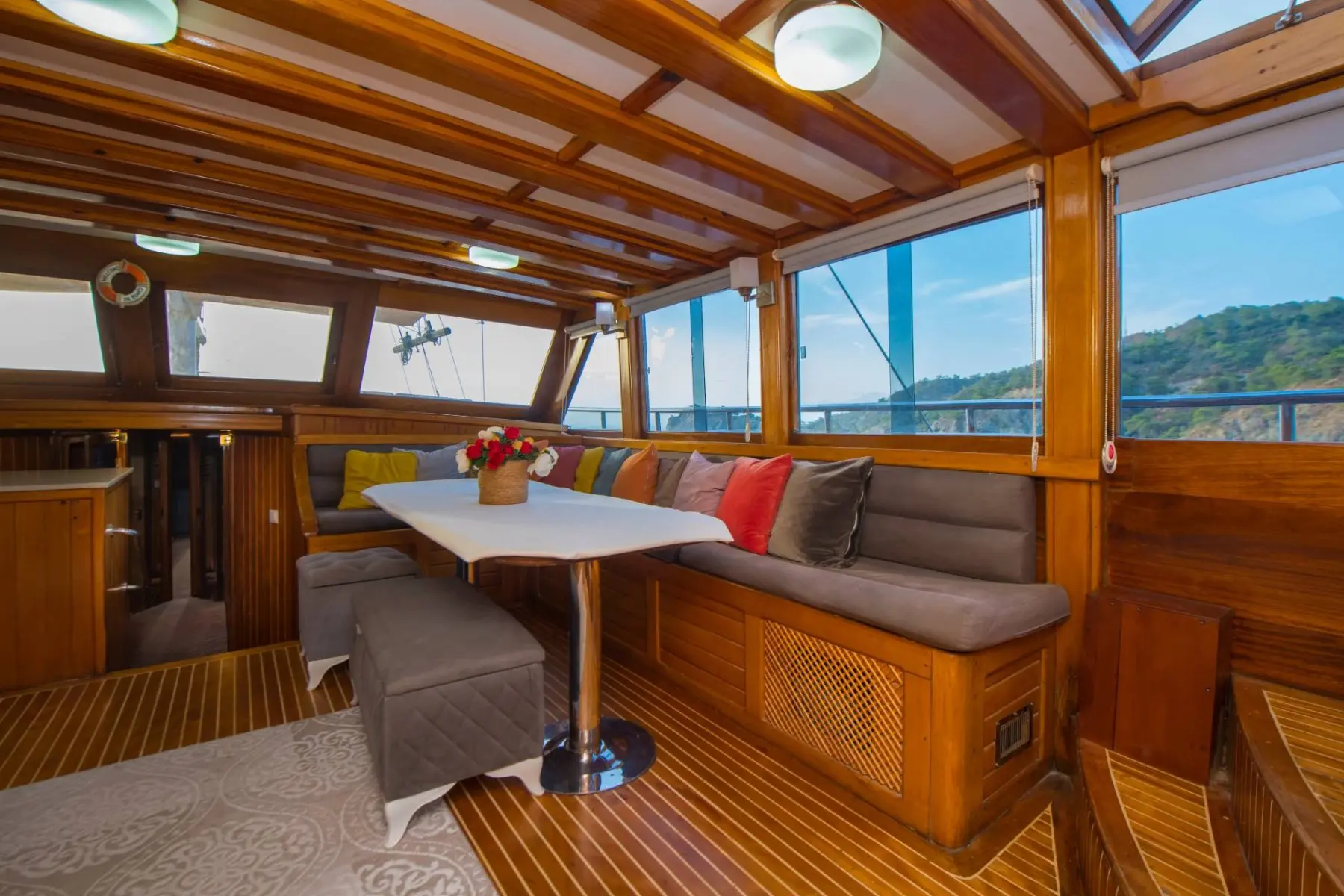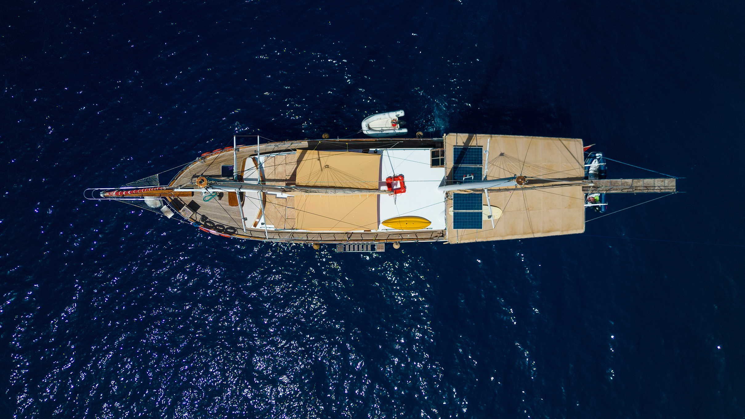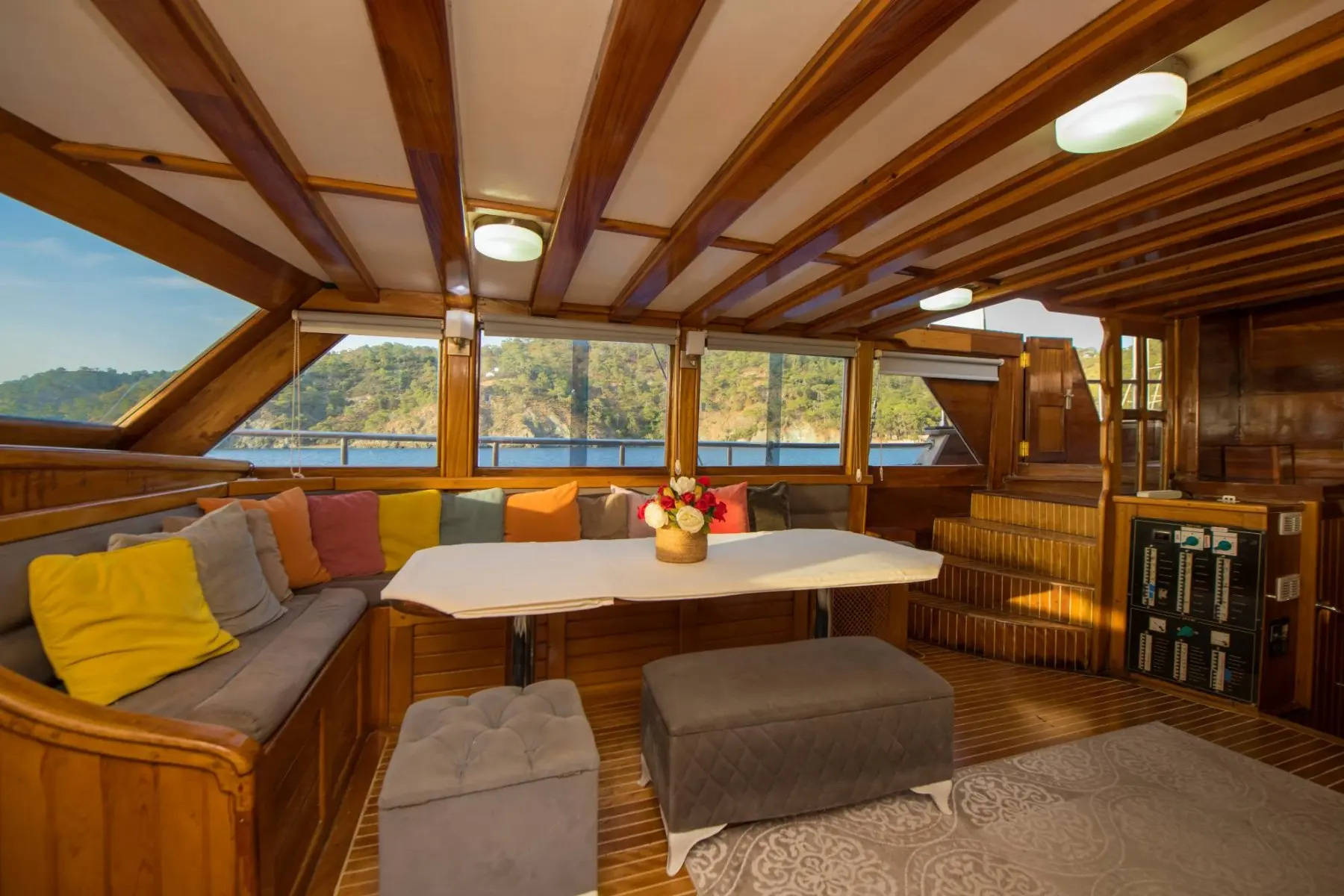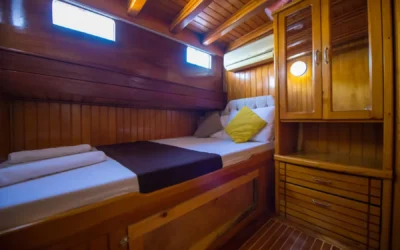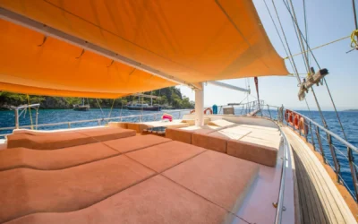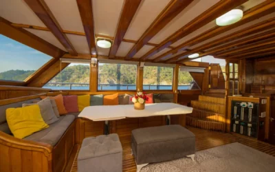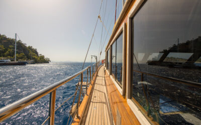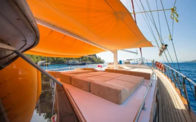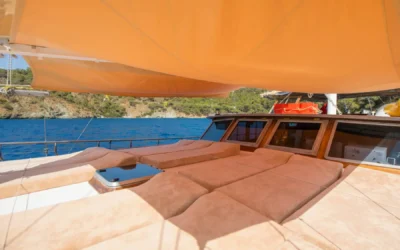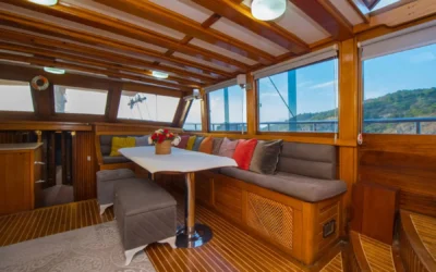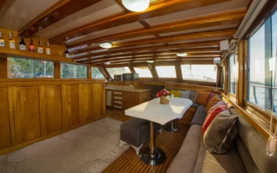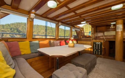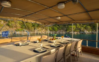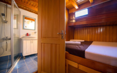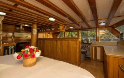 26 metre uzunluğunda ve 7 metre genişliğinde olan teknemiz, 8 double kabiniyle toplam 16 kişiye kadar misafir ağırlayabilmektedir. 2002 yılında inşa edilen ve 2020 yılında yenilenen Mozaik, modernize edilmiş kabinleri, geniş güvertesi ve yenilenen iç yaşam alanlarıyla misafirlerine konforlu ve keyifli bir mavi yolculuk deneyimi sunmaktadır.