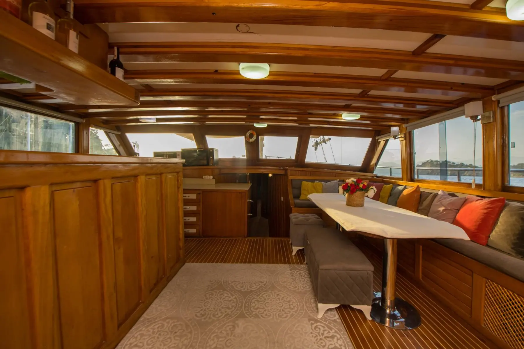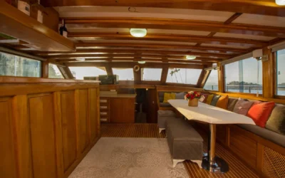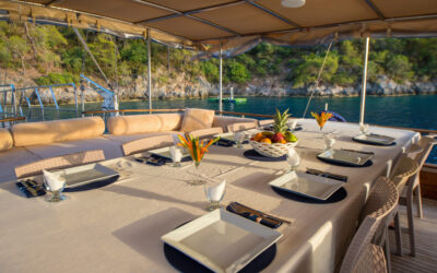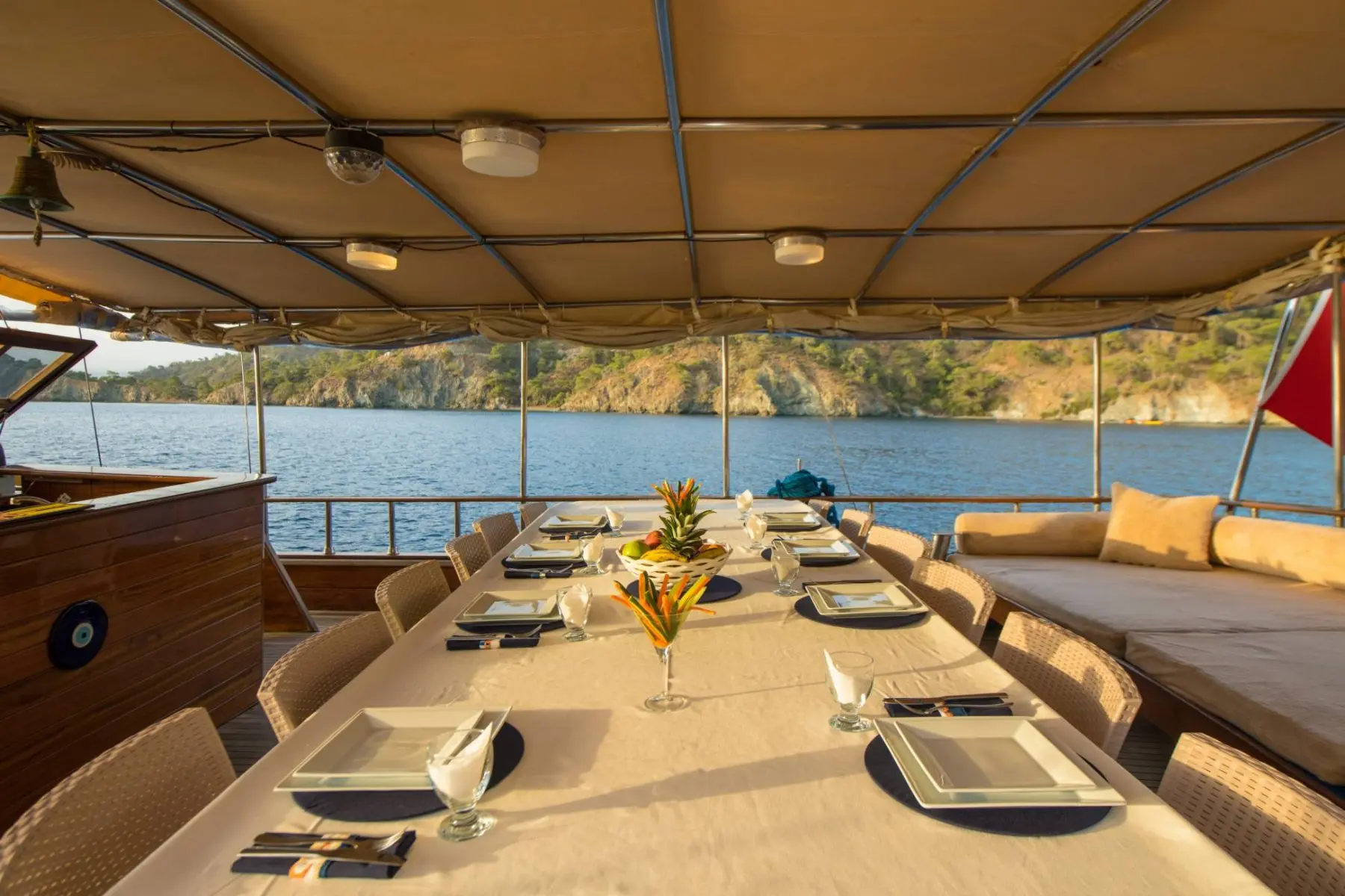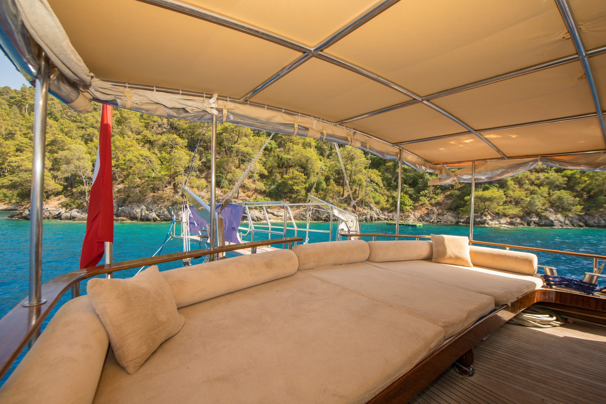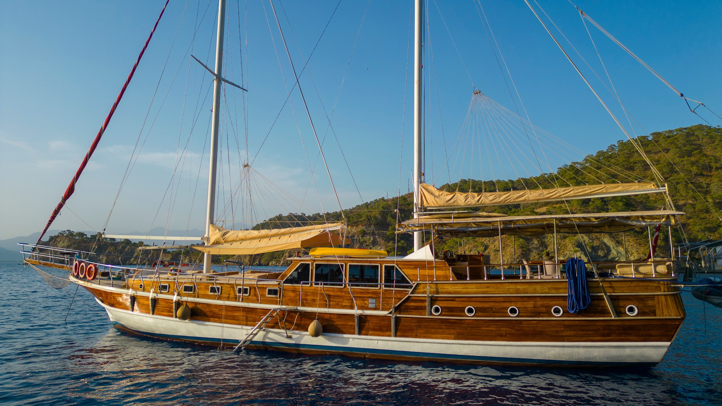 26 metre uzunluğunda ve 7 metre genişliğinde olan teknemiz, 8 double kabiniyle toplam 16 kişiye kadar misafir ağırlayabilmektedir. 2002 yılında inşa edilen ve 2020 yılında yenilenen Mozaik, modernize edilmiş kabinleri, geniş güvertesi ve yenilenen iç yaşam alanlarıyla misafirlerine konforlu ve keyifli bir mavi yolculuk deneyimi sunmaktadır.