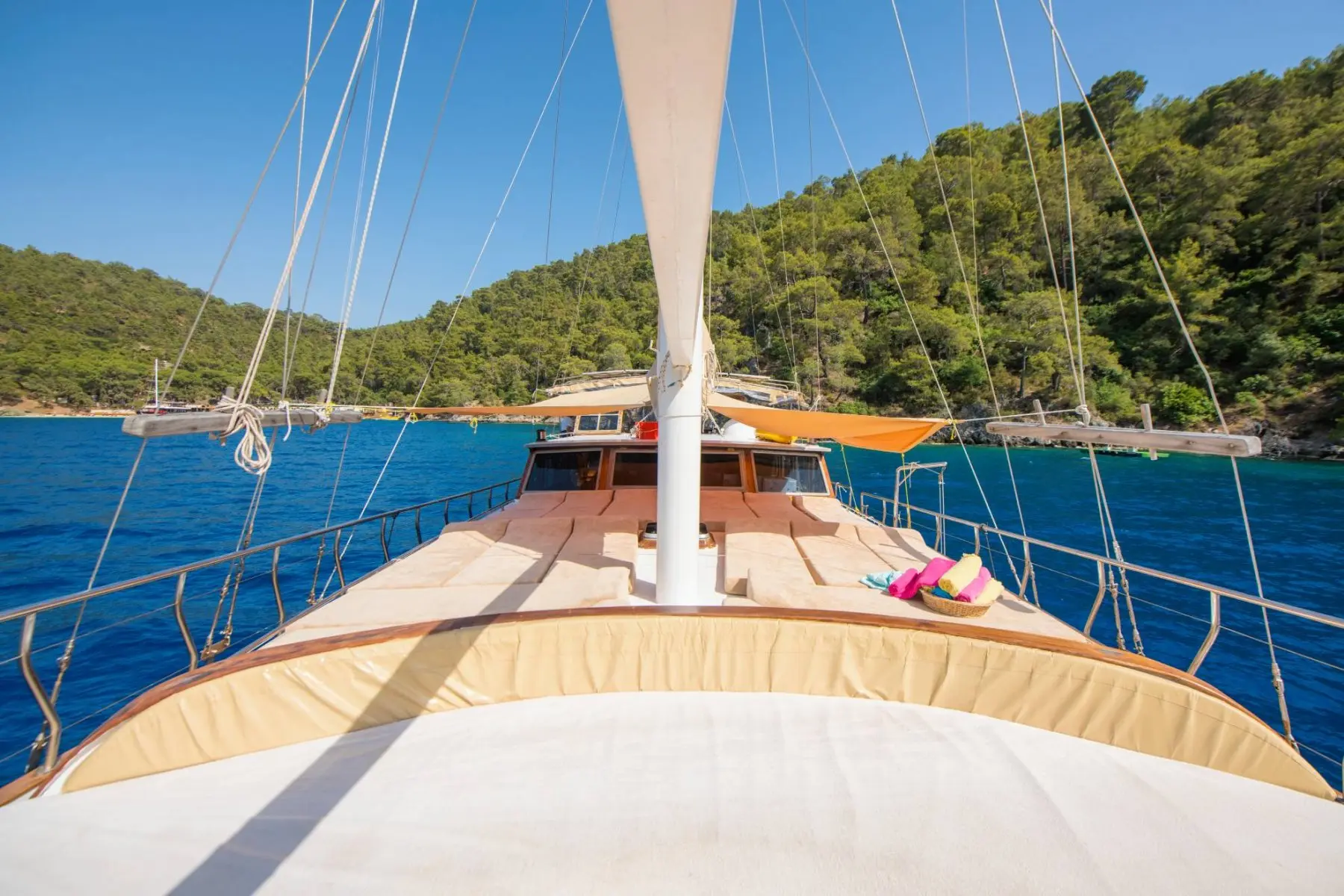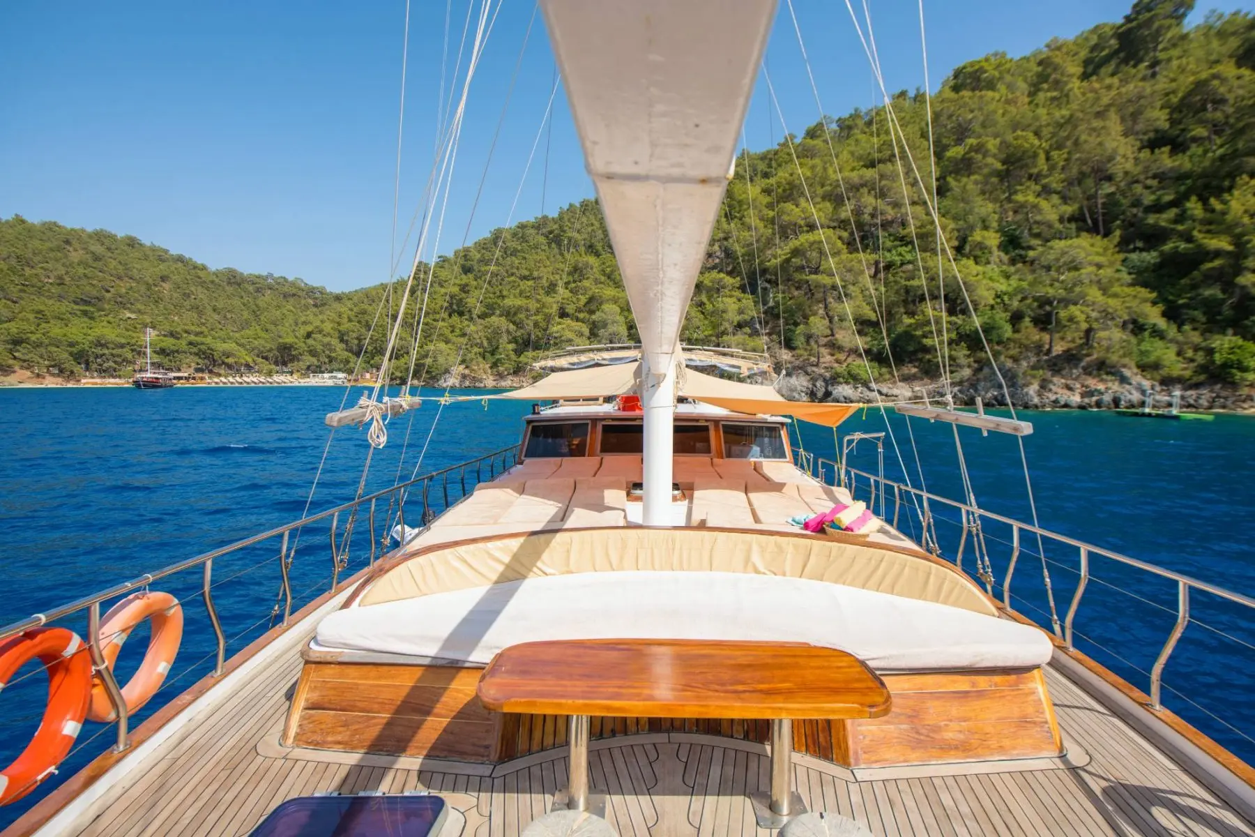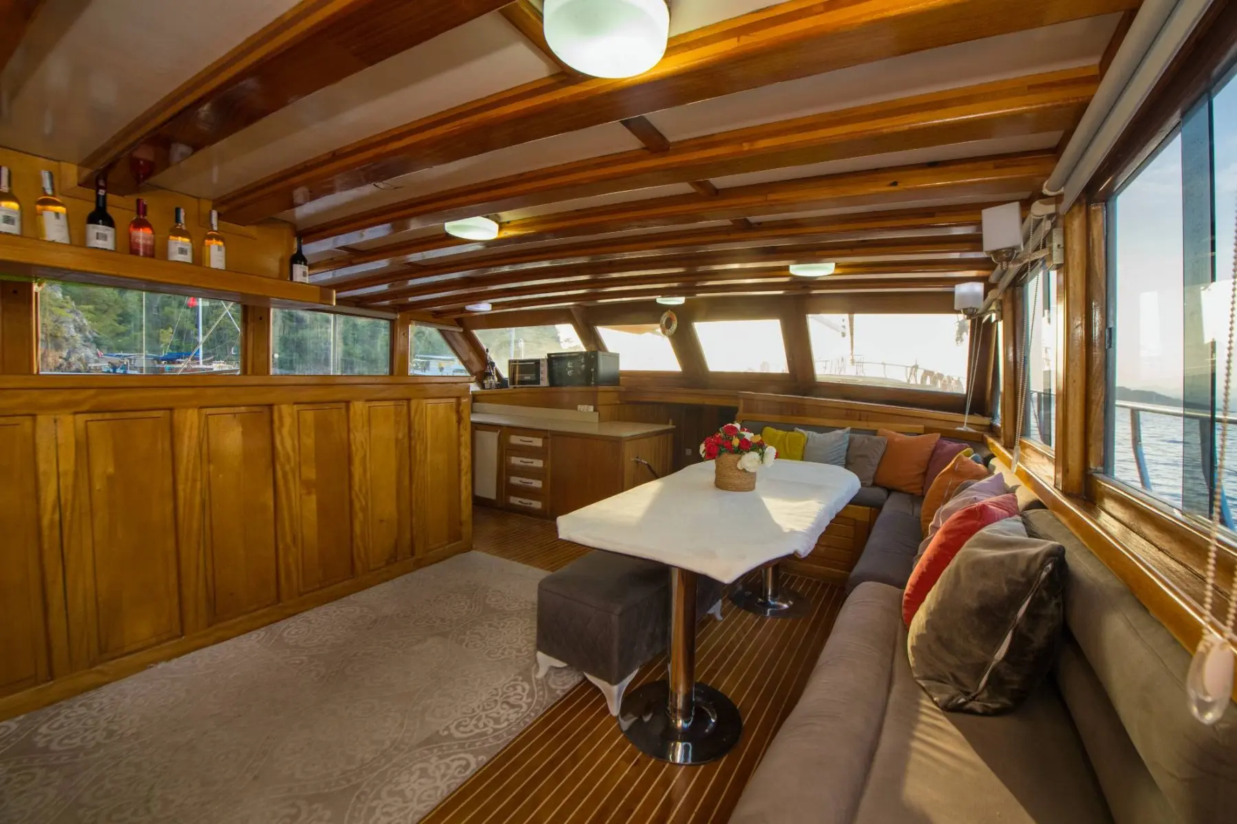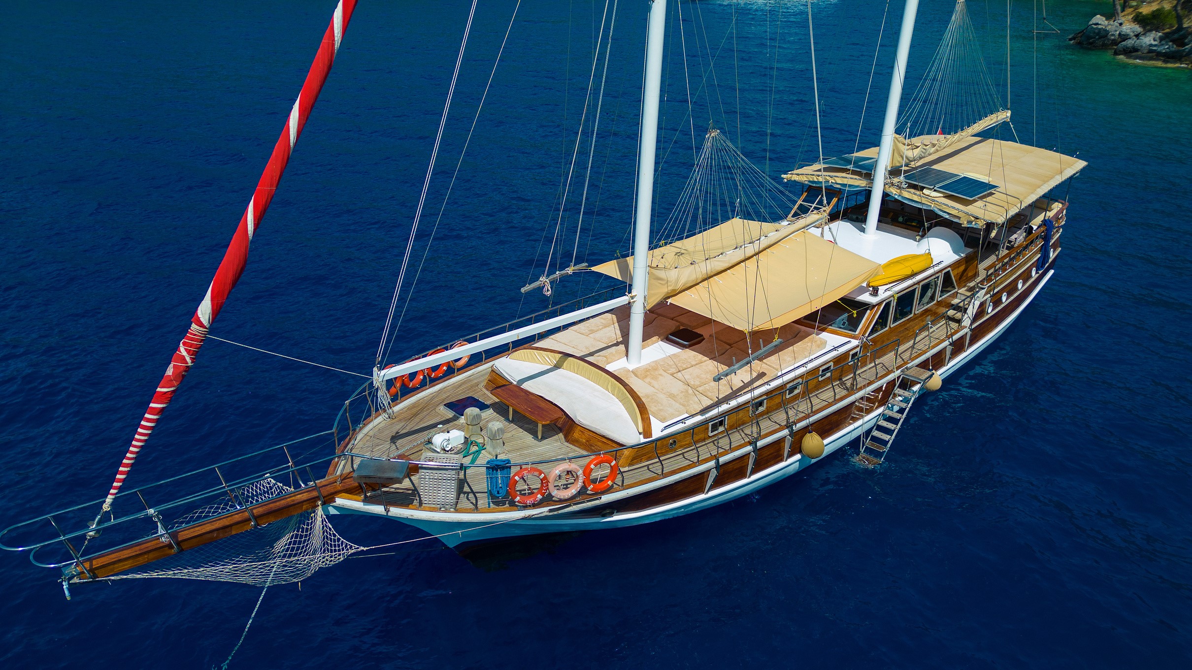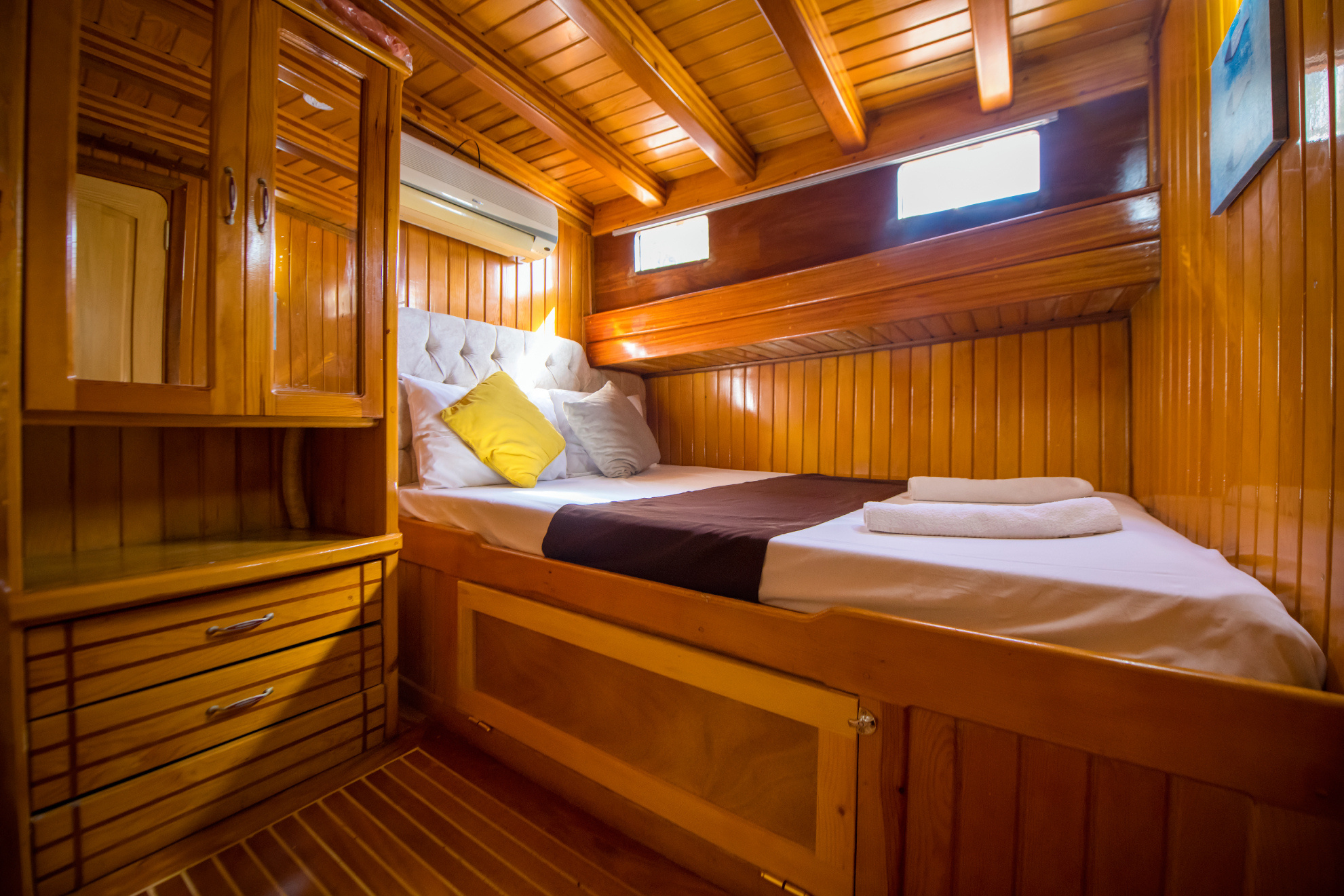 26 metre uzunluğunda ve 7 metre genişliğinde olan teknemiz, 8 double kabiniyle toplam 16 kişiye kadar misafir ağırlayabilmektedir. 2002 yılında inşa edilen ve 2020 yılında yenilenen Mozaik, modernize edilmiş kabinleri, geniş güvertesi ve yenilenen iç yaşam alanlarıyla misafirlerine konforlu ve keyifli bir mavi yolculuk deneyimi sunmaktadır.