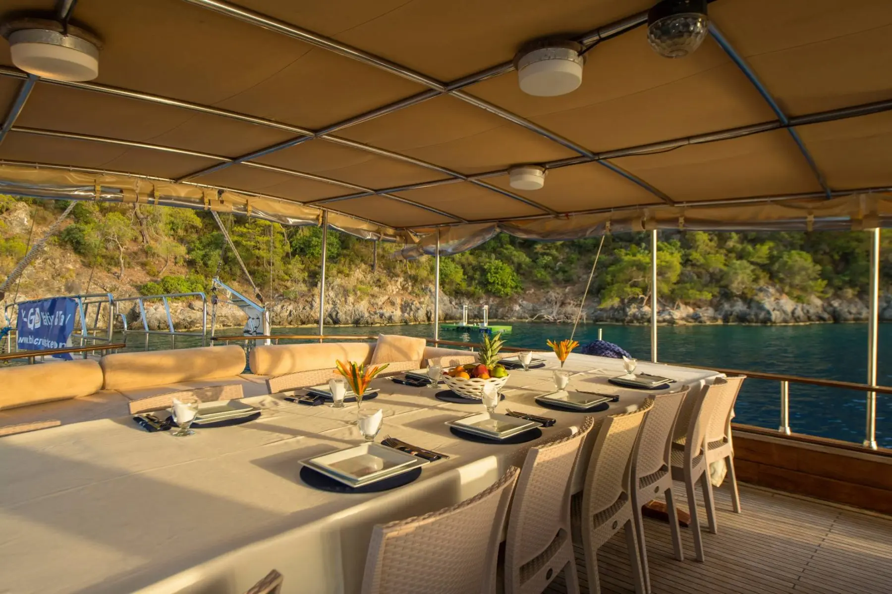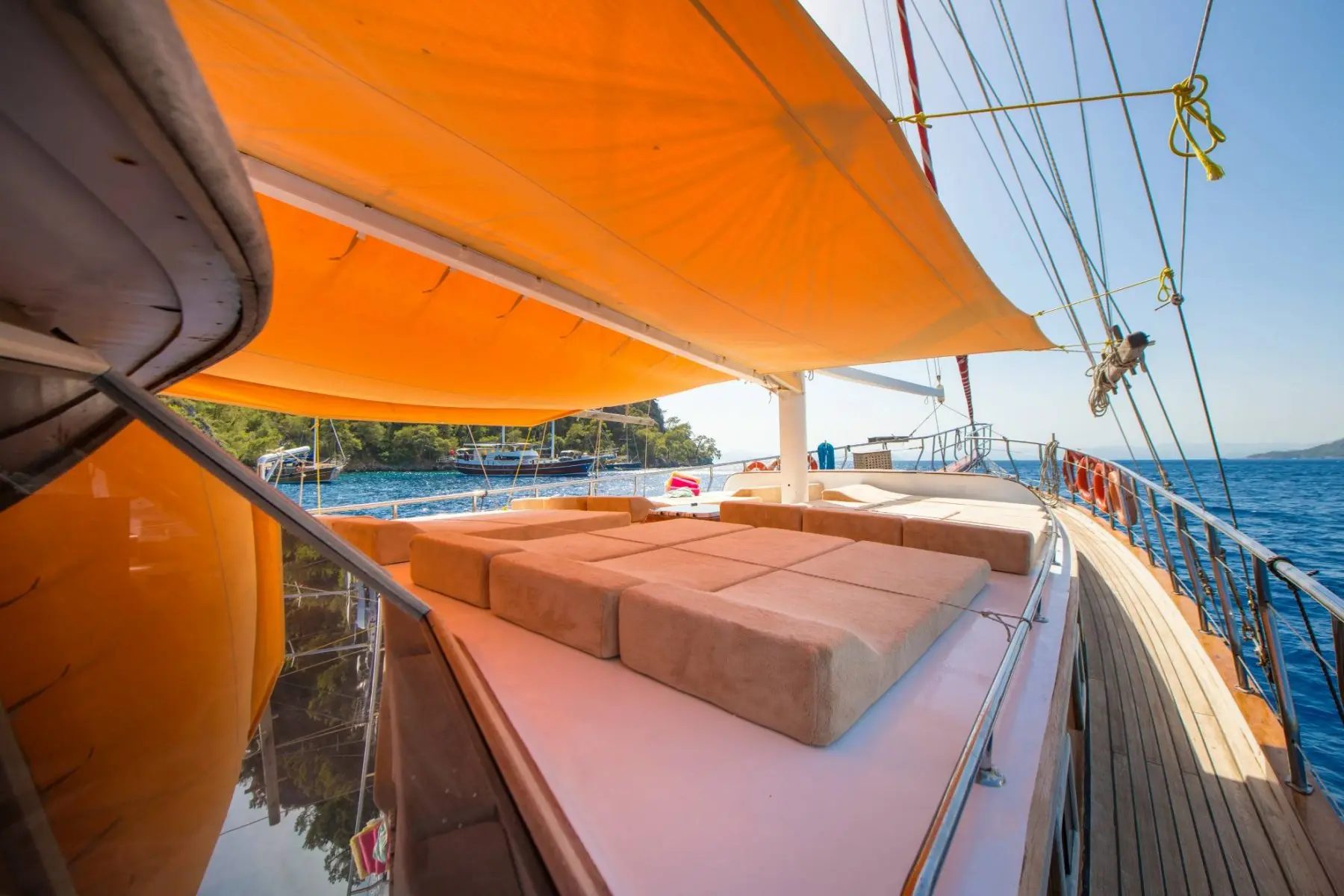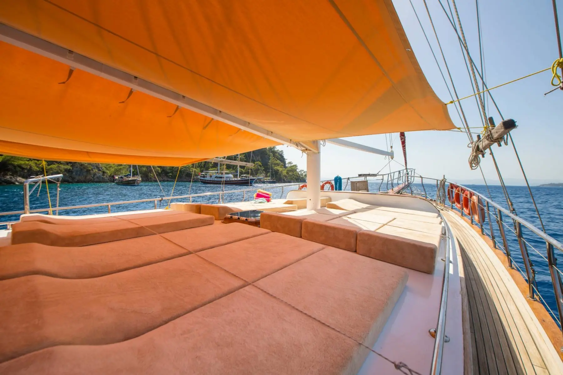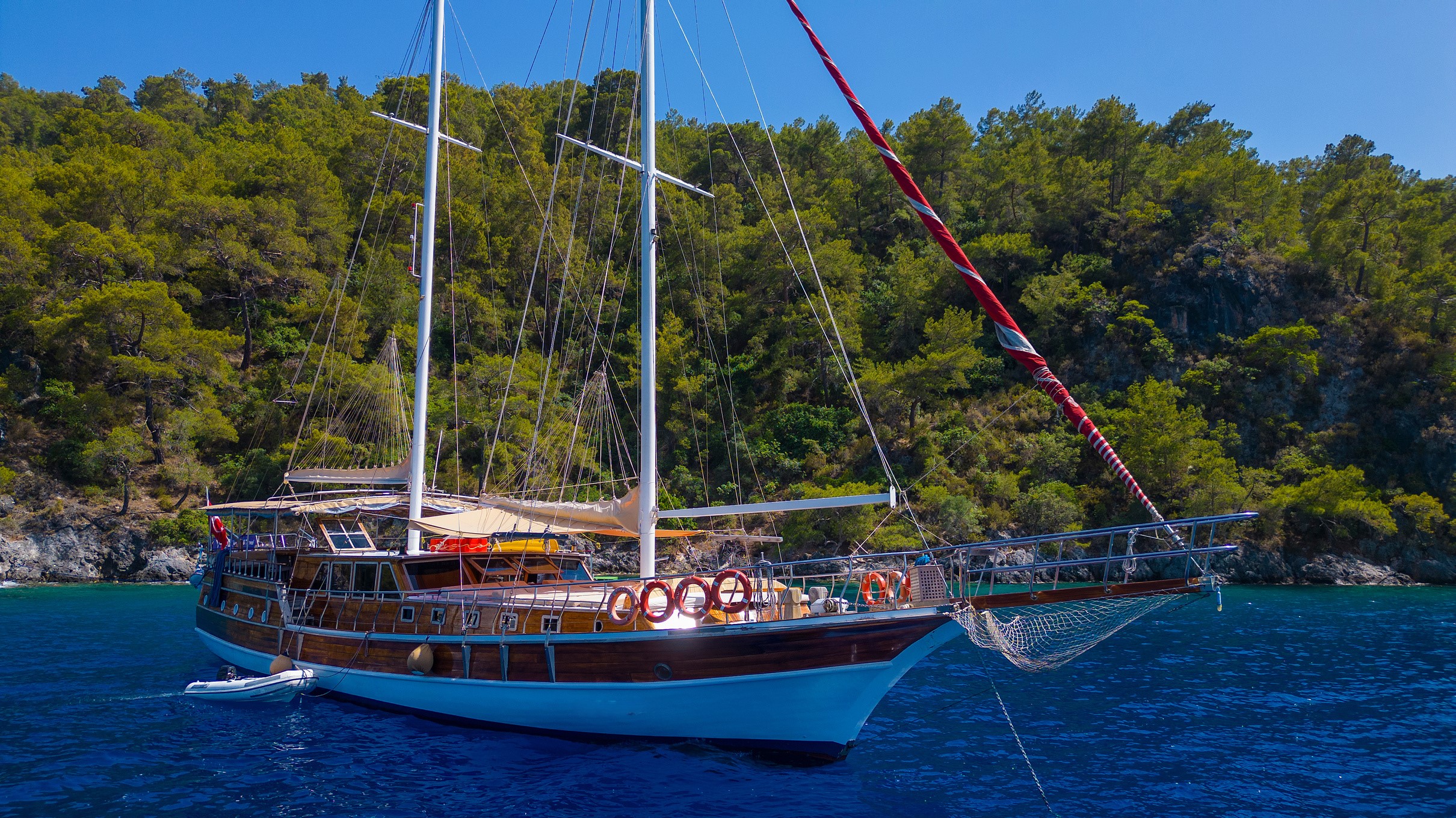 26 metre uzunluğunda ve 7 metre genişliğinde olan teknemiz, 8 double kabiniyle toplam 16 kişiye kadar misafir ağırlayabilmektedir. 2002 yılında inşa edilen ve 2020 yılında yenilenen Mozaik, modernize edilmiş kabinleri, geniş güvertesi ve yenilenen iç yaşam alanlarıyla misafirlerine konforlu ve keyifli bir mavi yolculuk deneyimi sunmaktadır.