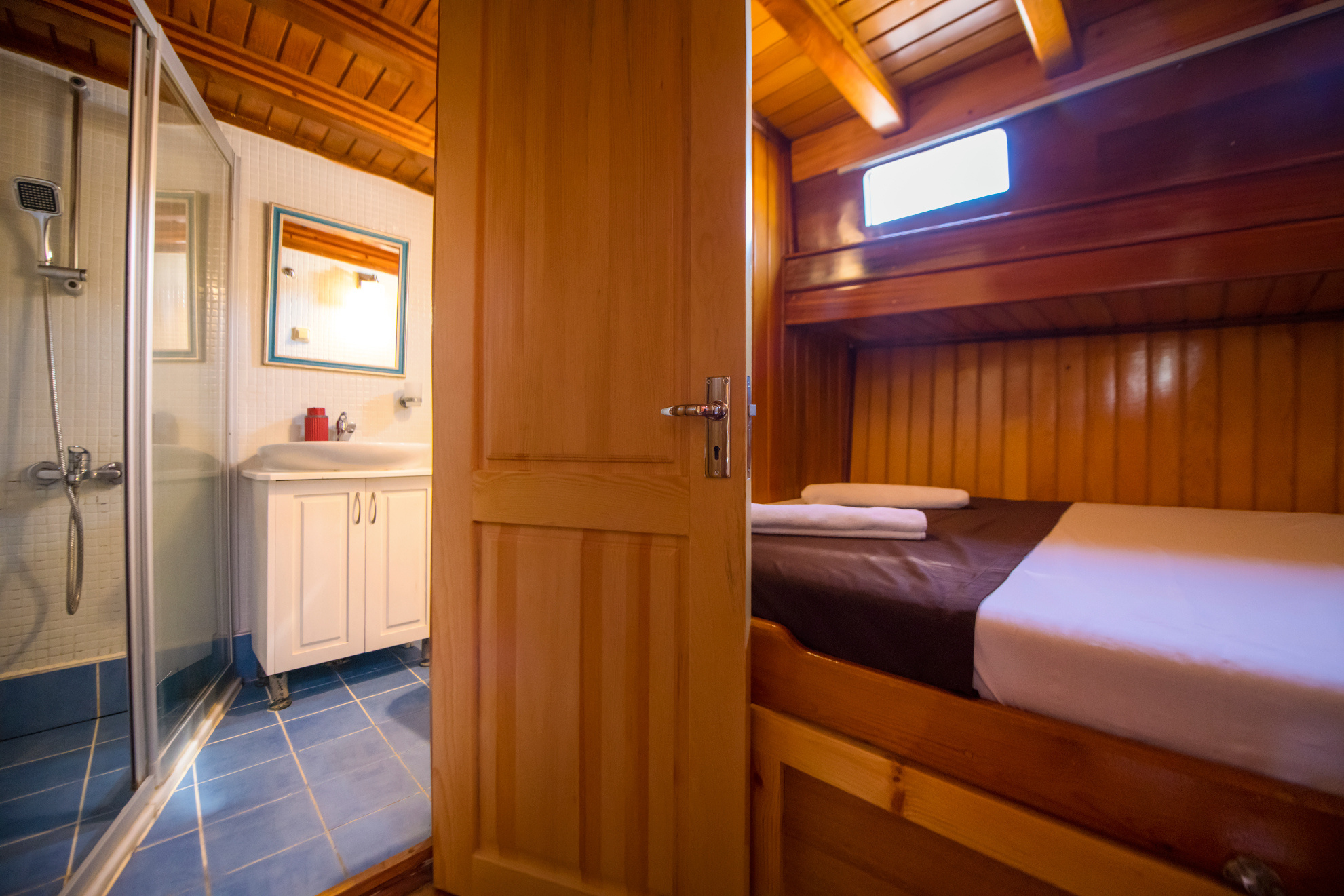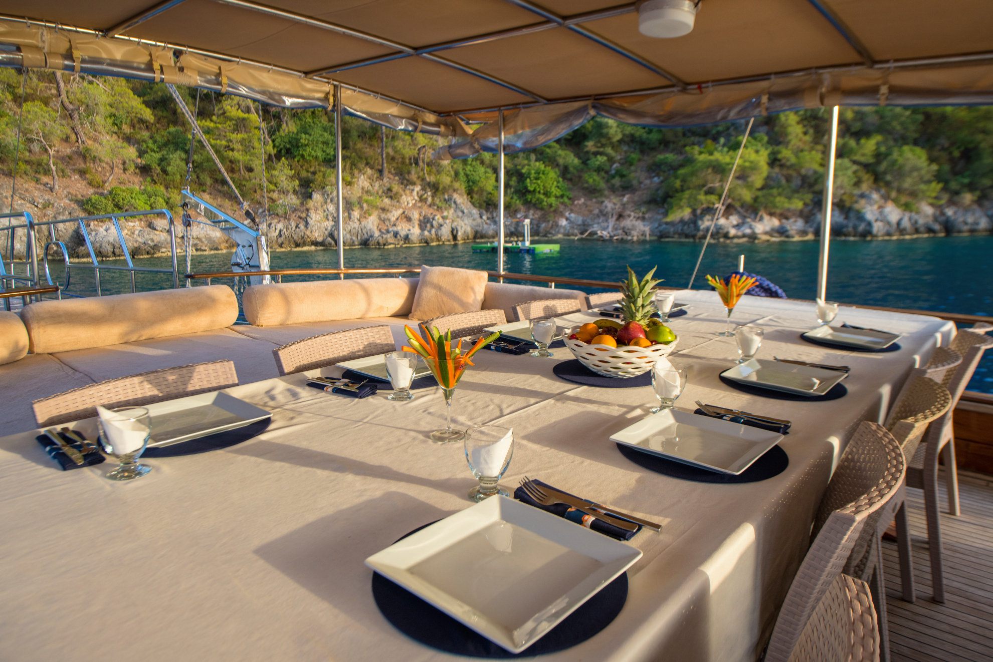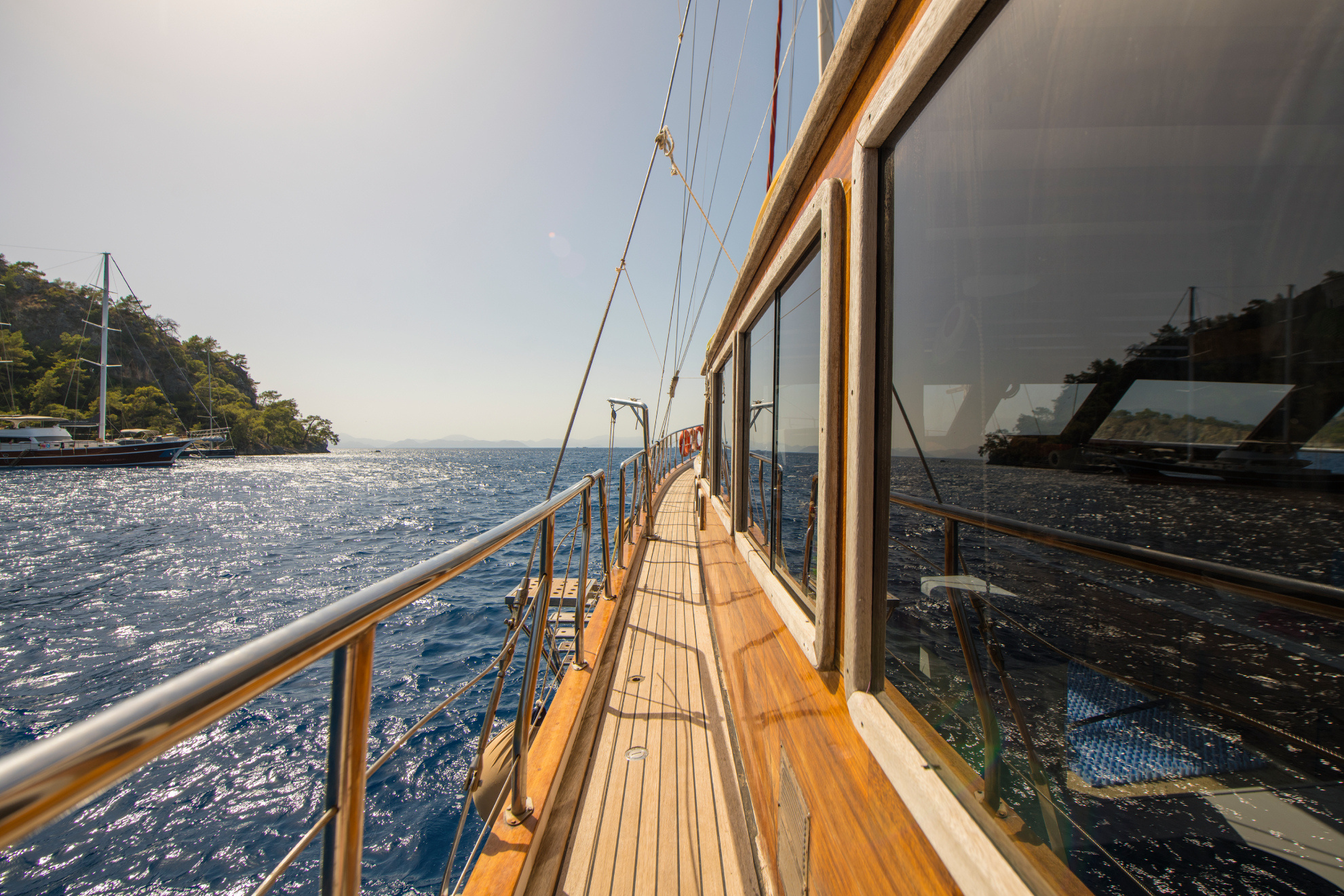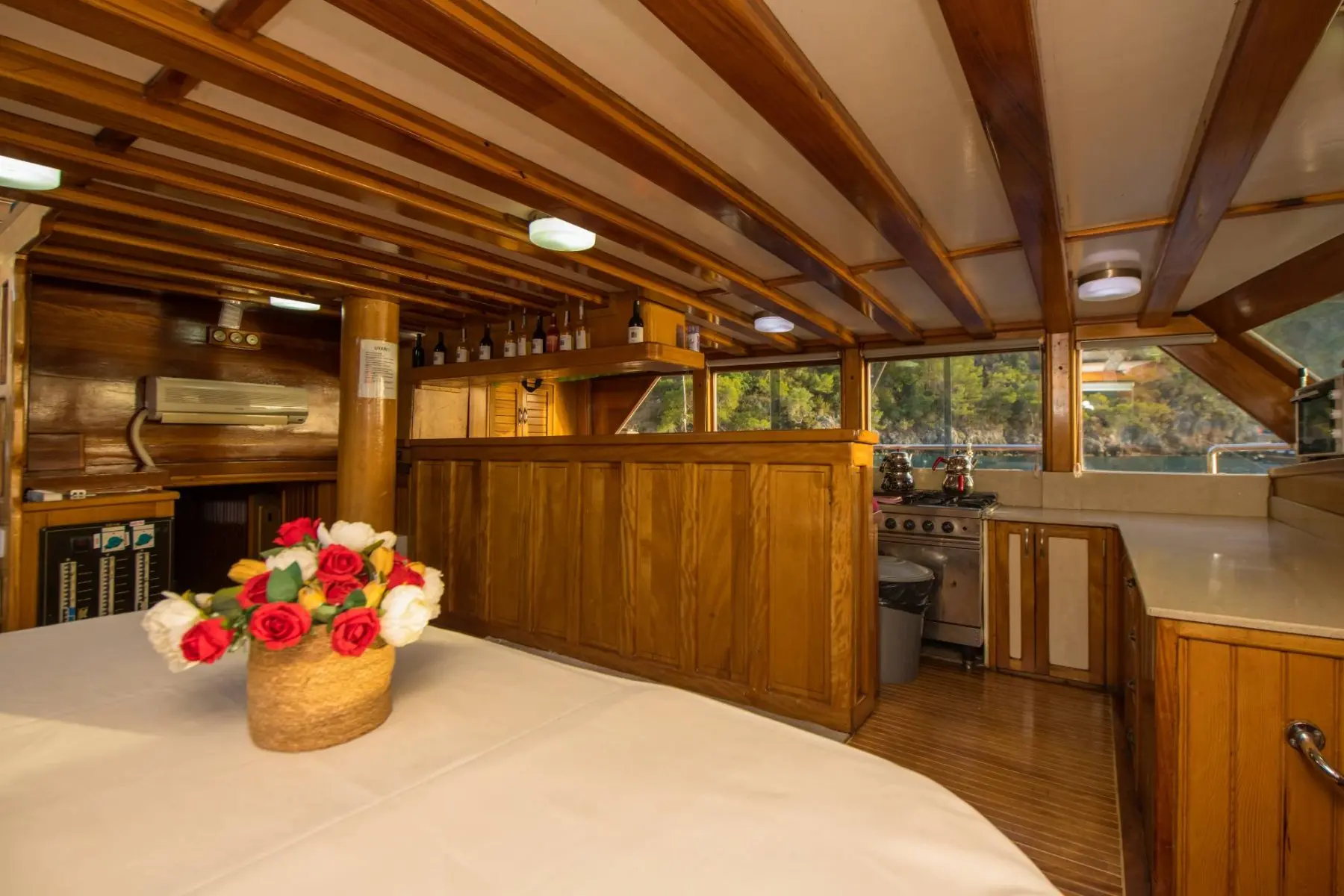 26 metre uzunluğunda ve 7 metre genişliğinde olan teknemiz, 8 double kabiniyle toplam 16 kişiye kadar misafir ağırlayabilmektedir. 2002 yılında inşa edilen ve 2020 yılında yenilenen Mozaik, modernize edilmiş kabinleri, geniş güvertesi ve yenilenen iç yaşam alanlarıyla misafirlerine konforlu ve keyifli bir mavi yolculuk deneyimi sunmaktadır.