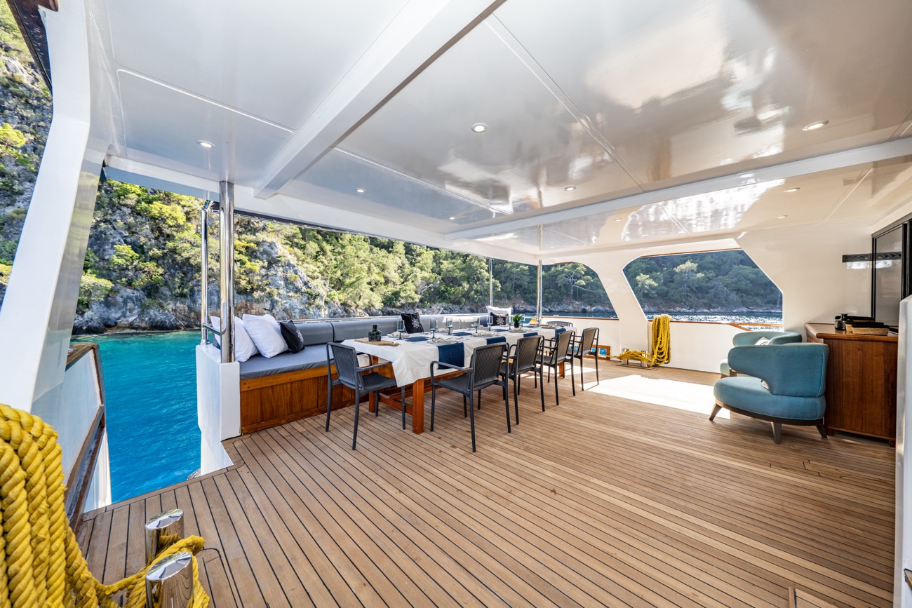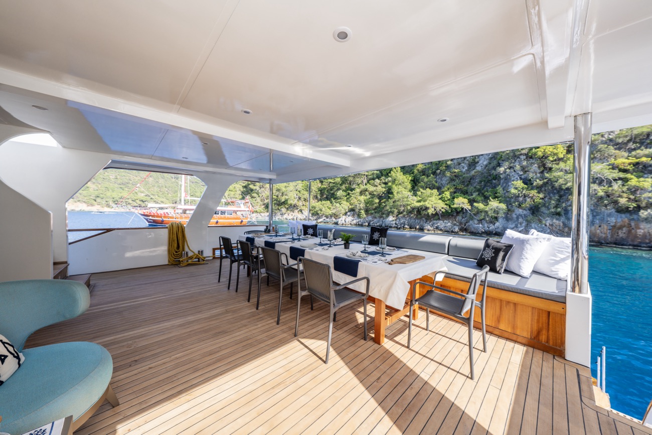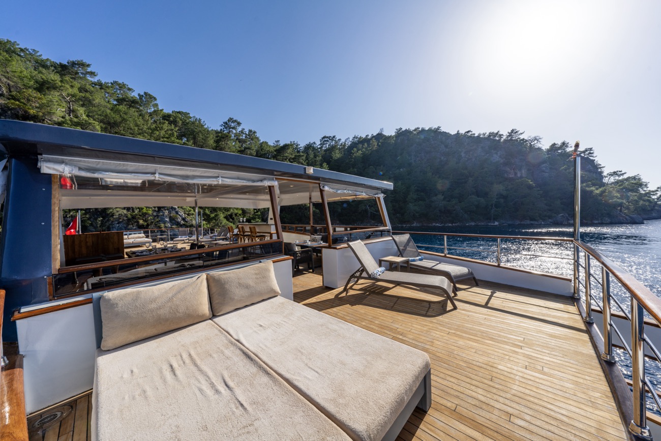 28 metre uzunluğunda ve 7,20 metre genişliğinde olan Nayk 3, 2023 yılında inşa edilerek mavi yolculuk hizmetine başlamıştır. Her detayı misafirlerin rahatlığı düşünülerek tasarlanan teknemiz, son derece ferah ve konforlu yaşam alanlarıyla öne çıkar.