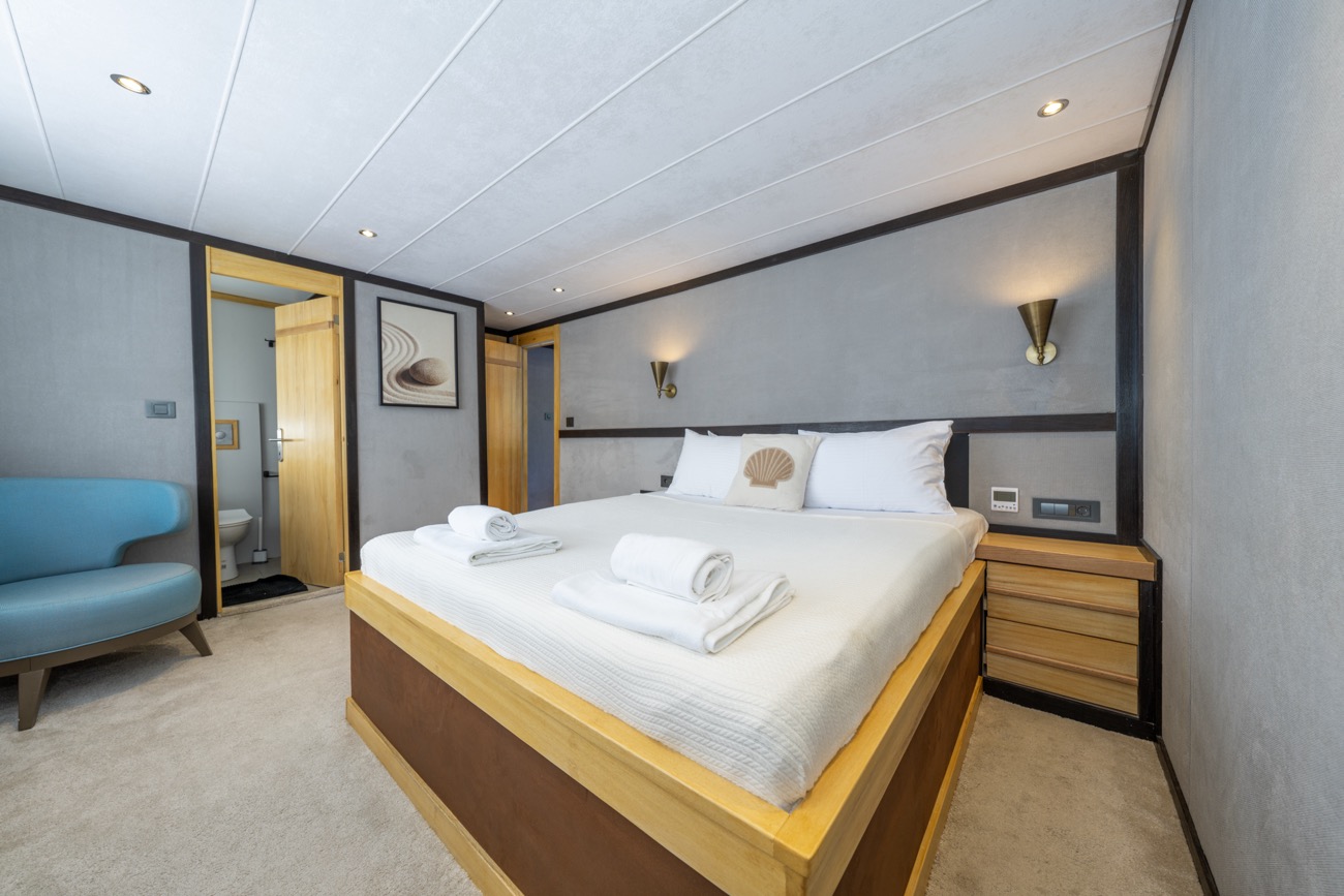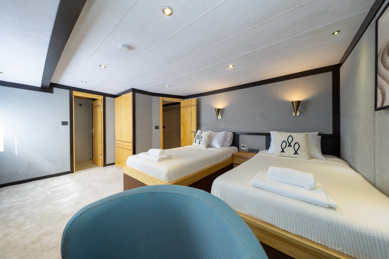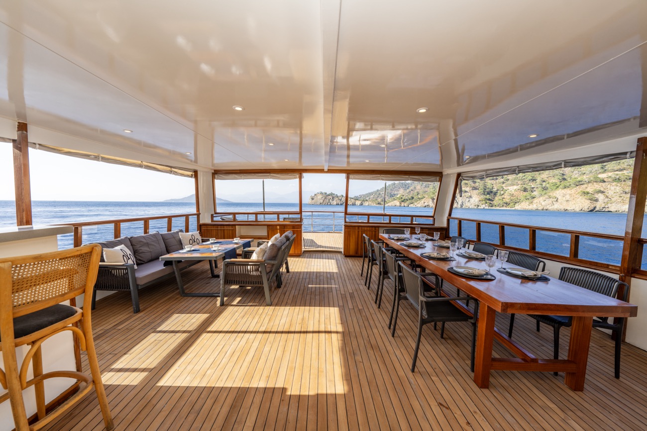 28 metre uzunluğunda ve 7,20 metre genişliğinde olan Nayk 3, 2023 yılında inşa edilerek mavi yolculuk hizmetine başlamıştır. Her detayı misafirlerin rahatlığı düşünülerek tasarlanan teknemiz, son derece ferah ve konforlu yaşam alanlarıyla öne çıkar.