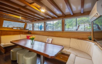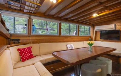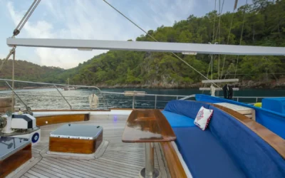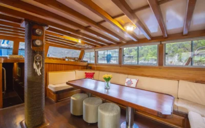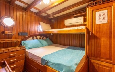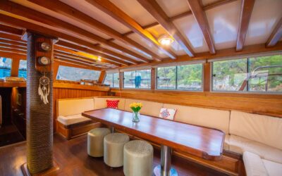 Fethiye Limanı çıkışlı mavi yolculuk tutkunlarına hizmet veren 28 metre uzunluğundaki guletimiz, 2018 yılındaki kapsamlı yenileme çalışmalarıyla bugünkü modern, ferah ve şık görünümüne kavuşmuştur. Lüks tekne kiralama kategorisinde yer alan guletimiz; 6 double ve 2 twin kabin olmak üzere toplam 16 kişilik konaklama kapasitesi sunmaktadır.
