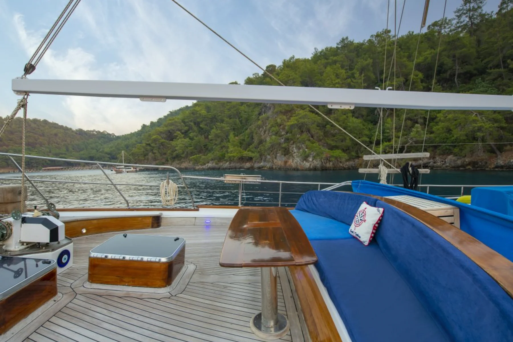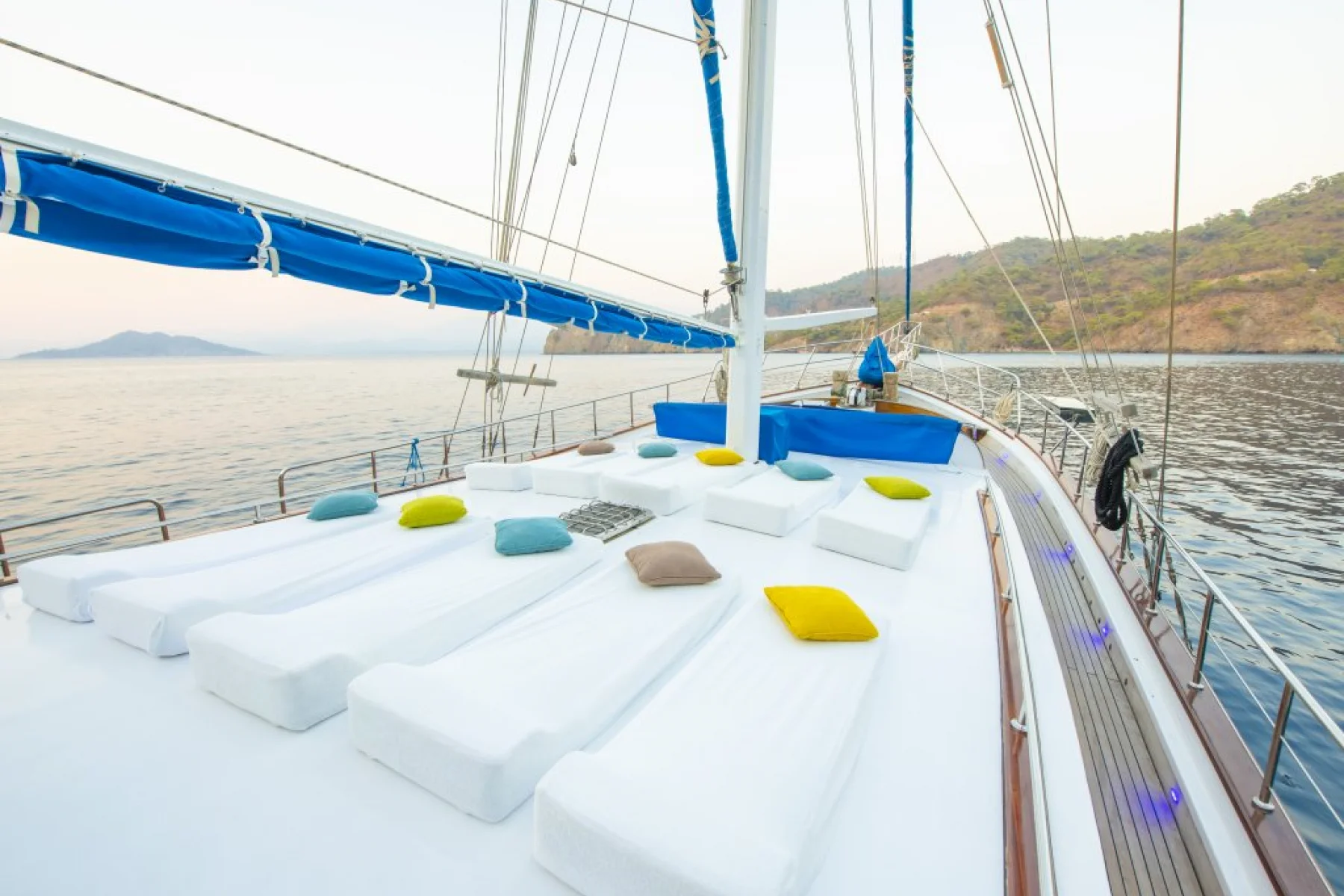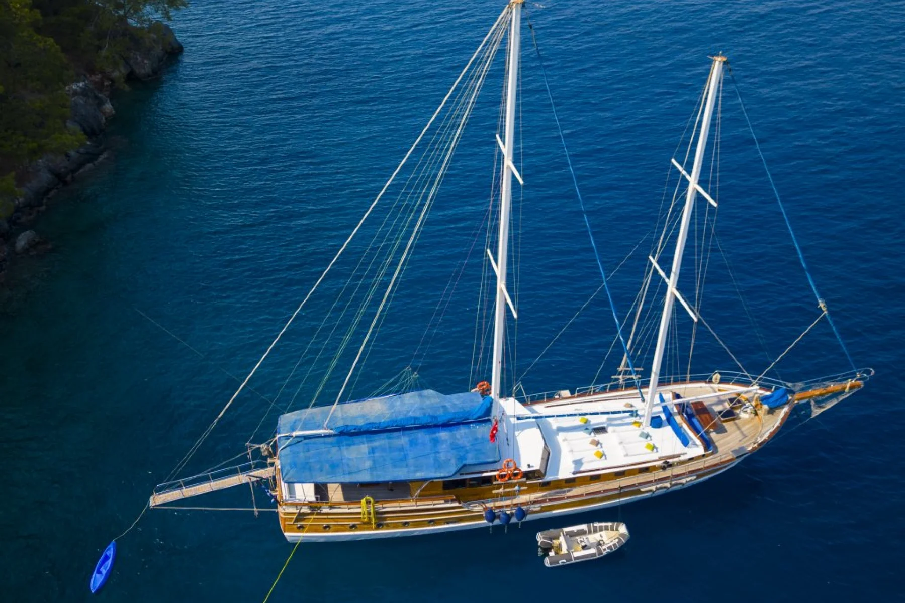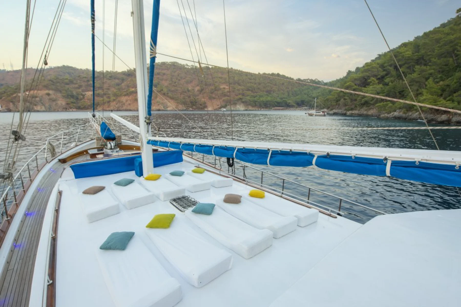 Fethiye Limanı çıkışlı mavi yolculuk tutkunlarına hizmet veren 28 metre uzunluğundaki guletimiz, 2018 yılındaki kapsamlı yenileme çalışmalarıyla bugünkü modern, ferah ve şık görünümüne kavuşmuştur. Lüks tekne kiralama kategorisinde yer alan guletimiz; 6 double ve 2 twin kabin olmak üzere toplam 16 kişilik konaklama kapasitesi sunmaktadır.