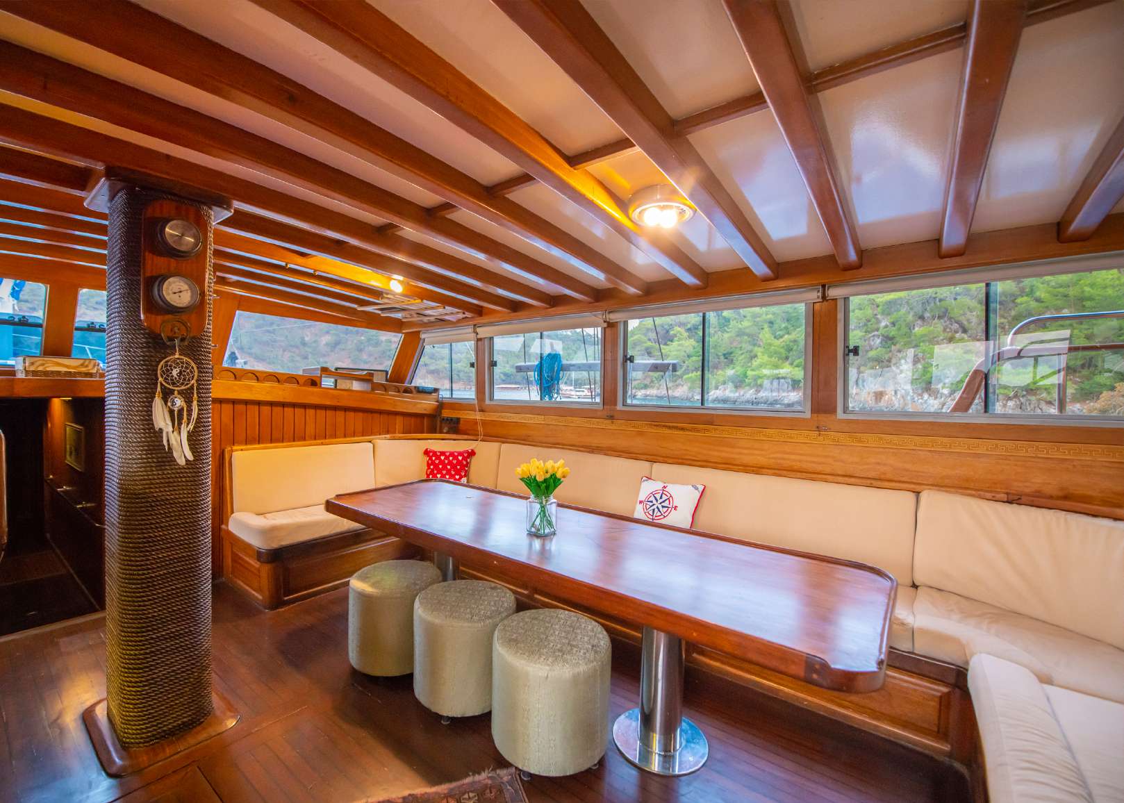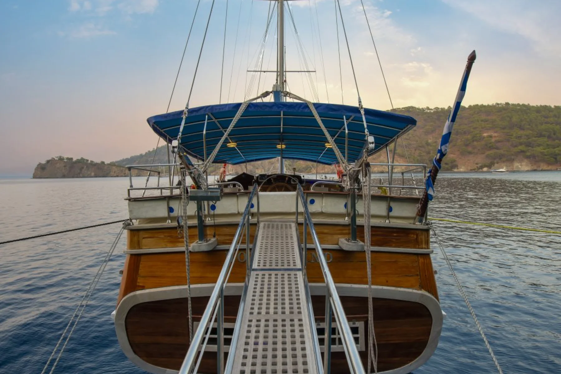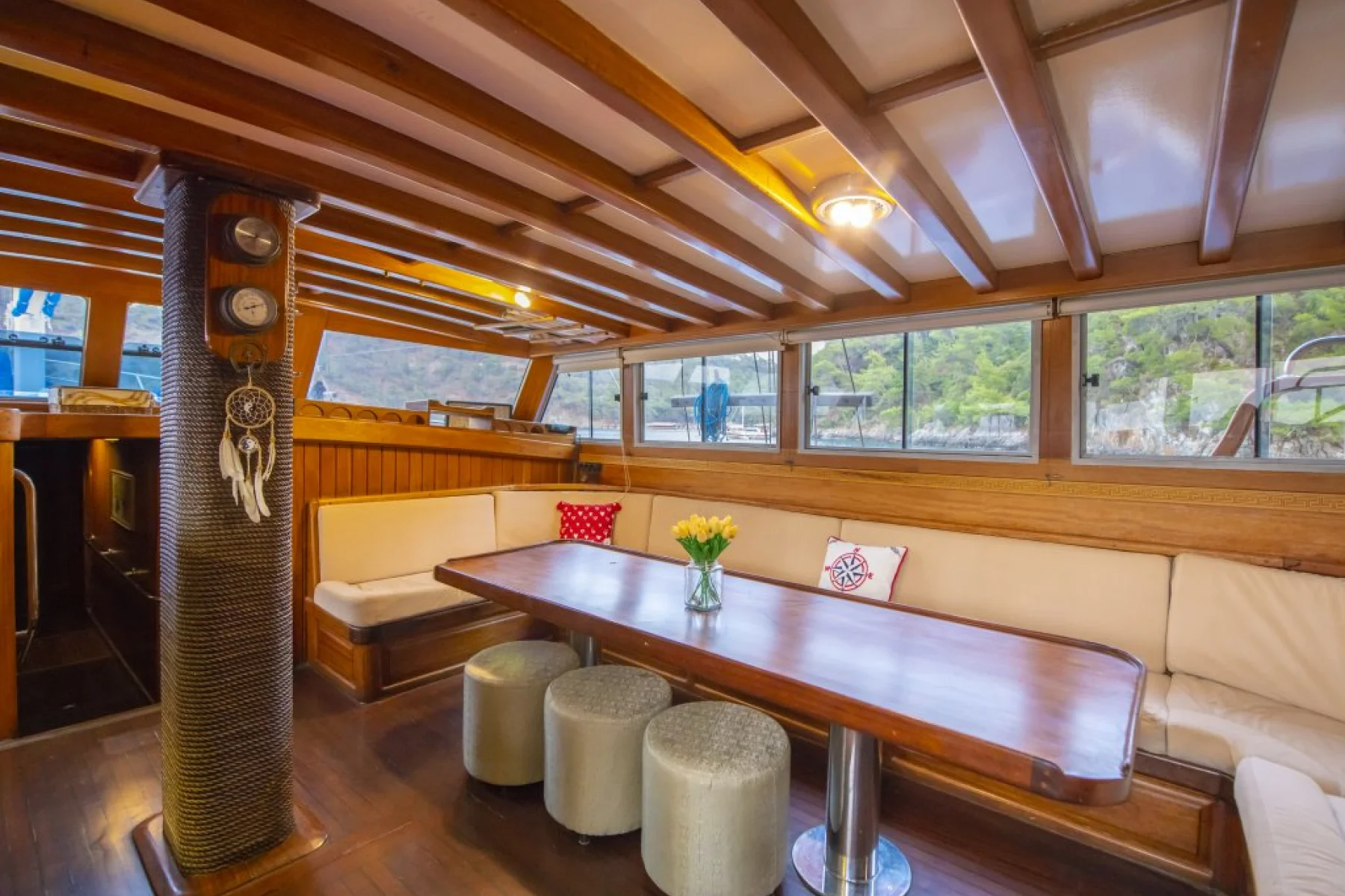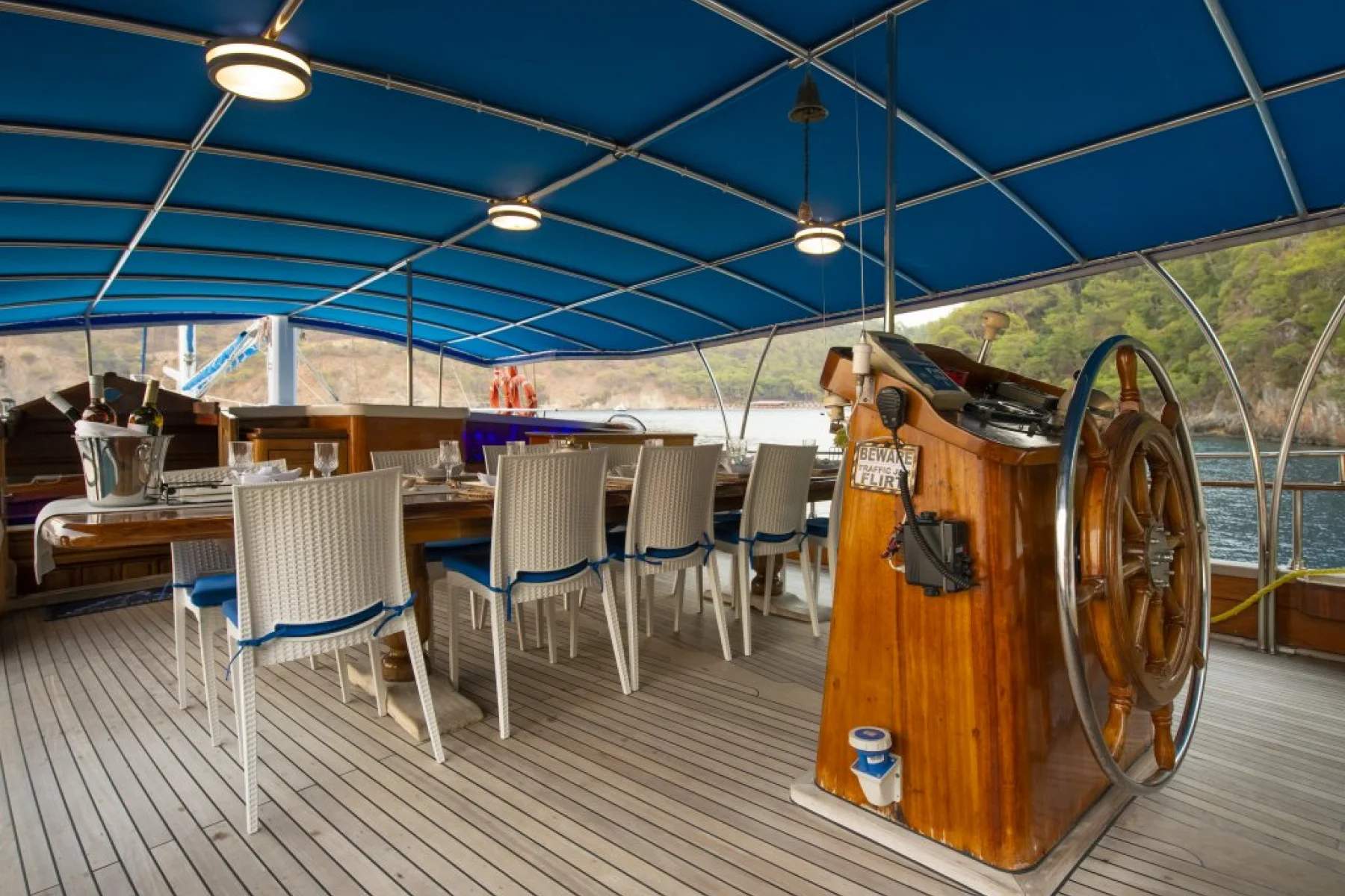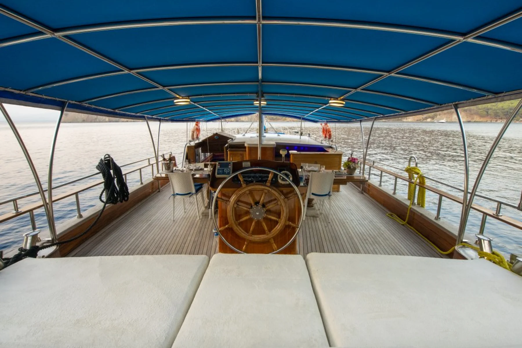 Fethiye Limanı çıkışlı mavi yolculuk tutkunlarına hizmet veren 28 metre uzunluğundaki guletimiz, 2018 yılındaki kapsamlı yenileme çalışmalarıyla bugünkü modern, ferah ve şık görünümüne kavuşmuştur. Lüks tekne kiralama kategorisinde yer alan guletimiz; 6 double ve 2 twin kabin olmak üzere toplam 16 kişilik konaklama kapasitesi sunmaktadır.