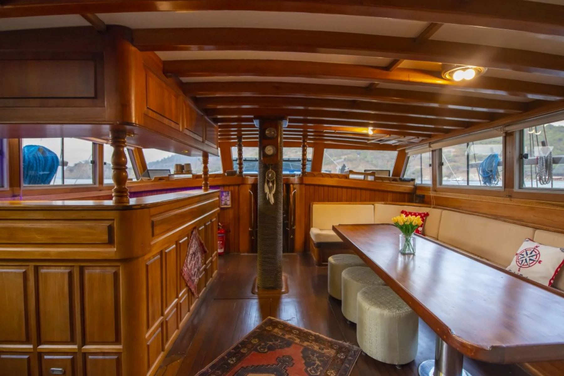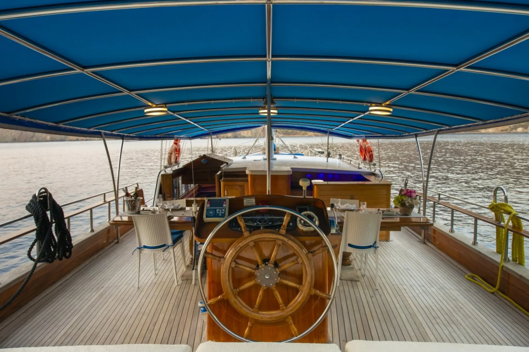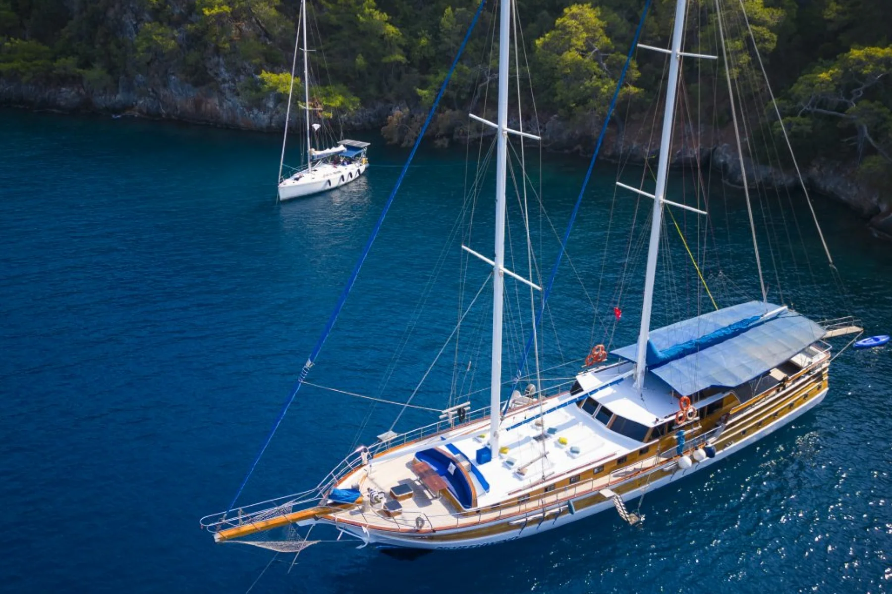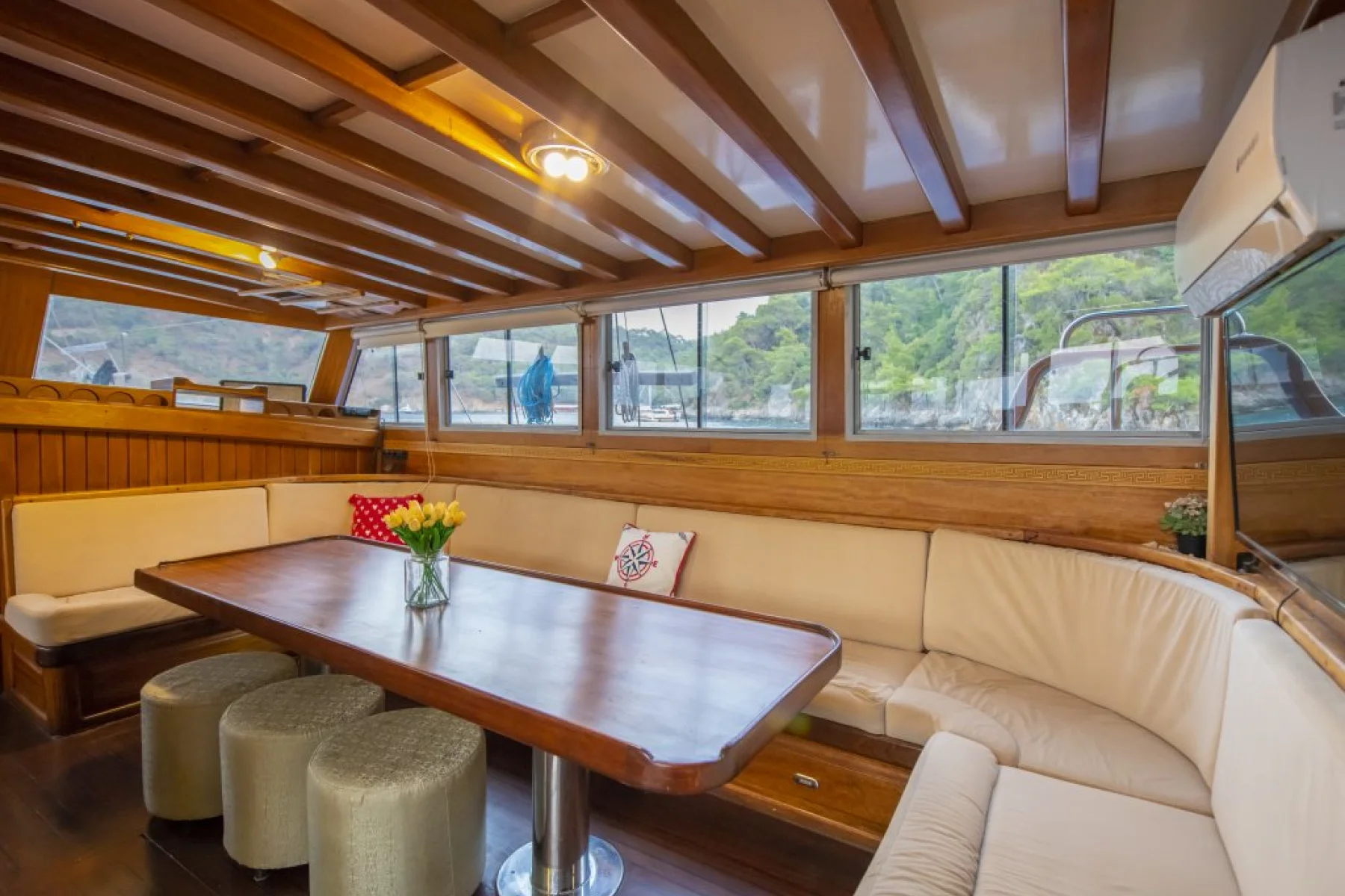 Fethiye Limanı çıkışlı mavi yolculuk tutkunlarına hizmet veren 28 metre uzunluğundaki guletimiz, 2018 yılındaki kapsamlı yenileme çalışmalarıyla bugünkü modern, ferah ve şık görünümüne kavuşmuştur. Lüks tekne kiralama kategorisinde yer alan guletimiz; 6 double ve 2 twin kabin olmak üzere toplam 16 kişilik konaklama kapasitesi sunmaktadır.