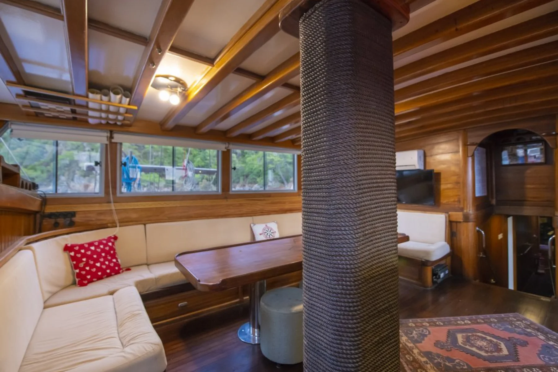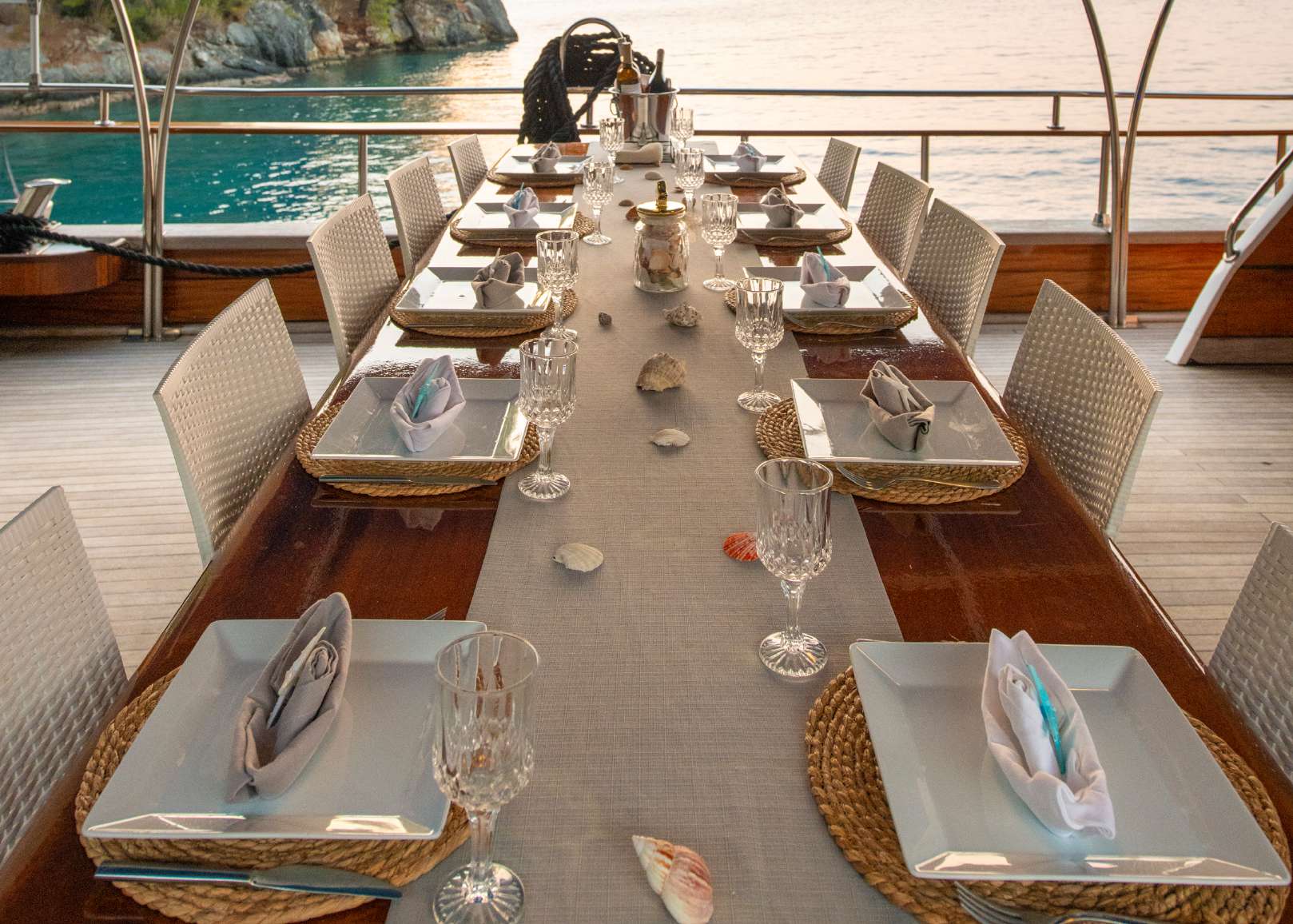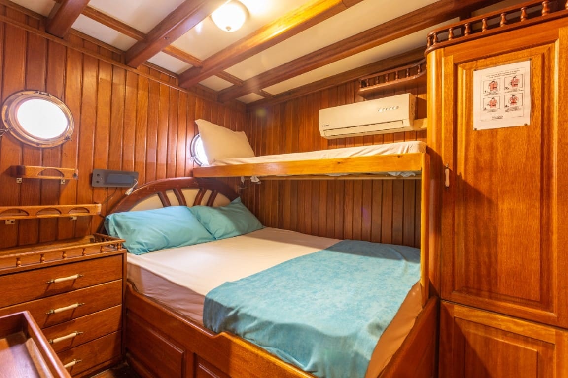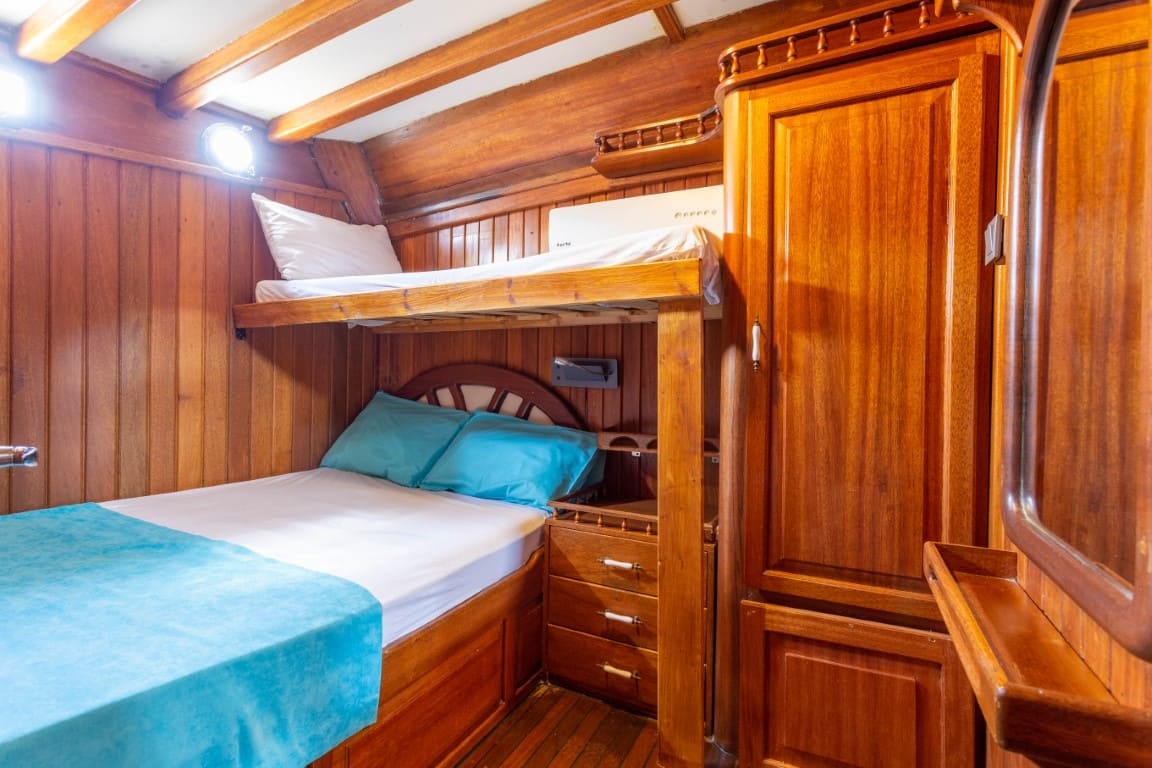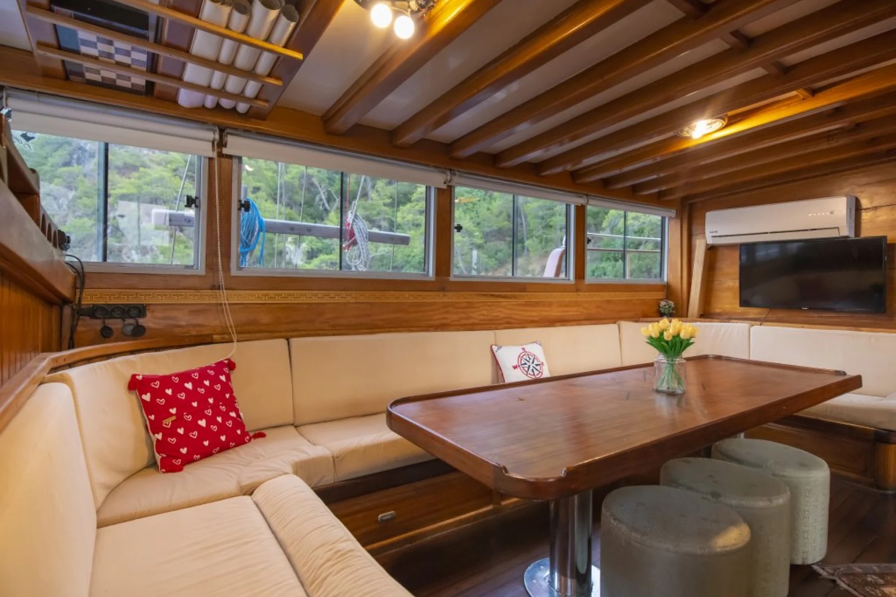 Fethiye Limanı çıkışlı mavi yolculuk tutkunlarına hizmet veren 28 metre uzunluğundaki guletimiz, 2018 yılındaki kapsamlı yenileme çalışmalarıyla bugünkü modern, ferah ve şık görünümüne kavuşmuştur. Lüks tekne kiralama kategorisinde yer alan guletimiz; 6 double ve 2 twin kabin olmak üzere toplam 16 kişilik konaklama kapasitesi sunmaktadır.