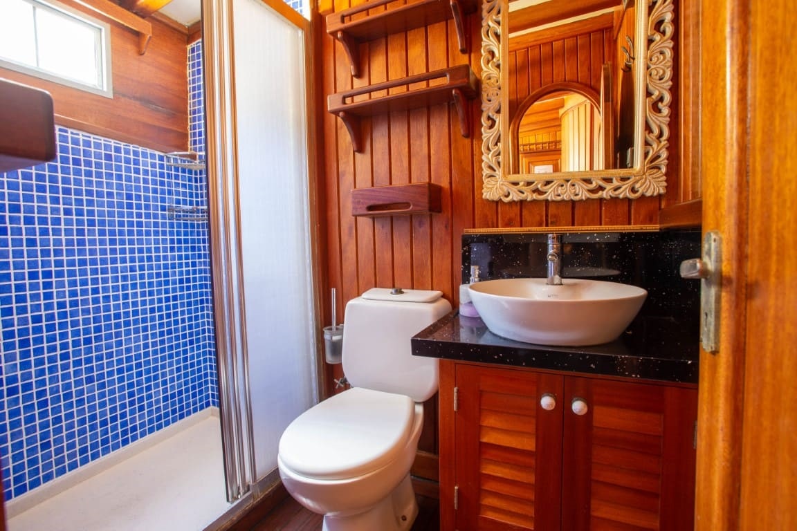 Her kabinde duşakabin, ev tipi tuvalet, klima ve saç kurutma makinesi bulunmakta olup, misafirlerimize konforlu bir tatil deneyimi sağlamak için tüm detaylar özenle düşünülmüştür.