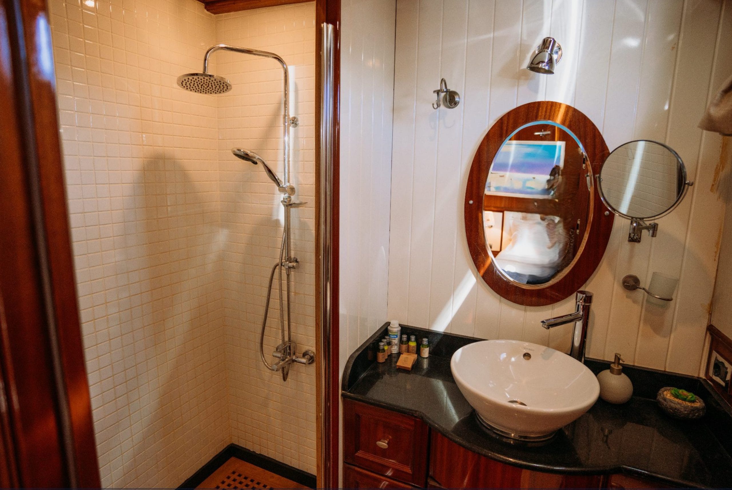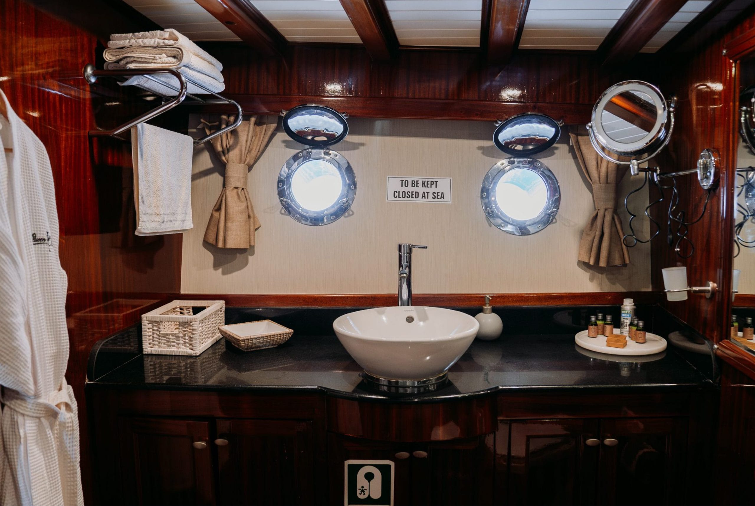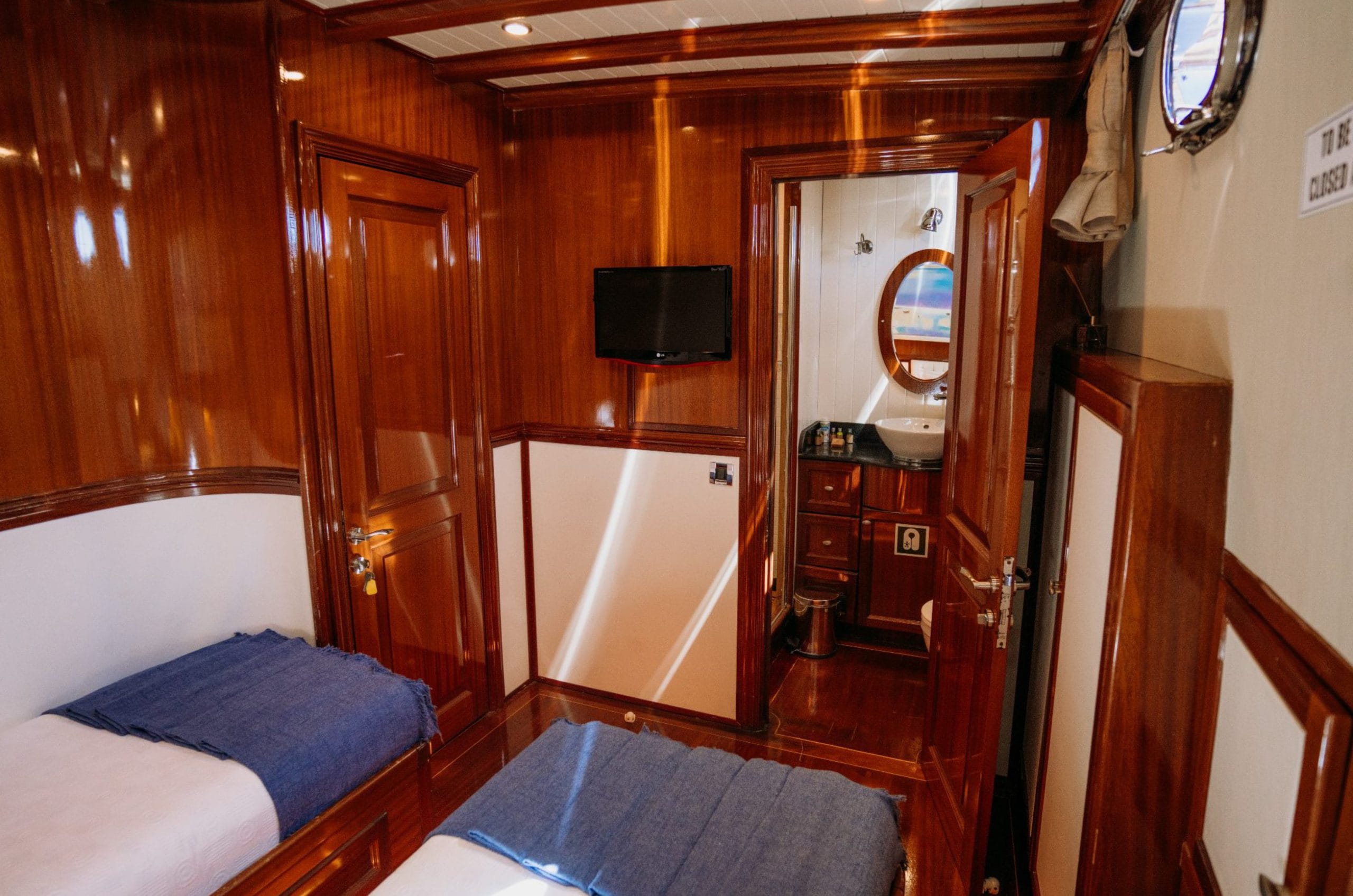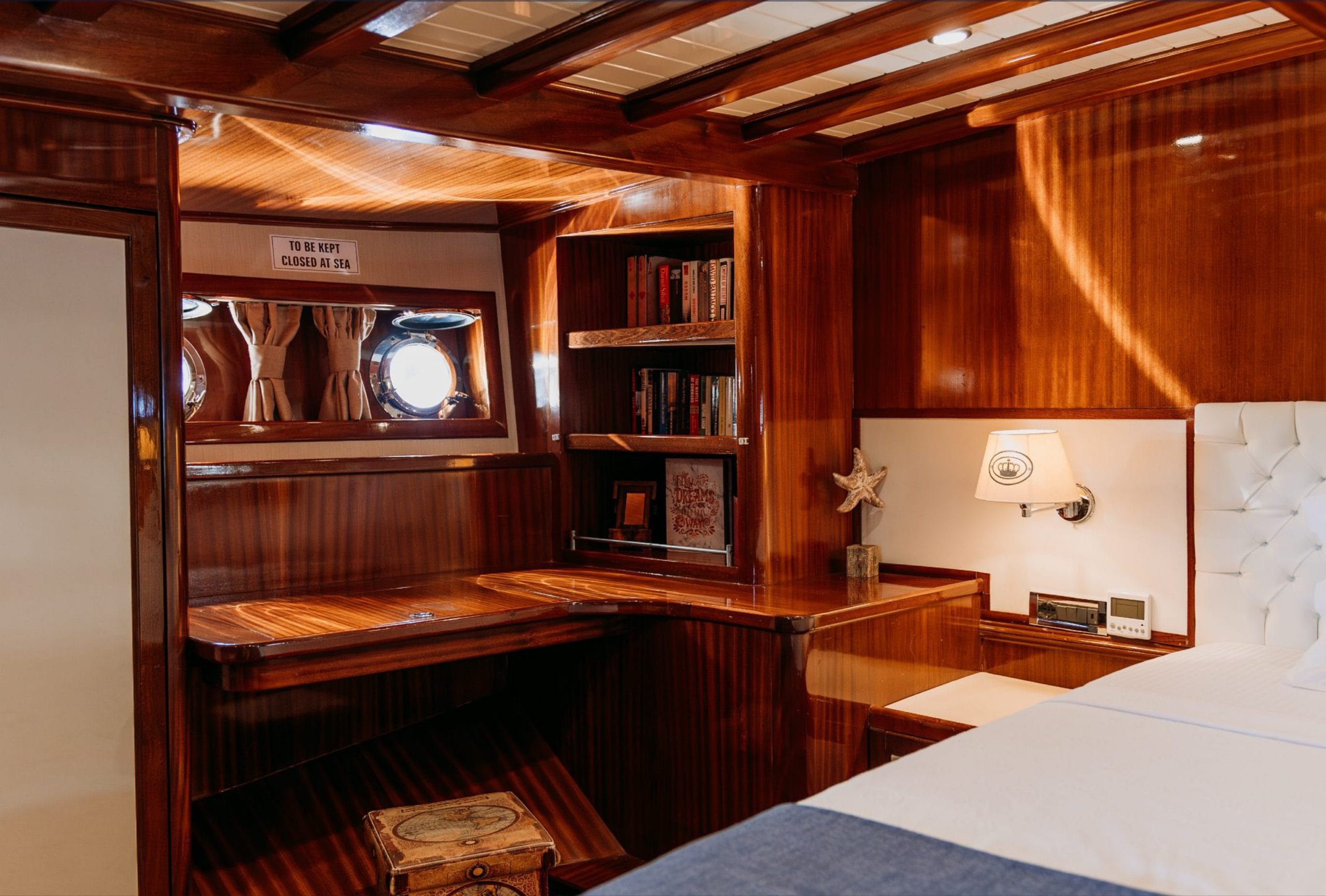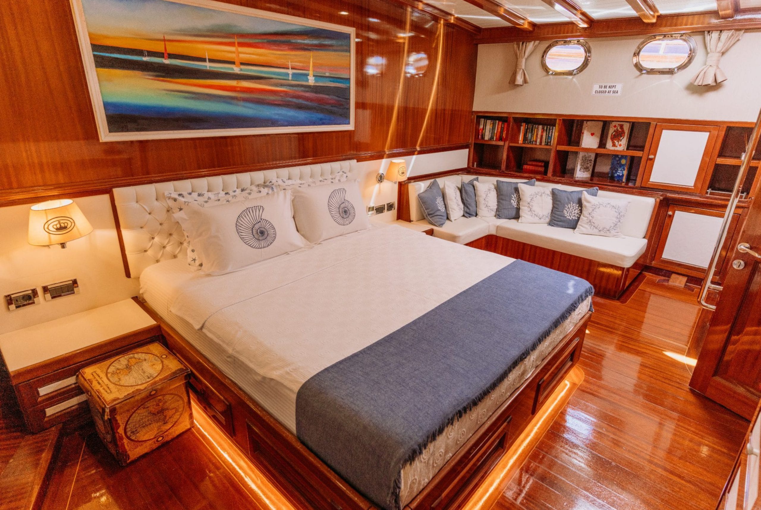 Gulette yer alan 5 konforlu kabin, toplam 10 misafire kadar lüks konaklama imkânı sunar. Her kabin, zarif detayları, konforlu yatakları ve klima donanımıyla misafirlerine huzurlu bir atmosfer sağlar.