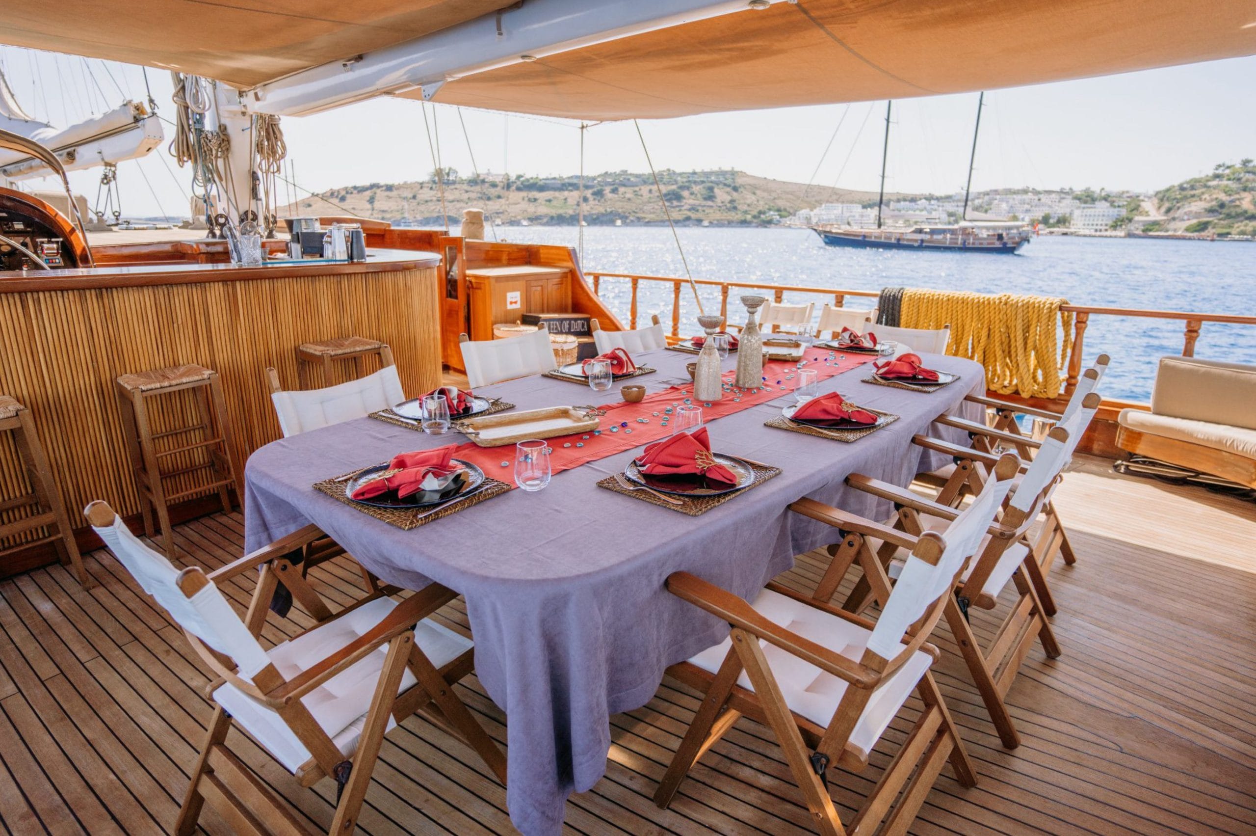 Denizde 12 knot hızla seyir yapabilen Queen of Datca, hem yelken performansı hem de konfor açısından üst düzey bir deneyim sunar.