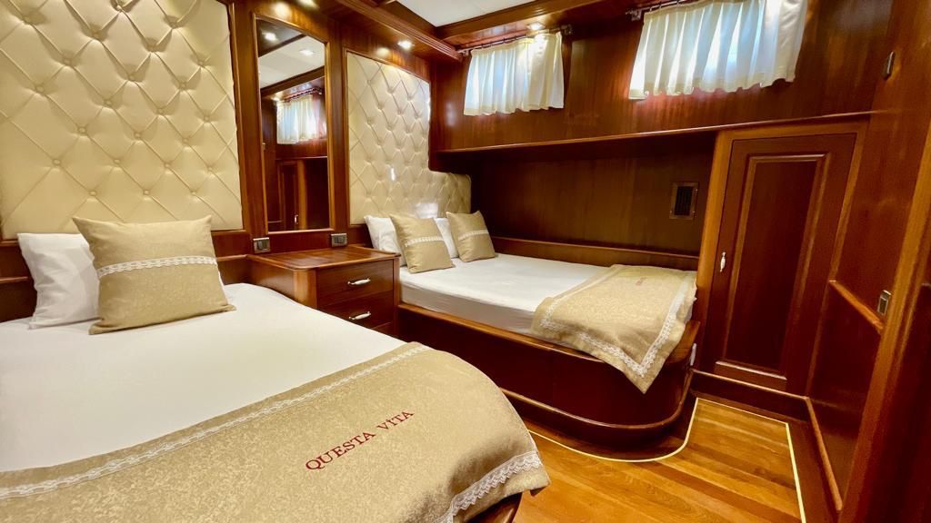 2021 yılında yenilenen Questa Vita, modern donanımı ve şık iç tasarımıyla sadece Bozburun koylarında değil, Yunan Adaları’na uzanan mavi yolculuk rotalarında da mükemmel bir seyahat deneyimi sunar.