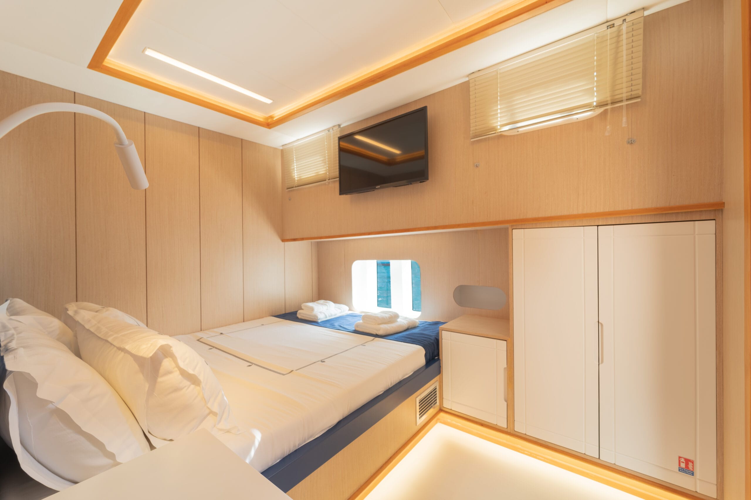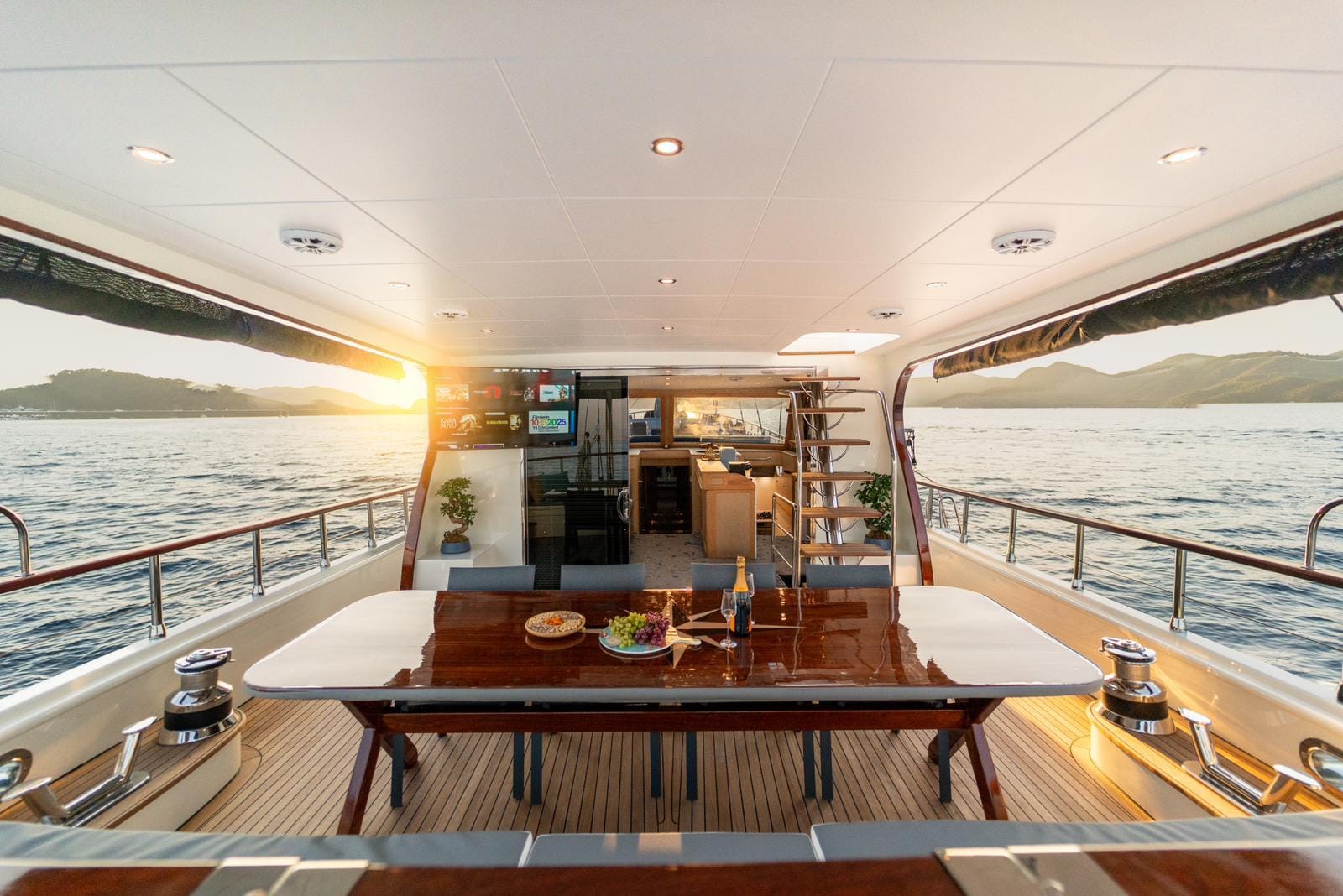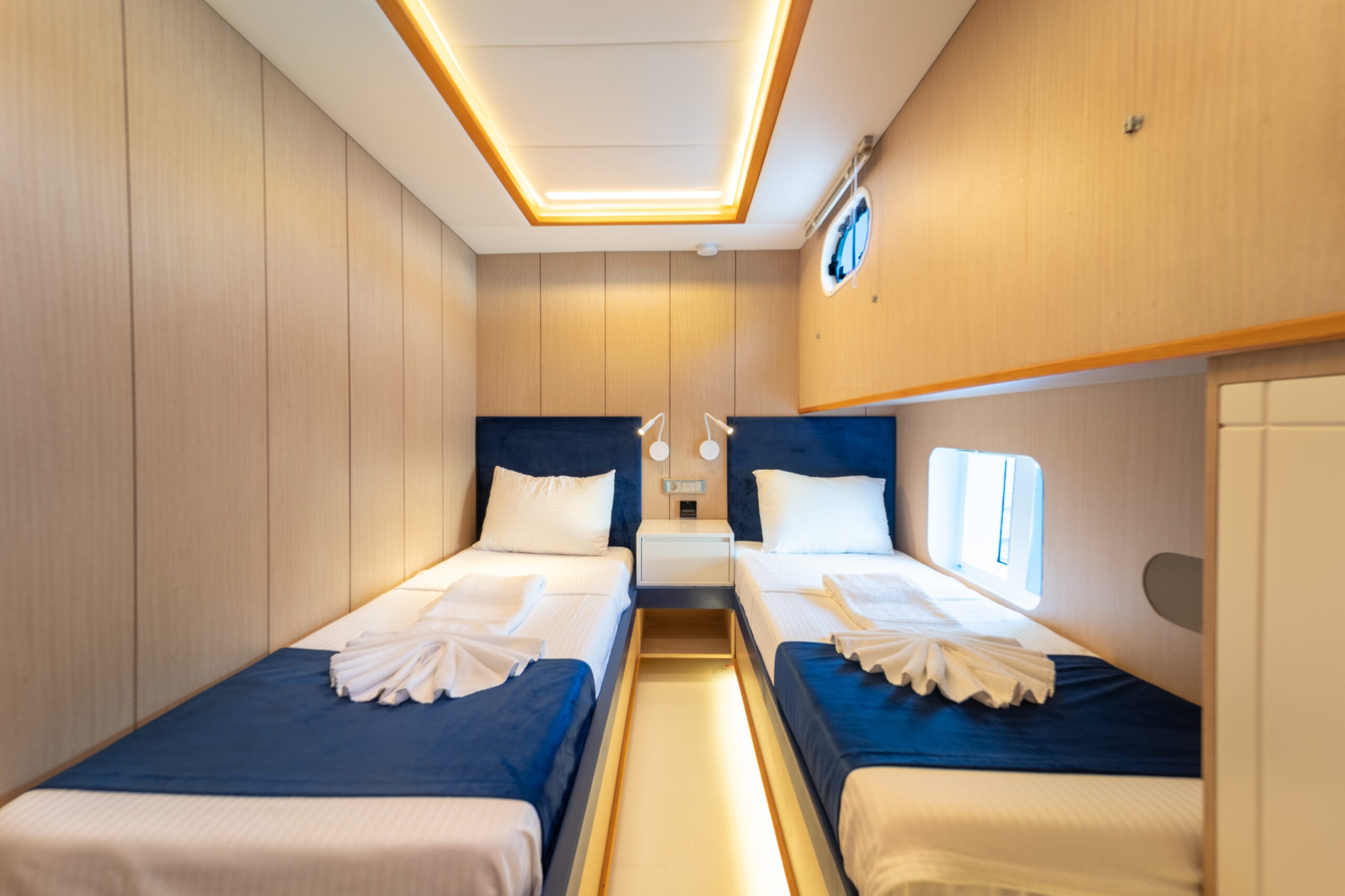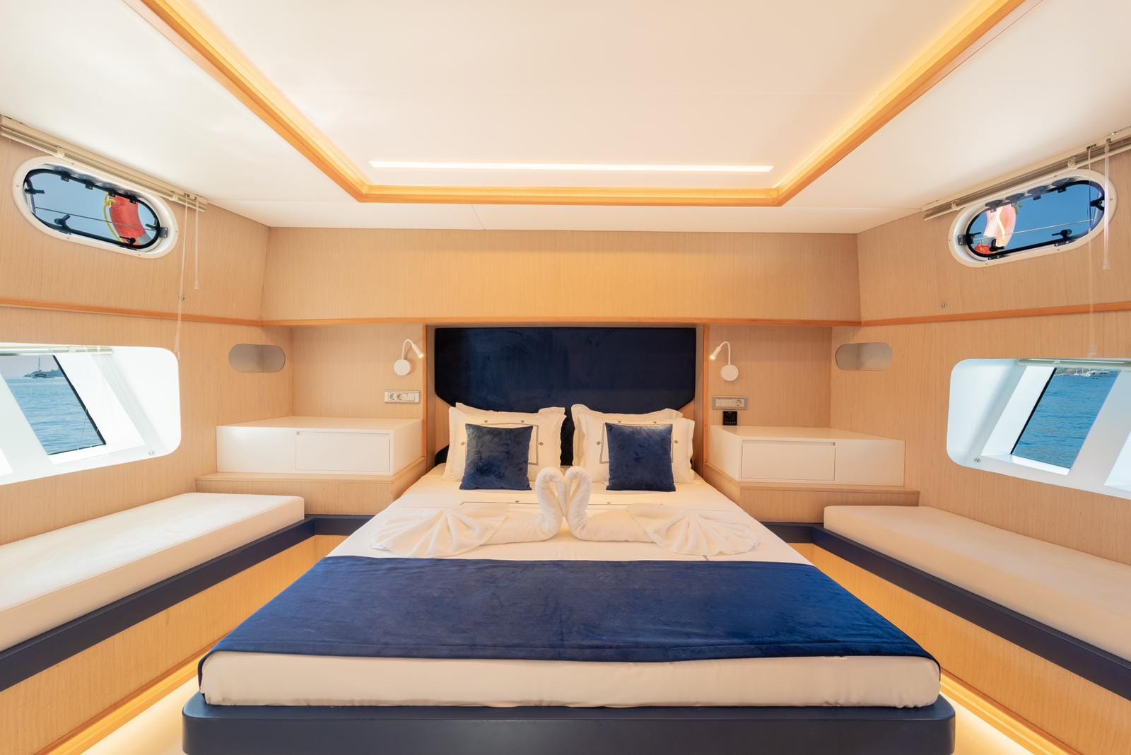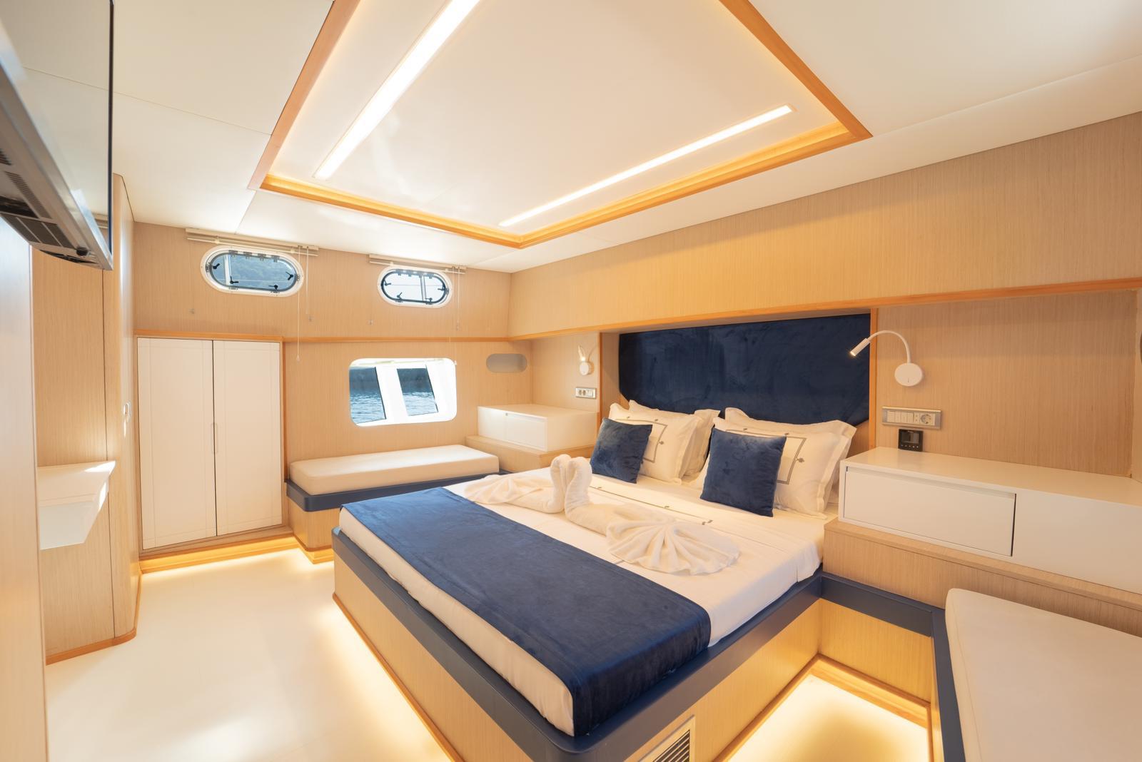 Dalibay III Gulet, Türkiye’nin turkuaz sahillerinde lüks yat kiralama deneyiminin öncüsü olarak öne çıkan, 22 metre uzunluğunda göz alıcı bir gulettir. 2023 yılında kapsamlı bir yenileme geçiren bu özel yat, 4 zarif tasarımlı kabiniyle 8 misafire kadar konforlu konaklama imkânı sunmaktadır. Geniş güverte alanları, şık iç mekânları ve deneyimli mürettebatıyla Dalibay III, misafirlerine Akdeniz’in eşsiz koylarını keşfetme, yerel lezzetlerin tadını çıkarma ve unutulmaz anılar biriktirme fırsatı sunar. Modern konforu geleneksel Türk misafirperverliğiyle birleştiren bu özel charter teknesi, Bodrum, Göcek ve Fethiye gibi popüler destinasyonlarda her detayı özenle düşünülmüş bir mavi yolculuk deneyimi yaşamak isteyenler için mükemmel bir tercihtir.