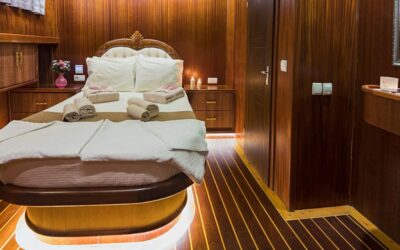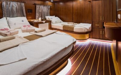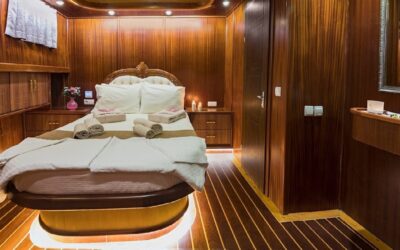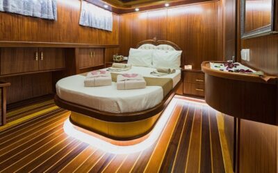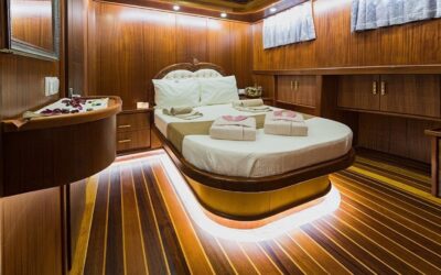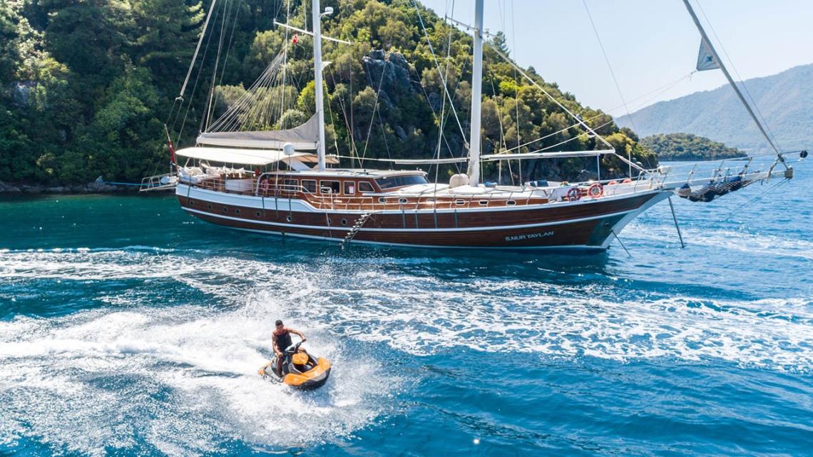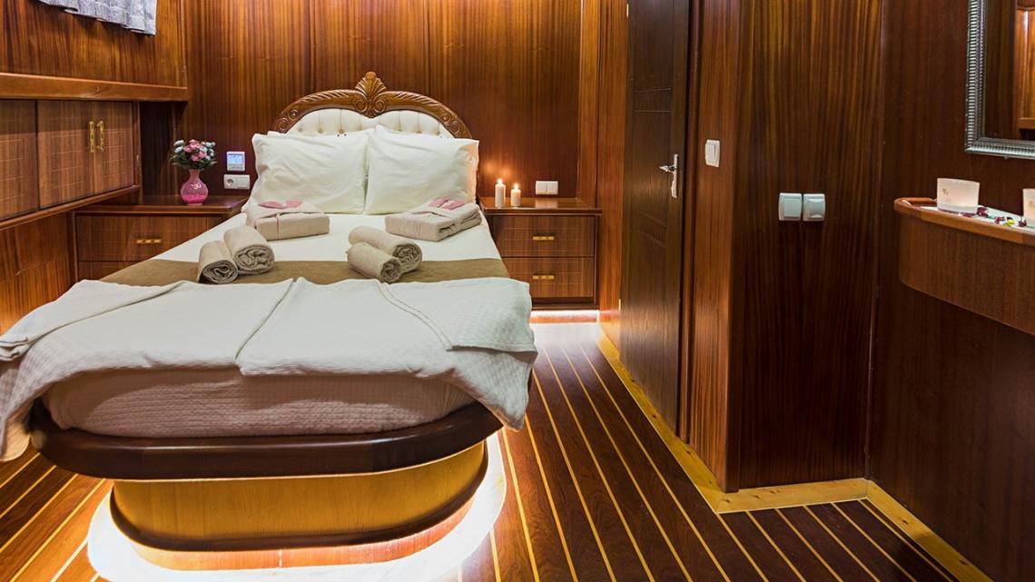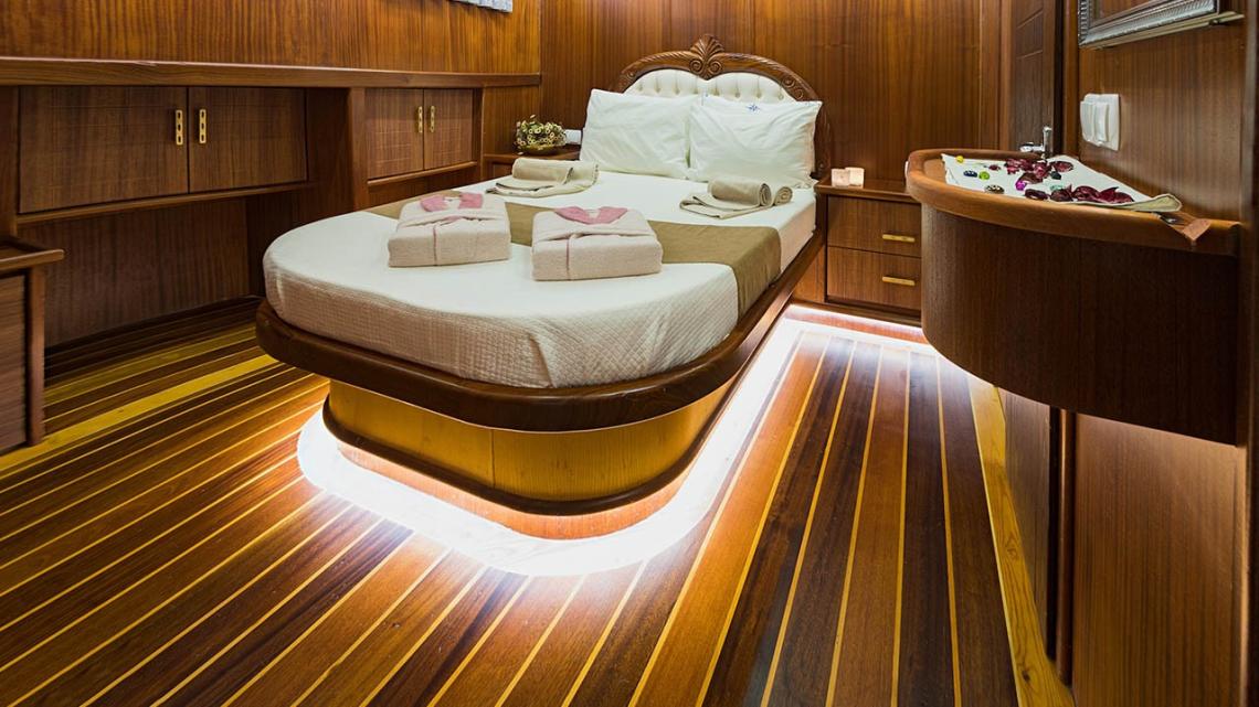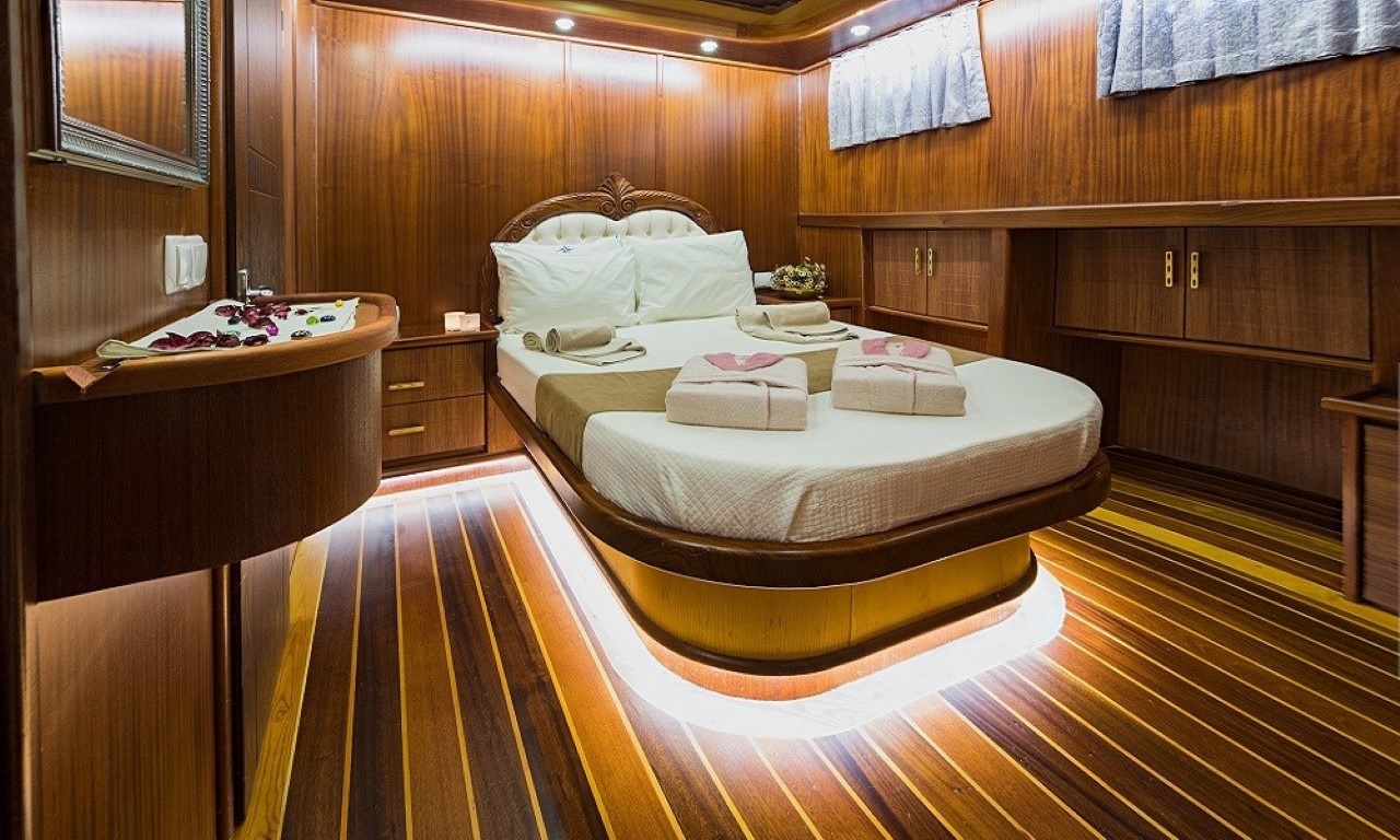 Klasik ahşap gulet tasarımıyla dikkat çeken teknemiz, 34 metre uzunluğunda ve 8,4 metre genişliğindedir. Ege ve Akdeniz’in eşsiz turkuaz sularında 5 yıldızlı otel konforunu yaşamanız için özenle tasarlanan S Nur Taylan Gulet’te her ayrıntı titizlikle düşünülmüştür.