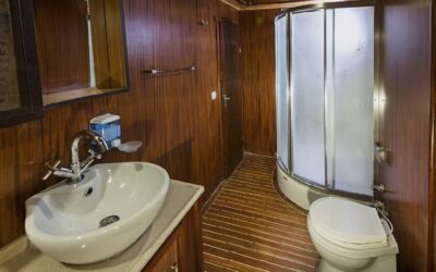 Toplam 16 kişiye kadar konaklama kapasitesi sunan teknemizde 6 double ve 2 triple kabin bulunmaktadır.