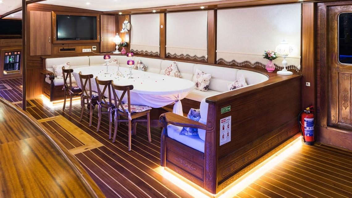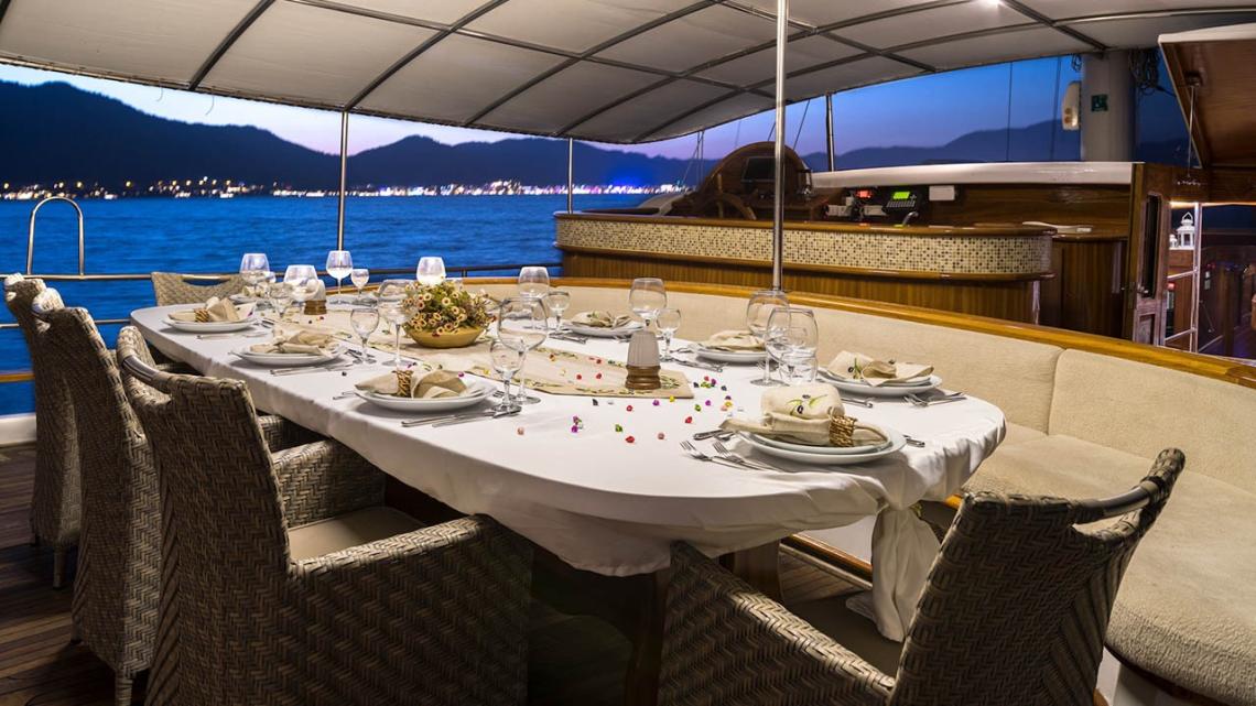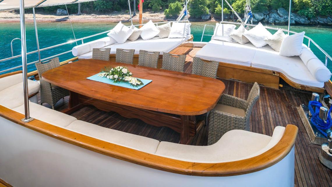Marmaris Limanı’na bağlı lüks teknemiz, 2012 yılından bu yana misafirlerine yüksek memnuniyet odaklı, unutulmaz bir mavi yolculuk deneyimi sunmaktadır.