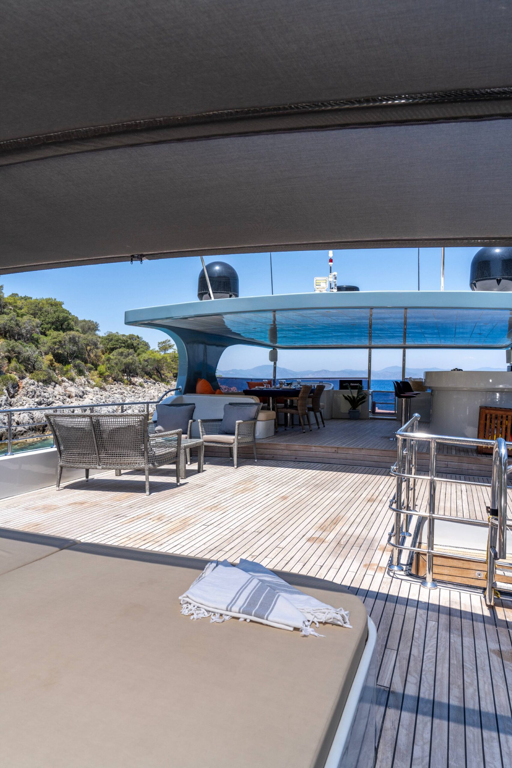 Trawler kategorisinde yer alan 26 metre uzunluğundaki lüks teknemiz, denizde ayrıcalıklı bir konfor arayan misafirlerimiz için tasarlandı. Her biri alanında deneyimli ve güler yüzlü 5 kişilik profesyonel mürettebatımız, sizlere kusursuz bir mavi yolculuk deneyimi sunmak için hizmet vermektedir.