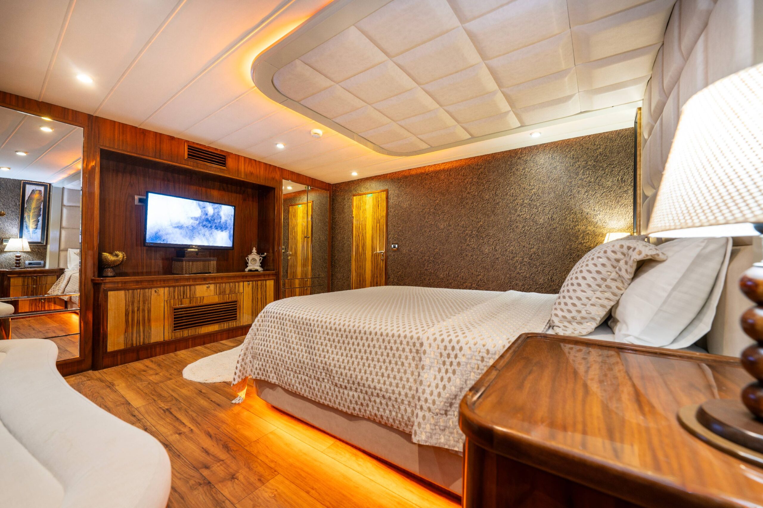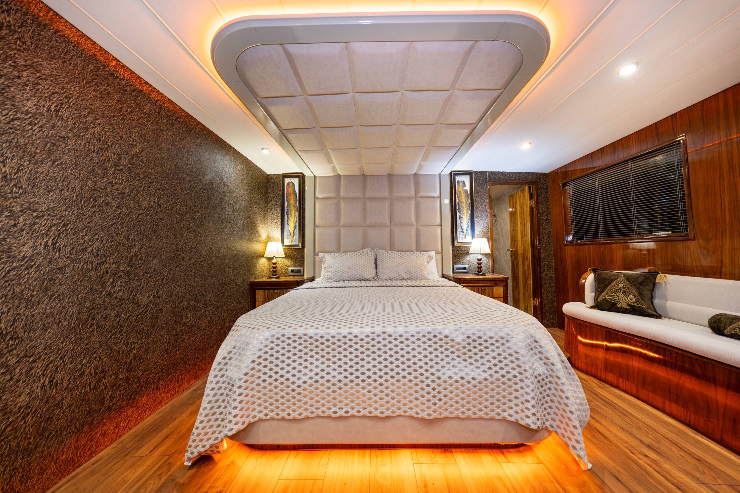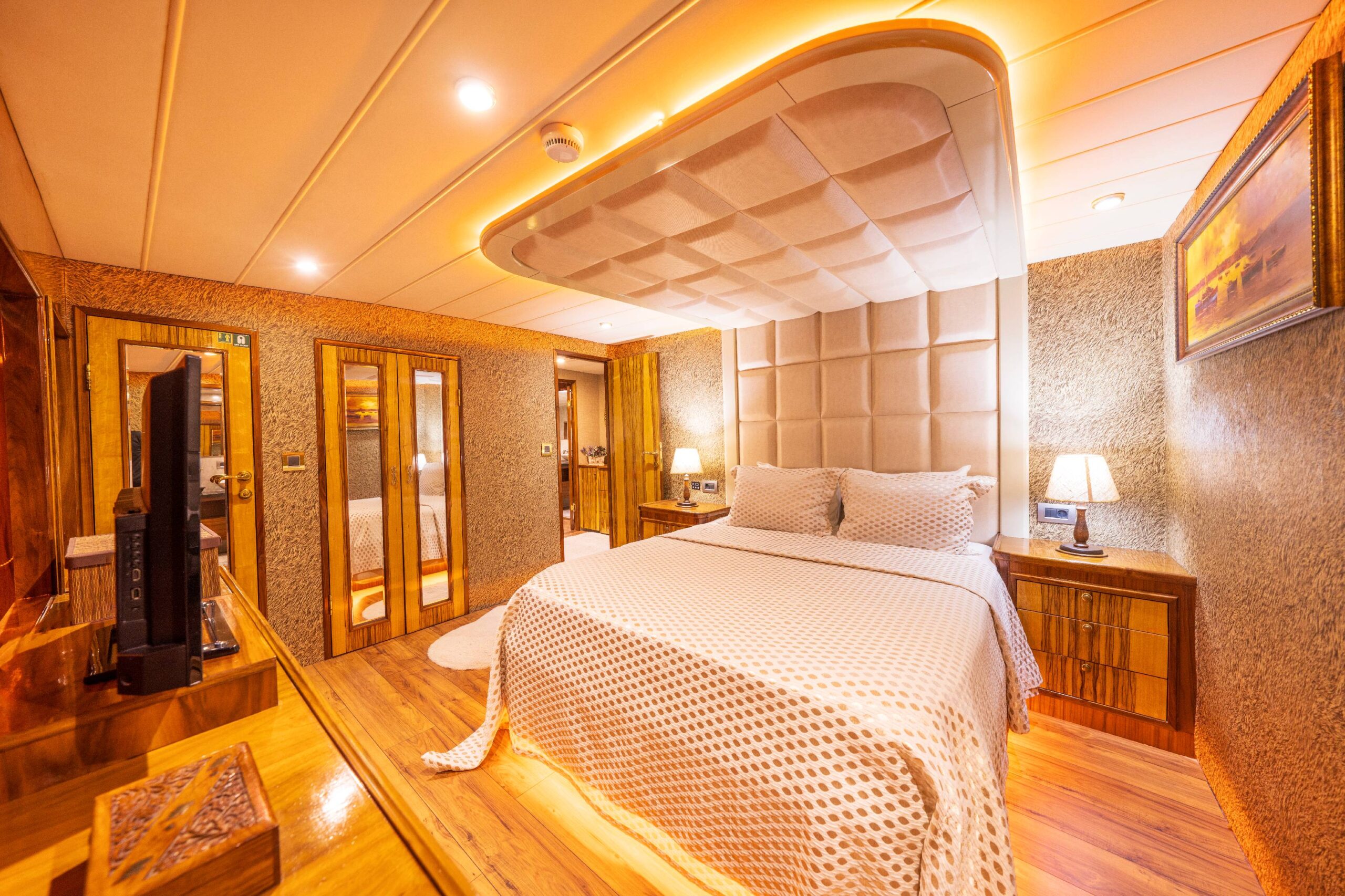 Teknemizde, konfor ve zarafeti bir arada sunan 2 master ve 2 VIP double kabin bulunmakta olup, toplamda 8 kişiye kadar misafir ağırlama kapasitesine sahiptir.
