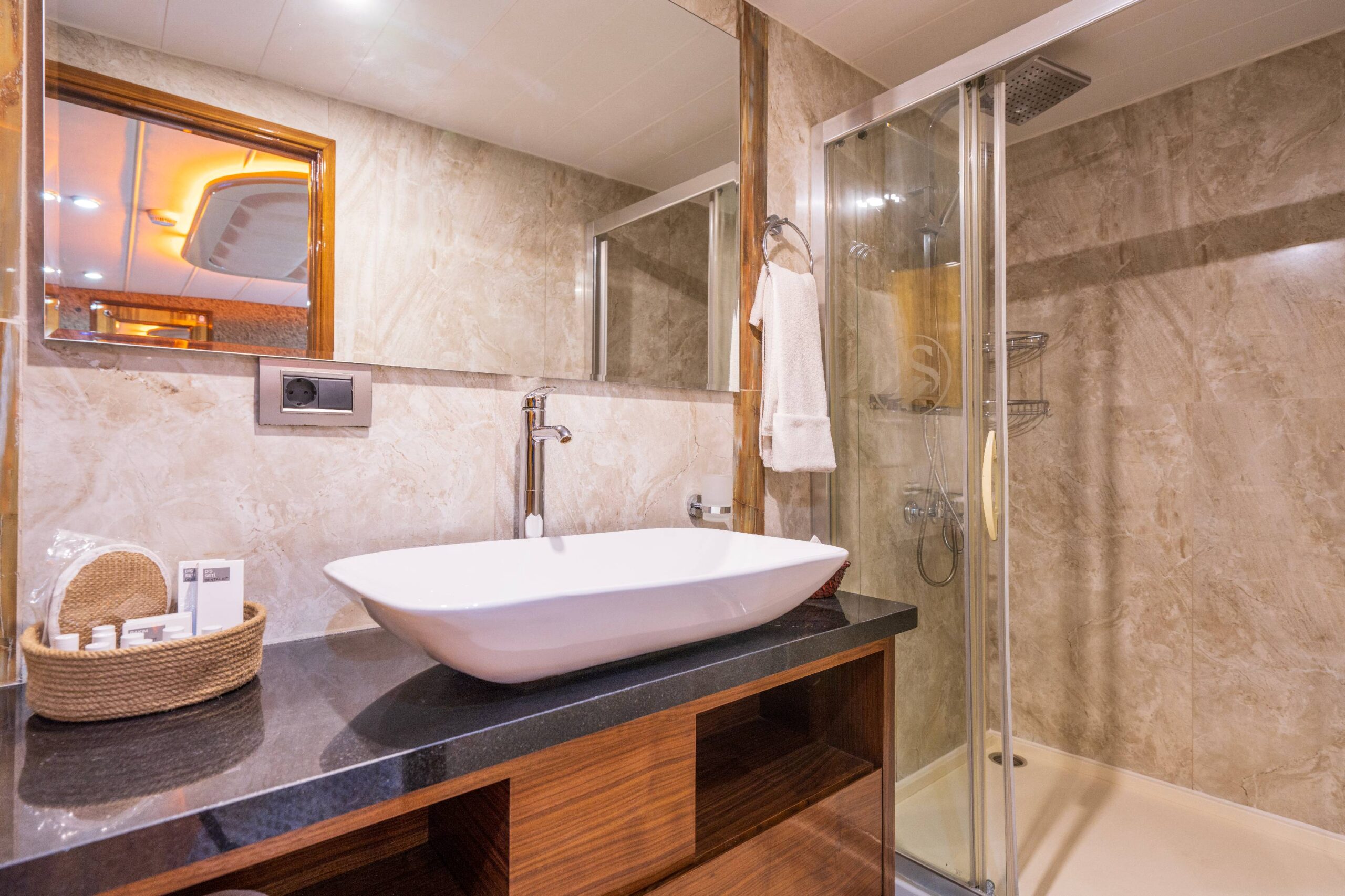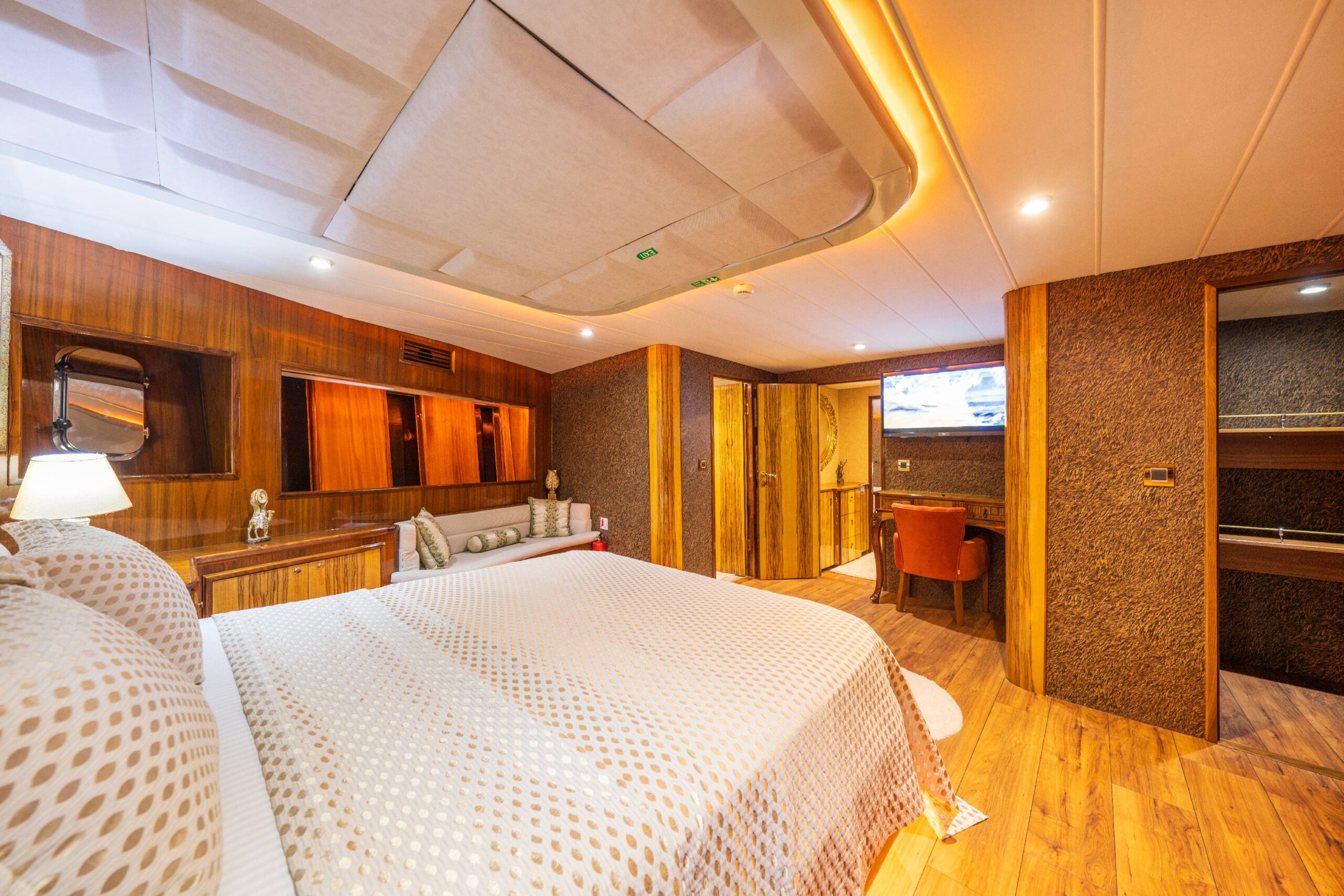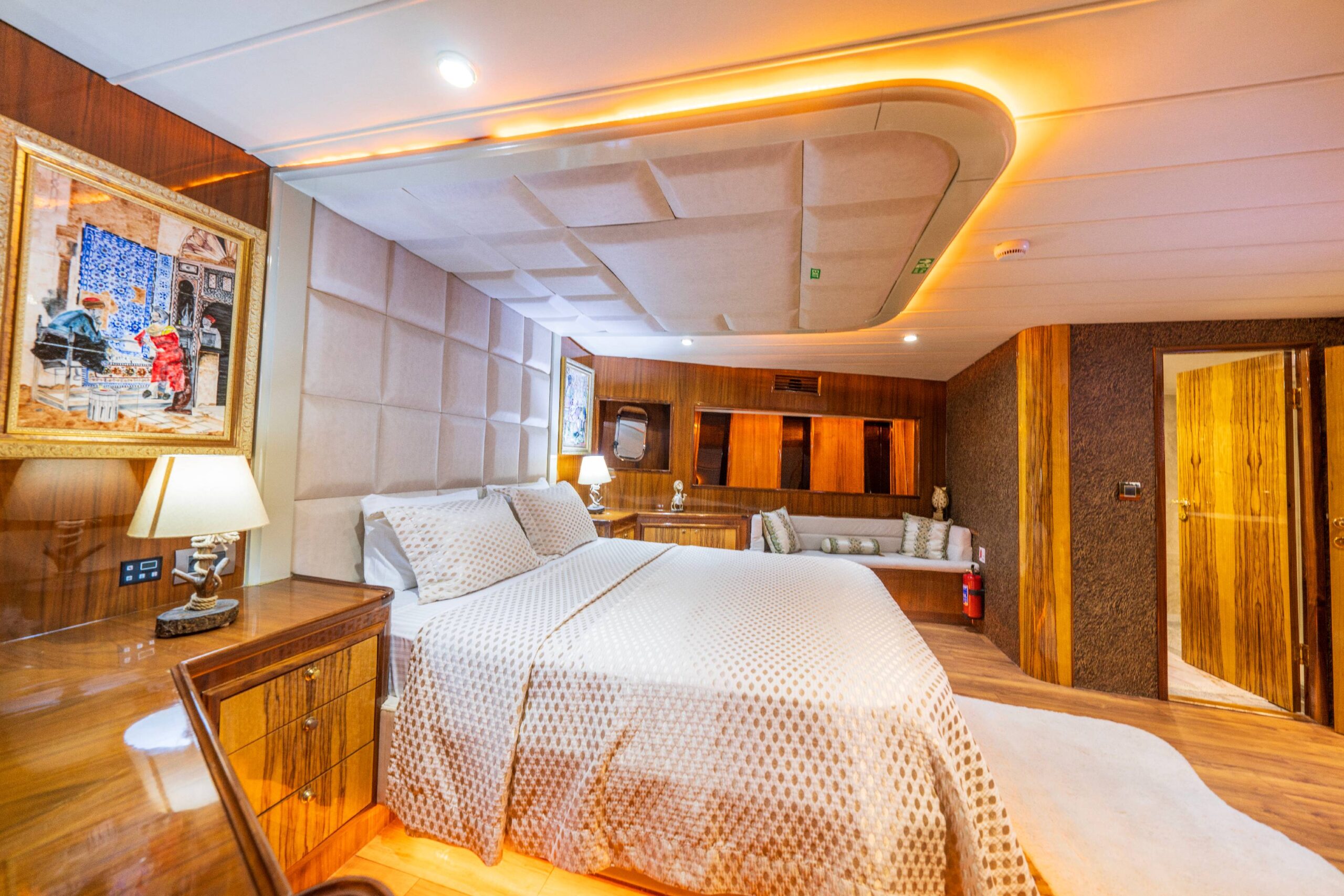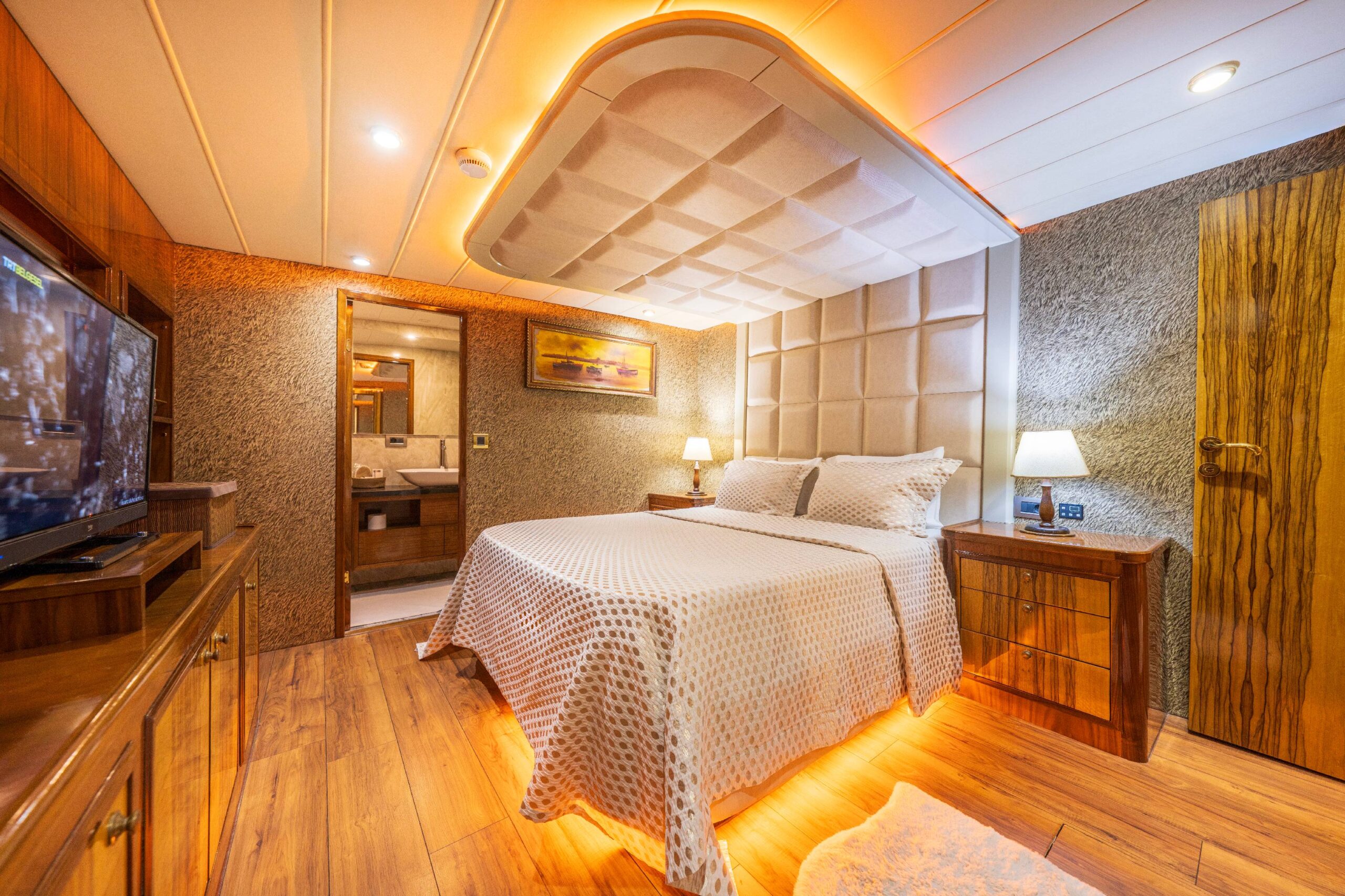 Teknemizde, konfor ve zarafeti bir arada sunan 2 master ve 2 VIP double kabin bulunmakta olup, toplamda 8 kişiye kadar misafir ağırlama kapasitesine sahiptir.