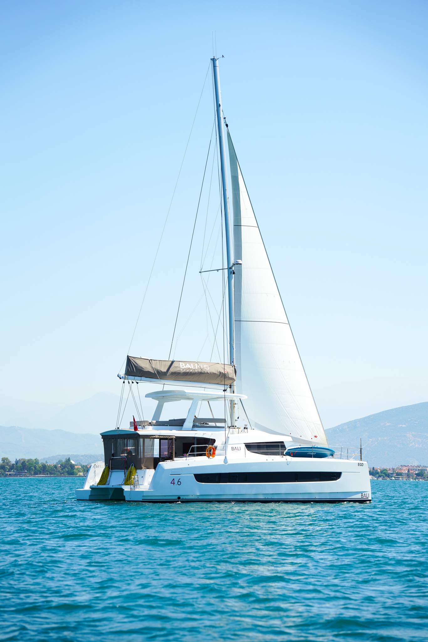 Gün batımına karşı kahvenizi yudumlayabileceğiniz geniş güverte alanları ve yıldızlar altında huzurlu bir uyku sunan ferah kabinleriyle EGD Bali 4.6, mavi yolculuğunuzun her anını özel kılmak üzere tasarlanmış seçkin bir katamaran seçeneğidir.