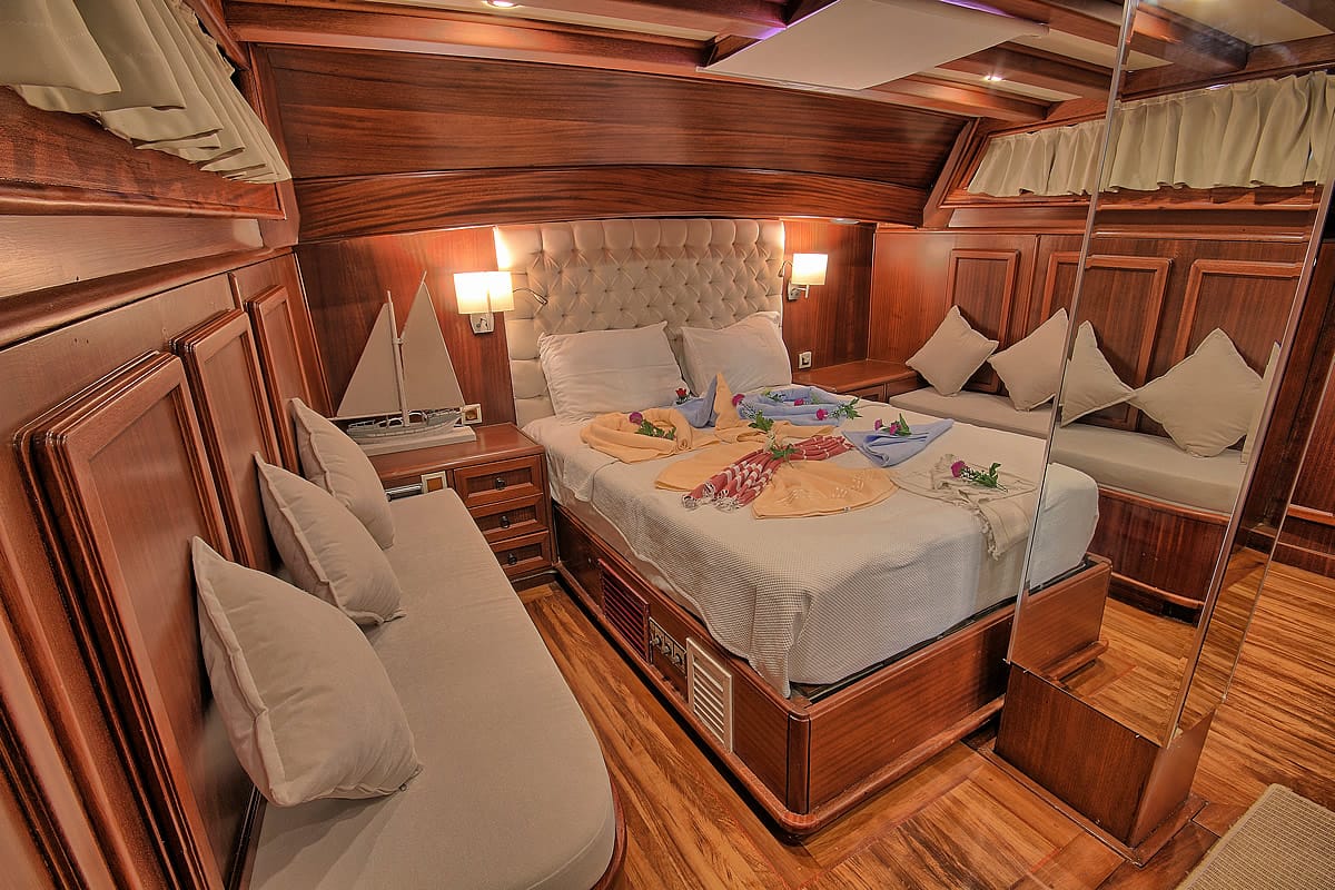 22 metre uzunluğundaki Romance, 1 master ve 2 double kabiniyle toplam 6 misafire kadar konaklama imkânı sağlar. Sıcak ve samimi atmosferiyle özellikle küçük gruplar, çiftler ve aileler için ideal bir seçenektir.
