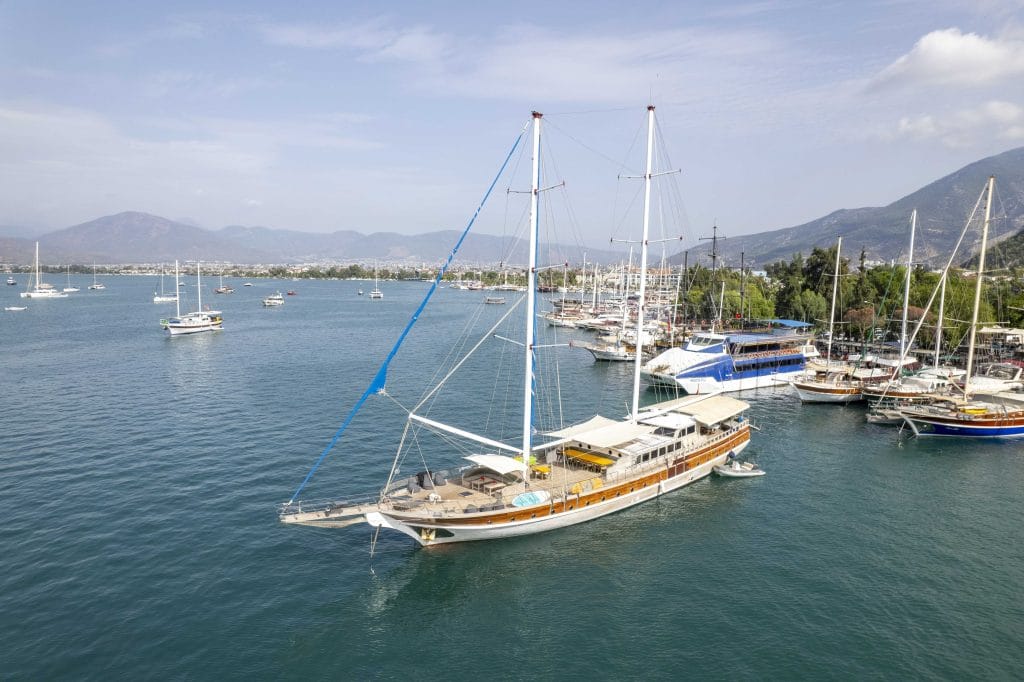 Bu lüks tekne, 10 kabin kapasitesi ve 22 yolcu kapasitesiyle konforlu bir seyir imkanı sunuyor. 5 kişilik mürettebatı ile hizmet veren tekne